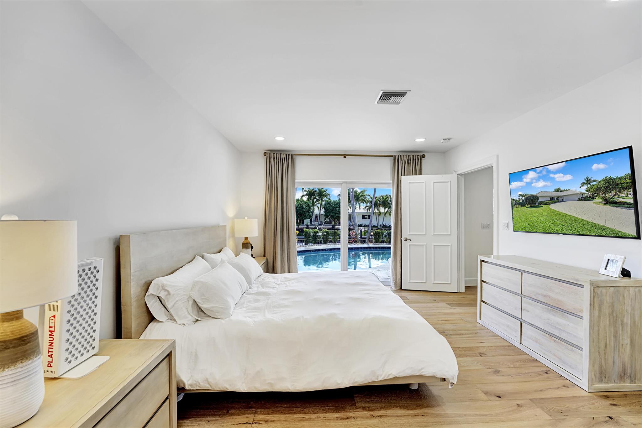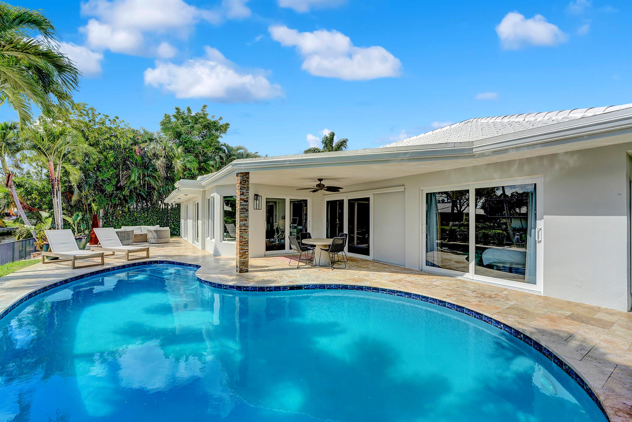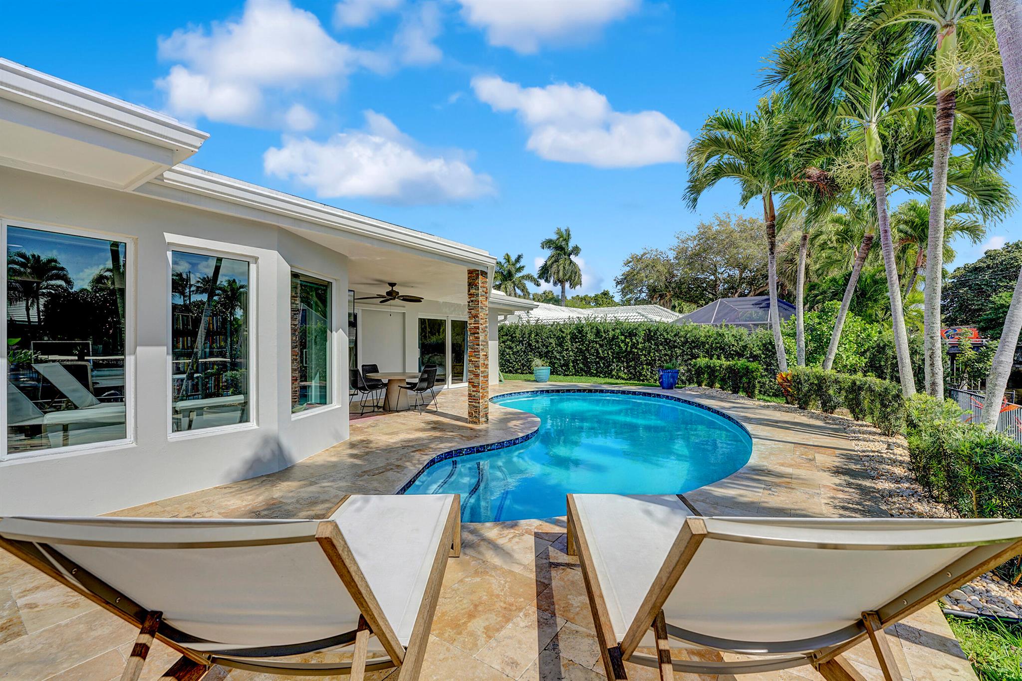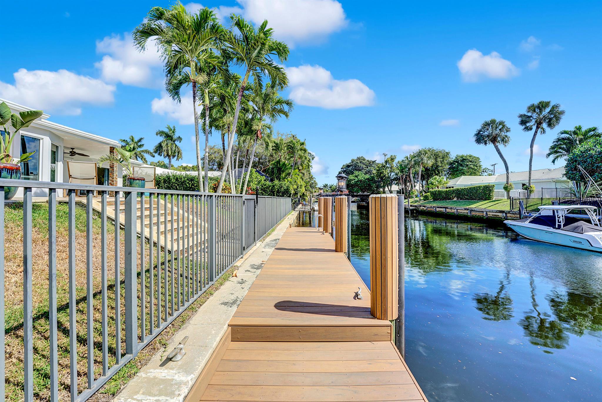 Set on 95ft (+/-) of water frontage in East Boca Raton's coveted Camino Gardens, this newly updated residence is a masterpiece of modern coastal living. Expansive, light-filled living spaces welcome you with 3 beautifully appointed bedrooms, 3 gorgeous bathrooms and new White Oak hardwood floors throughout. The chef-inspired kitchen dazzles with custom dovetailed cabinetry, stainless steel appliances, and quartz countertops. Outside, a private waterfront oasis awaits with a southeast-facing pool, travertine decking, and breathtaking views of the El Rio Canal. The newer dock offers direct boat access to turquoise waters. Additional features include hurricane-impact windows and doors, newer electrical panel, custom closets, HVAC, Wi-Fi irrigation, saltwater pool, fence, and a newer roof.