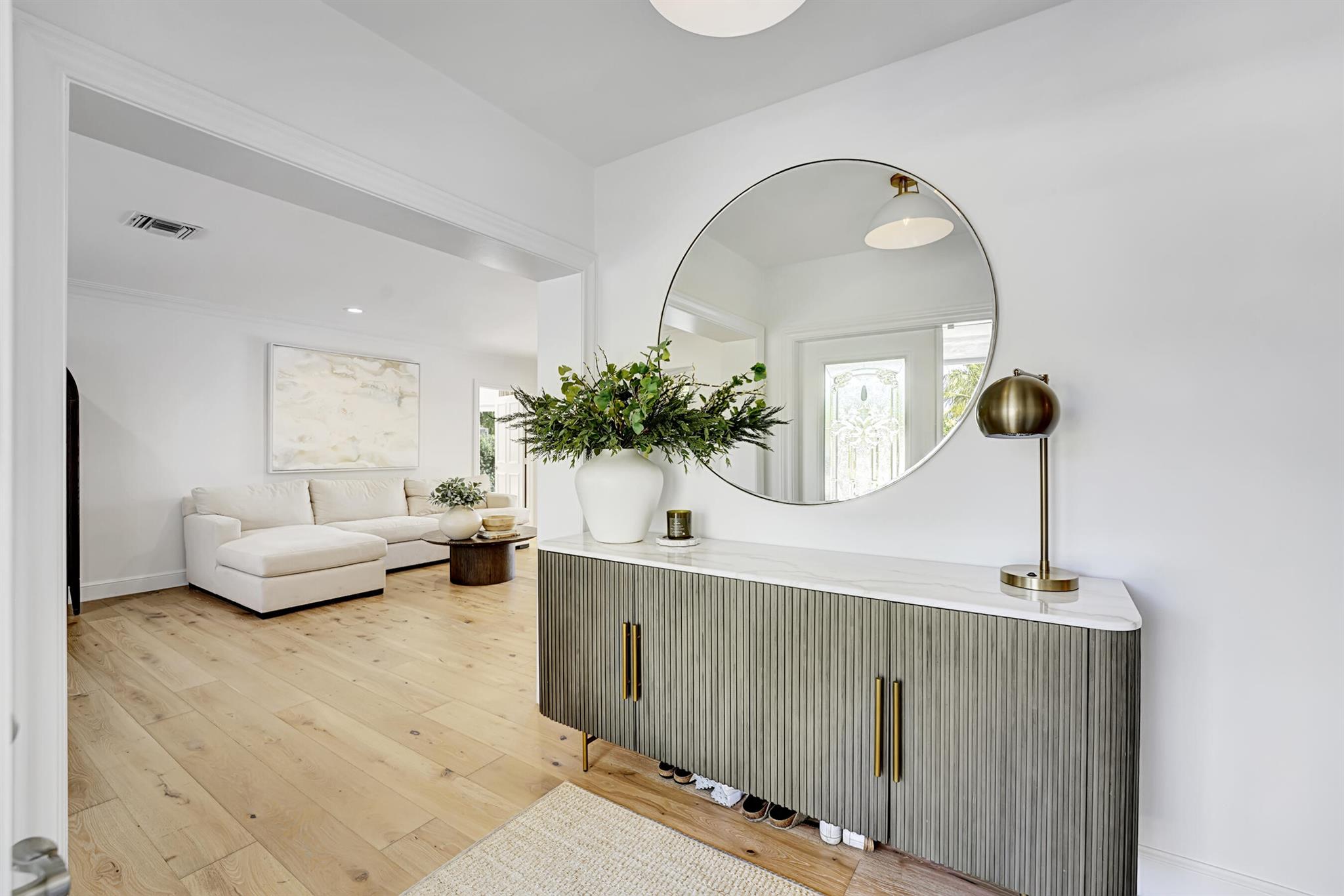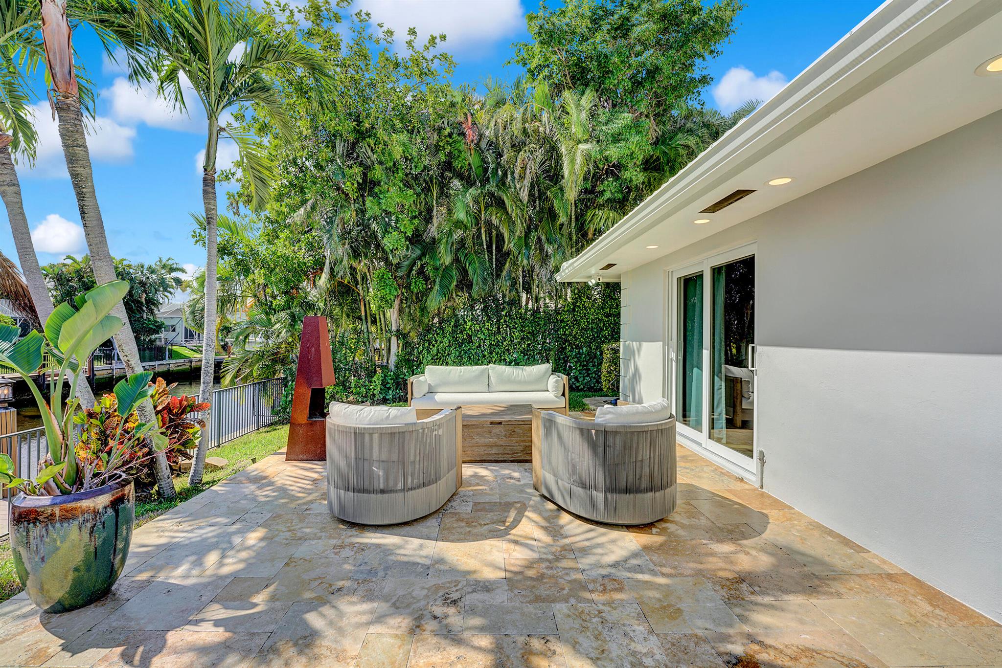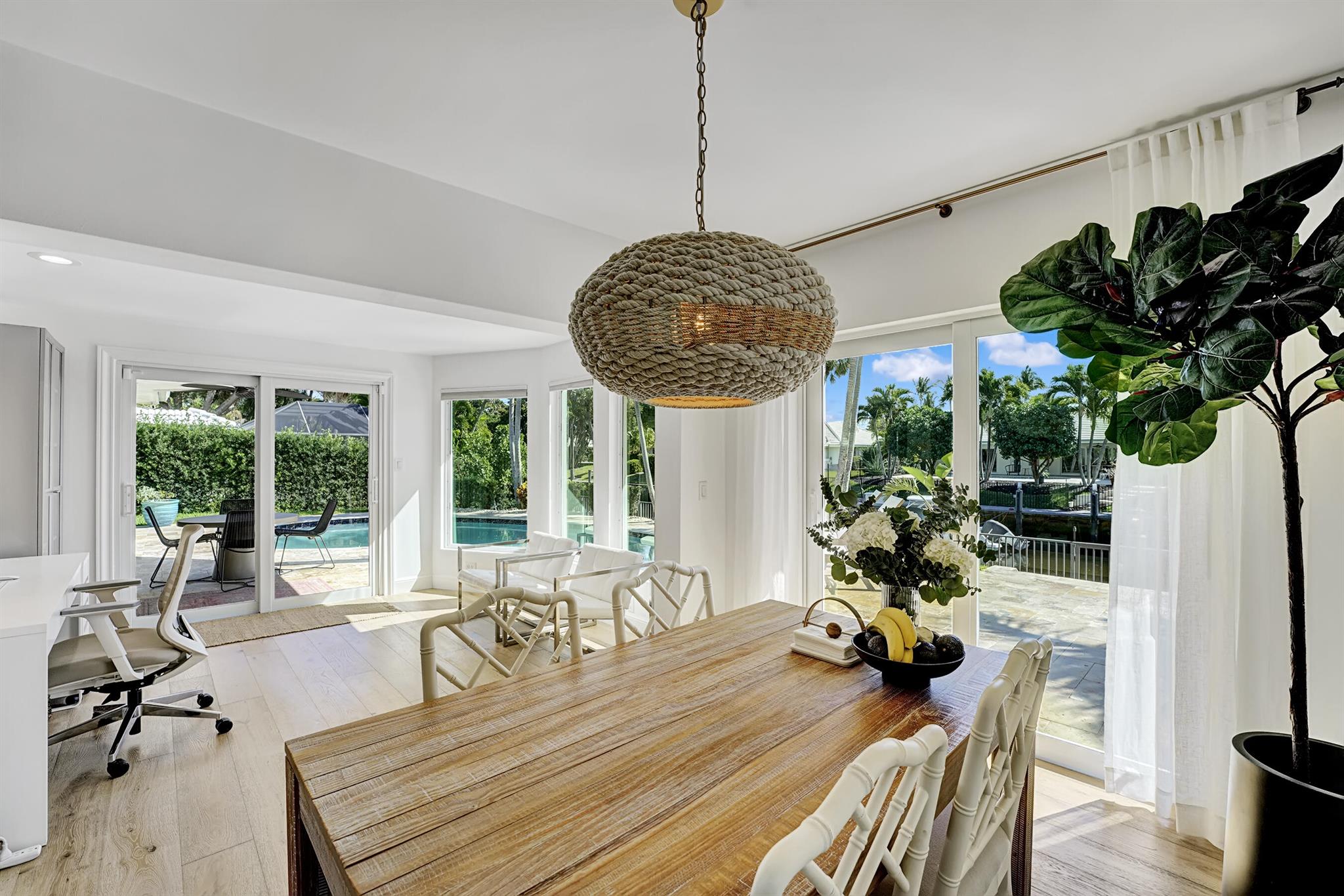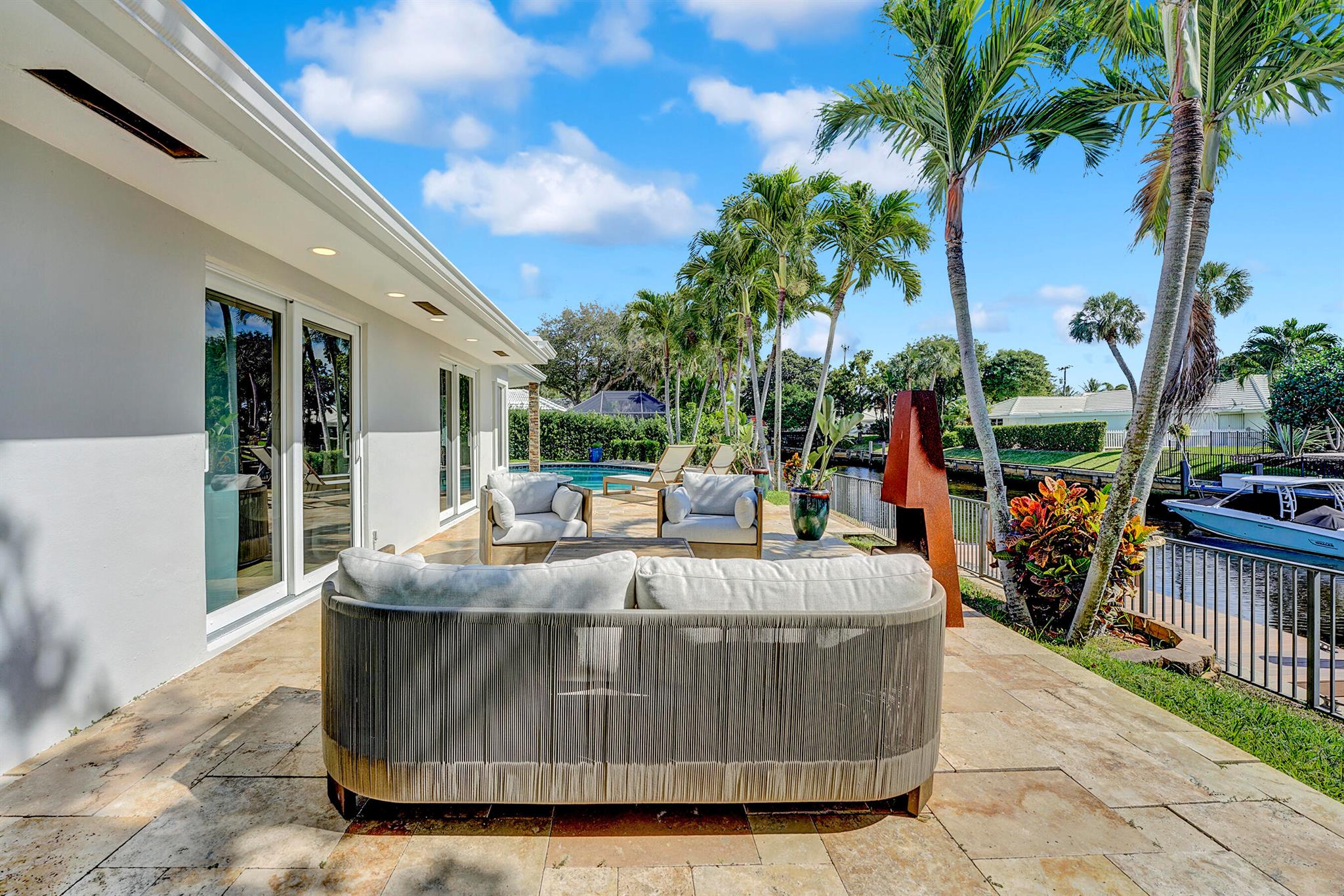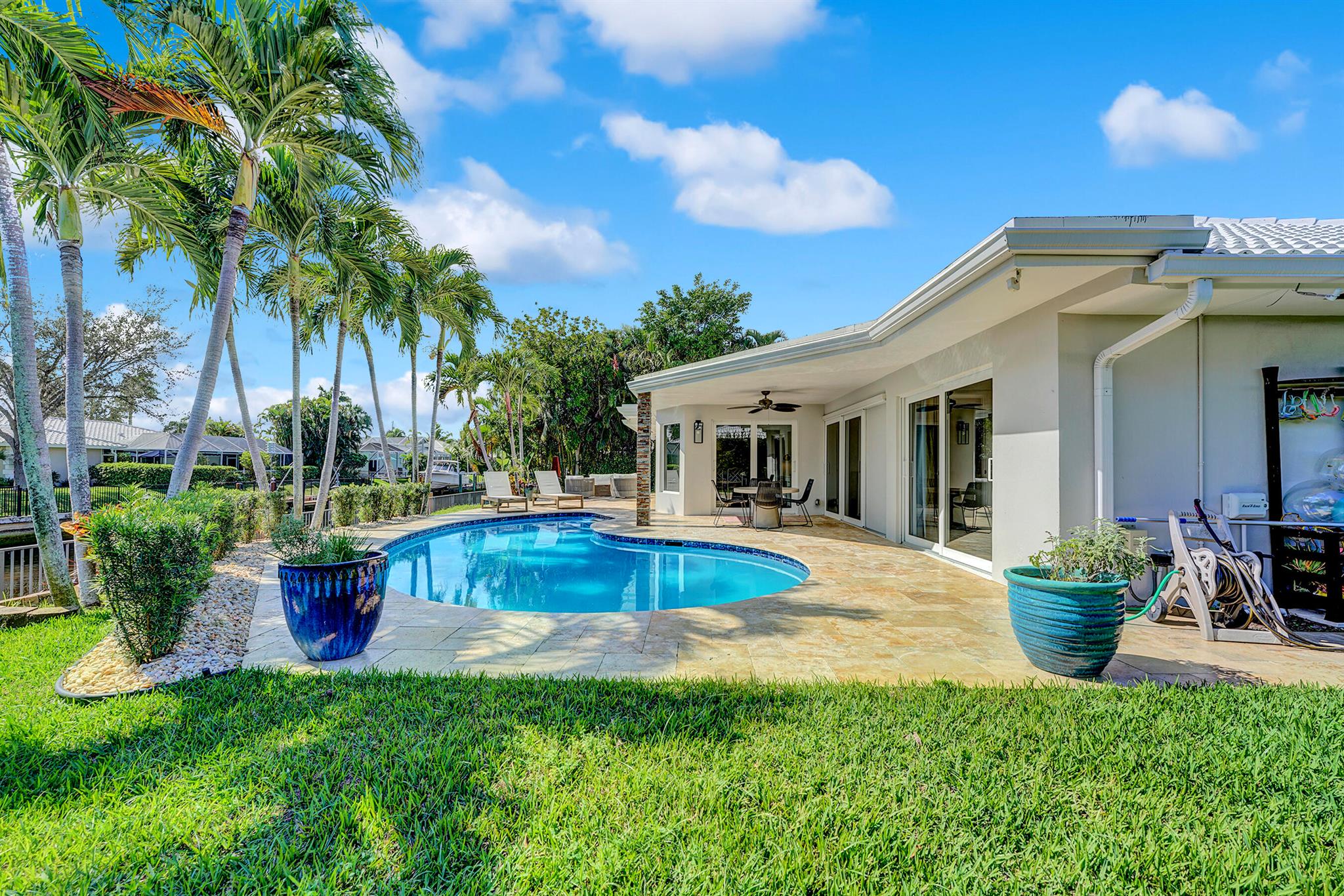 Set on 95ft (+/-) of water frontage in East Boca Raton's coveted Camino Gardens, this newly updated residence is a masterpiece of modern coastal living. Expansive, light-filled living spaces welcome you with 3 beautifully appointed bedrooms, 3 gorgeous bathrooms and new White Oak hardwood floors throughout. The chef-inspired kitchen dazzles with custom dovetailed cabinetry, stainless steel appliances, and quartz countertops. Outside, a private waterfront oasis awaits with a southeast-facing pool, travertine decking, and breathtaking views of the El Rio Canal. The newer dock offers direct boat access to turquoise waters. Additional features include hurricane-impact windows and doors, newer electrical panel, custom closets, HVAC, Wi-Fi irrigation, saltwater pool, fence, and a newer roof.