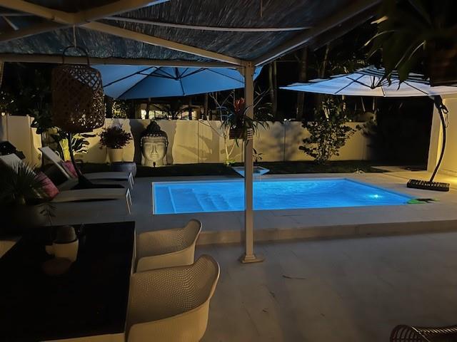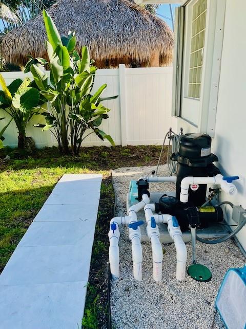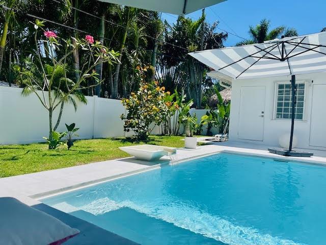 Welcome to Poinsettia Heights! Home is located on a quiet street, Brand new pool built with white Marble Deck installed 2024, All plumbing is PVC/Copper, customized landscaping front and back, ceramic patterned tile front porch, Third Bedroom/Den converted into a large master walk-in closet, 2nd walking closet in Master bedroom, oversized master bed with recessed lighting, double vanity, quartz counter tops, jacuzzi tub, separate shower, high end waterproof vinyl flooring throughout the entire house, renovated kitchen with white quartz counter top, Marble backsplash, white hard wood cabinets, Sub-Zero fridge, Roof 2018, Central A/C 2016, White PVC fence entire yard, 2 Tankless water heaters, custom window shades, carport, Boat Ramp/ocean access around the corner. Most Desirable Location!