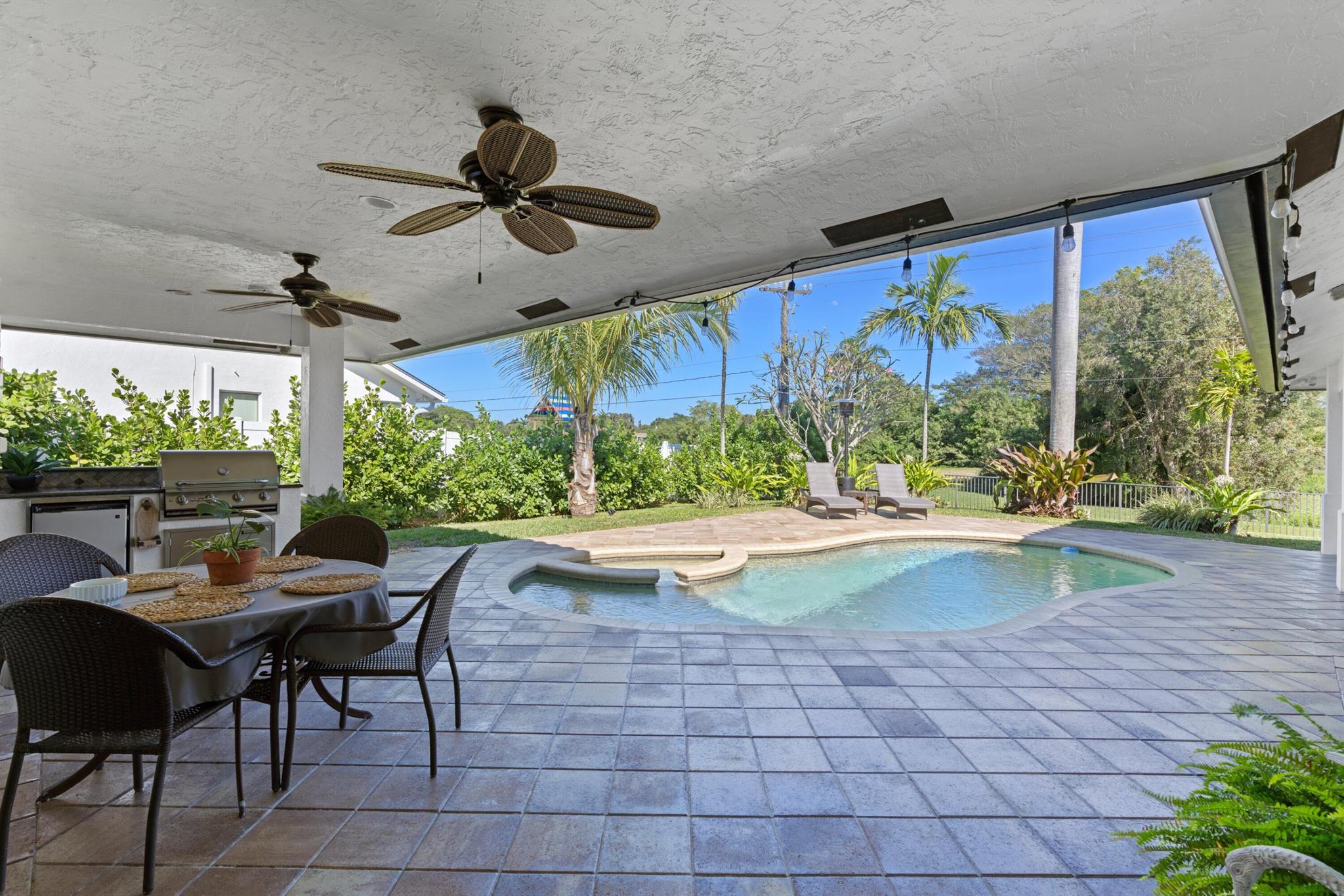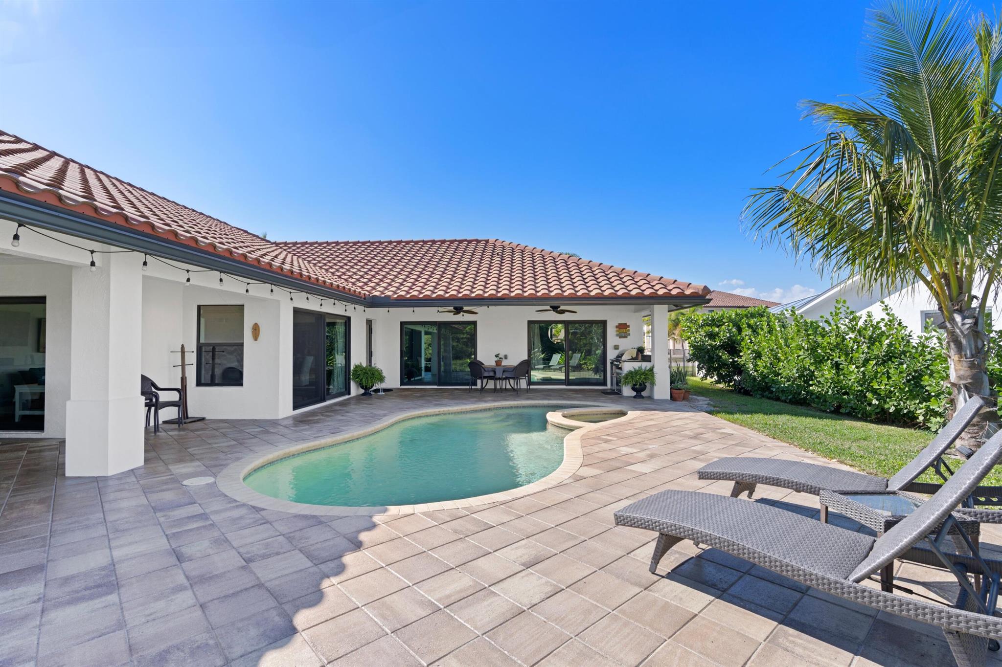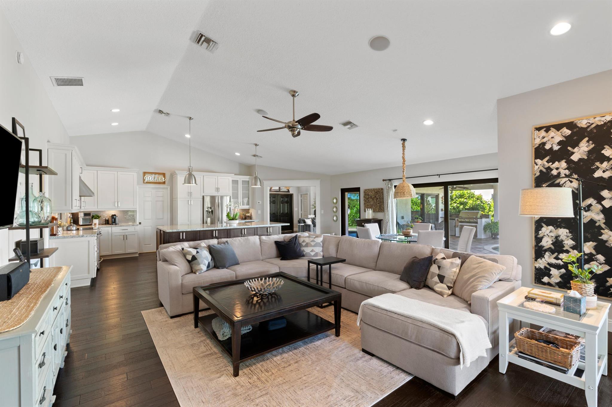 Welcome to 7790 Fairway Trail, nestled on a prime lot in East Boca's sought-after Hidden Valley community. This 4BR/3BA + den pool home boasts an open floor plan with expansive living areas and stunning wood floors throughout. The formal living and dining rooms offer inviting pool views, while the kitchen--with its oversized island, stainless steel appliances, and ample cabinetry--flows into the family room, perfect for entertaining or unwinding. Outside, a summer kitchen, loggia, freeform pool, and private backyard create an ideal retreat. The split floor plan features a primary suite with pool views, a walk-in closet, dual sinks, and separate tub/shower, along with 3 additional bedrooms, 2 full baths, and a spacious office.