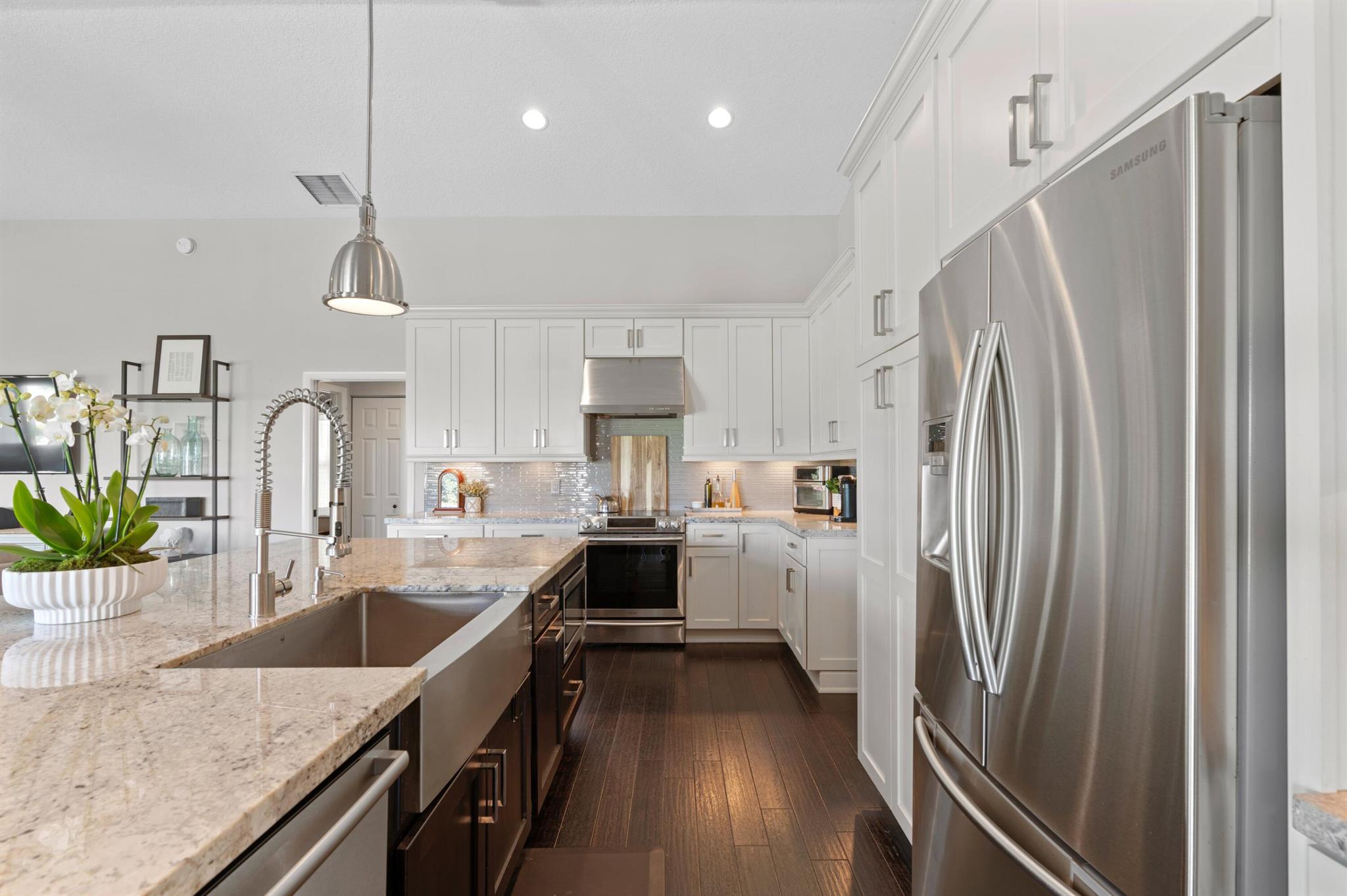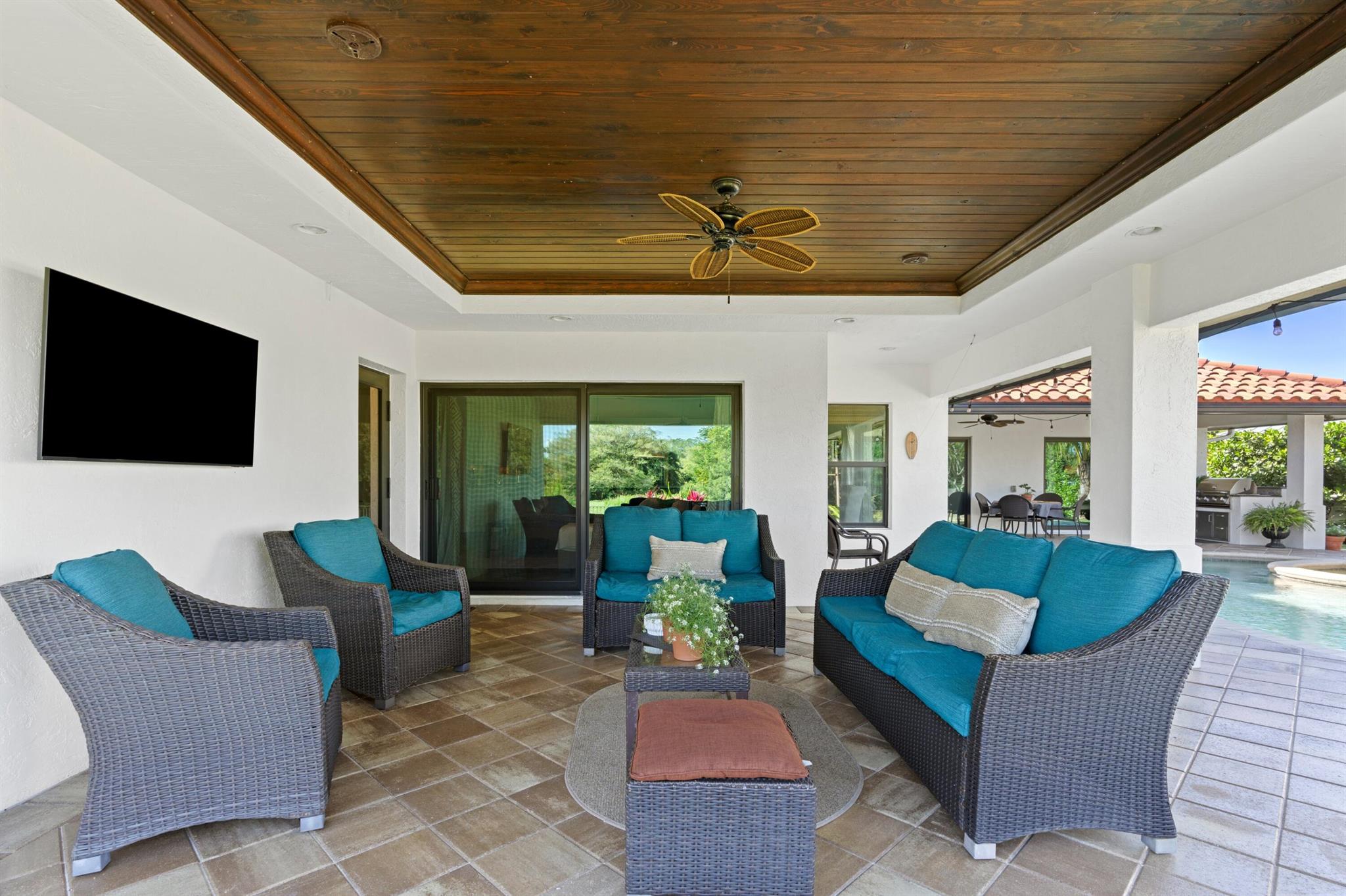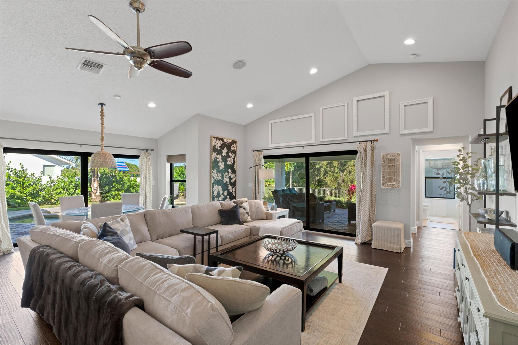 Welcome to 7790 Fairway Trail, nestled on a prime lot in East Boca's sought-after Hidden Valley community. This 4BR/3BA + den pool home boasts an open floor plan with expansive living areas and stunning wood floors throughout. The formal living and dining rooms offer inviting pool views, while the kitchen--with its oversized island, stainless steel appliances, and ample cabinetry--flows into the family room, perfect for entertaining or unwinding. Outside, a summer kitchen, loggia, freeform pool, and private backyard create an ideal retreat. The split floor plan features a primary suite with pool views, a walk-in closet, dual sinks, and separate tub/shower, along with 3 additional bedrooms, 2 full baths, and a spacious office.