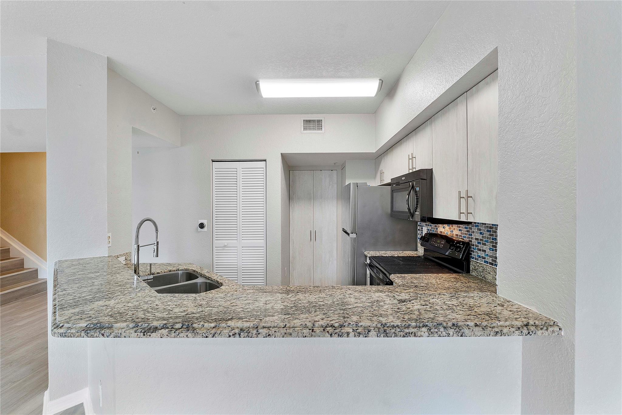 Price Improvement! Best priced 3 bedroom in Cypress Pointe! This stunning townhome features an open layout with updated neutral flooring throughout, upgraded kitchen cabinets with granite countertops, and newer appliances. New Roof (2024) and newer impact windows. The living areas are on the second floor, with all three bedrooms on the third floor, providing a great separation of spaces. Boasting a new A/C unit installed in April 2020, large walk-in closets in all bedrooms, and a washer and dryer. This community offers resort-style amenities including a gym, pool, clubhouse, tennis, basketball, and more. Close to shops, restaurants, and major highways. The community allows up to two pets, 35 lbs max each. Comes with a 1-car garage and 2 additional assigned parking spaces.