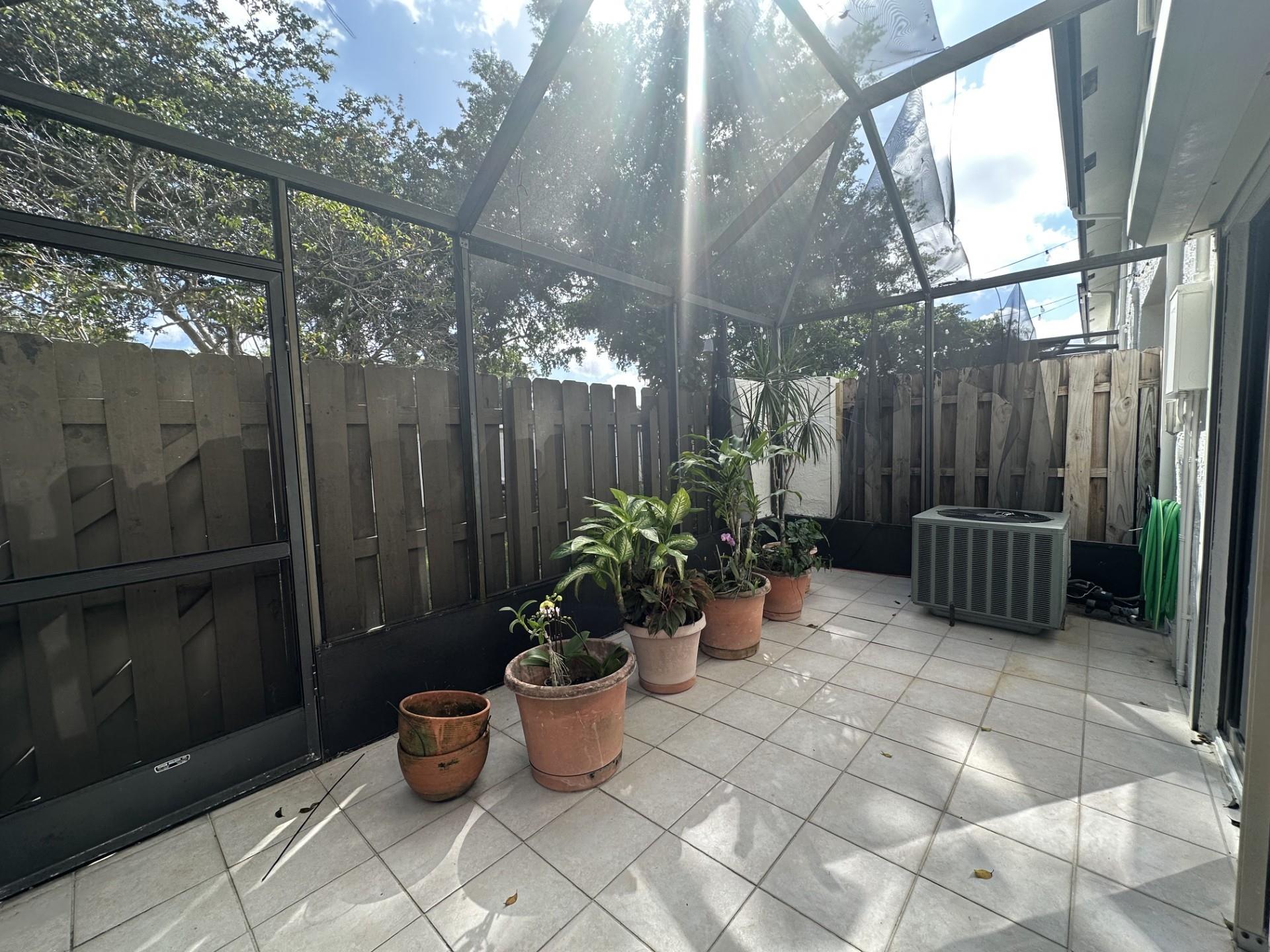 Accepting backup offers!! Rarely available layout, spacious, 2 bedroom, 2.5 bathroom townhome in Village of Boca Barwood. Step into a large formal dining room that can accommodates your friends and family, conveniently located next to the ample kitchen with room for a breakfast table. The generous formal living room opens to a fenced in, screened patio, perfect for relaxation. Upstairs, you will find two main bedrooms, each with its own private bathroom. The primary suite boasts a vaulted ceiling, wall to wall closet, and abundant natural light. Its ensuite bathroom includes a vanity table and a separate shower for added privacy. The second bedroom has a walk-in closet. The sky light adds a warm inviting touch. Pet friendly community. Don't miss this opportunity!!!