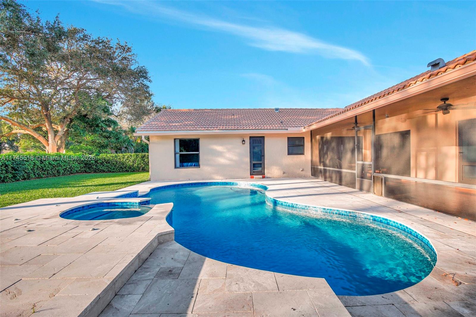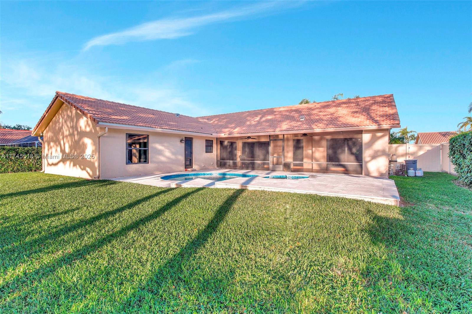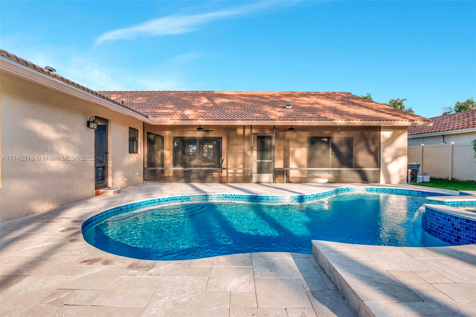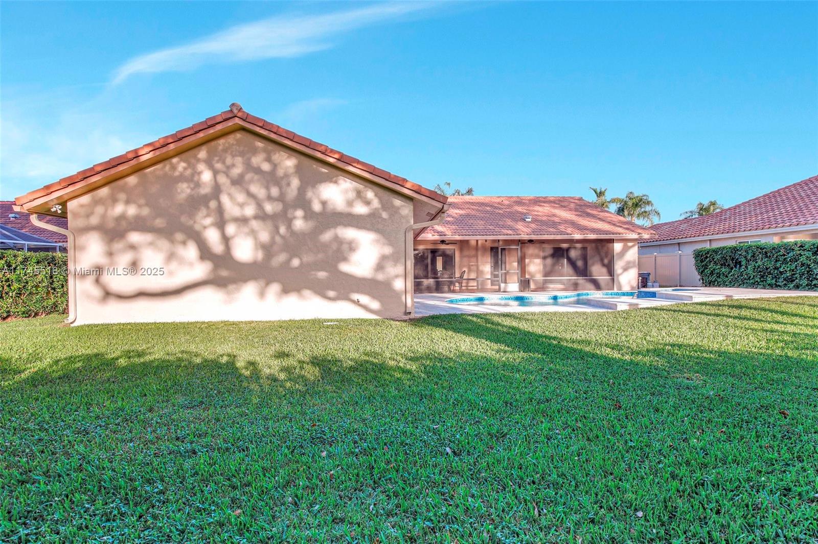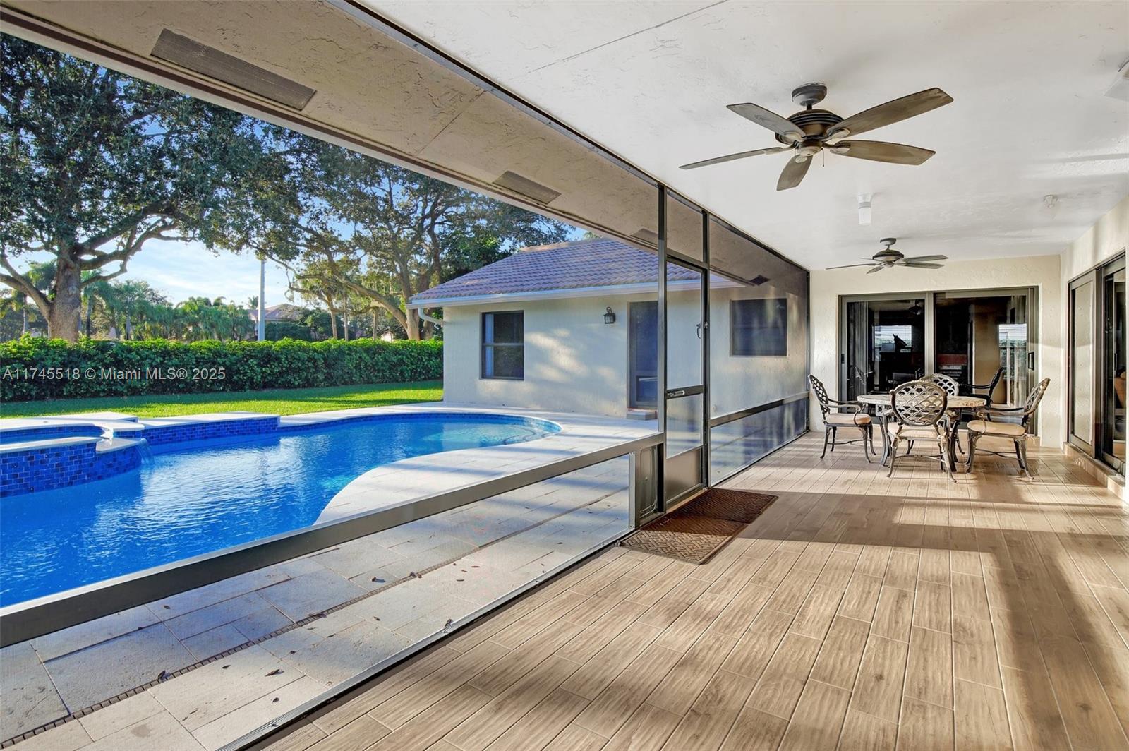 This is the one you have been waiting for!!!! 5/2 pool home in the newer section of Jacaranda Lakes. Just under 2,500 sq. ft. of living space on over a 1/4 acre lot. Gorgeous porcelain flooring in all main living areas, wood laminate floors in the bedrooms, and impact windows throughout. The updated kitchen boasts granite counters, wood cabinets, a center island, and overlooks the large family room. Enjoy vaulted ceilings in the oversized living and dining room which is perfect for those who like to entertain. Relax outside with your morning coffee in your expansive screened-in patio, or take a dip in the pool with plenty of room to roam in your backyard. 2007 Roof, 2014 AC, and 2019 Water heater. Low HOA, close to Publix, Plantation Walk, Sawgrass Mills Mall, and multiple highways.