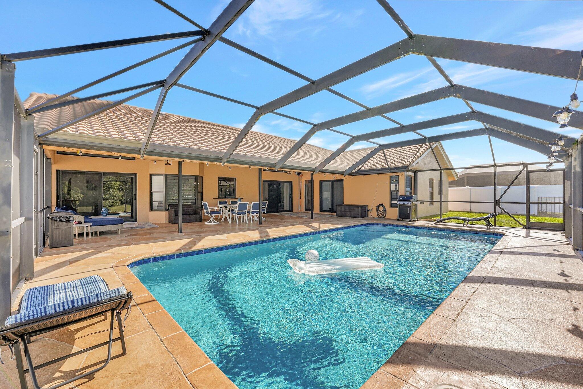 Welcome to this exceptional Island Lakes waterfront pool home, situated on a private, nearly quarter-acre lot with stunning preserve views and breathtaking sunsets. This residence features 2021-installed LAWSON impact doors and windows, known for their superior weather protection and elegant bronze finish. Additional highlights include a 2010 roof, a 2016 Carrier 5-ton variable speed A/C system, and new 1.5hp pumps for both the pool and irrigation system, utilizing lake water. The home has been newly painted and features all new baseboards, a new bathroom, and a new heater for the pool, along with high hats for enhanced lighting.The interior offers four spacious bedrooms, 2.5 baths, and a 2-car garage. Enjoy the open floor plan with soaring cathedral ceilings and tile flooring