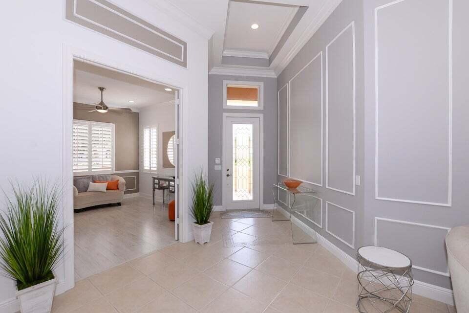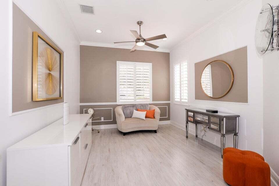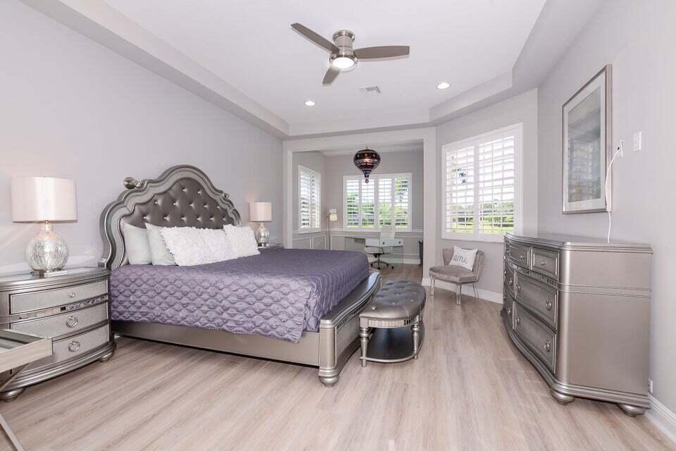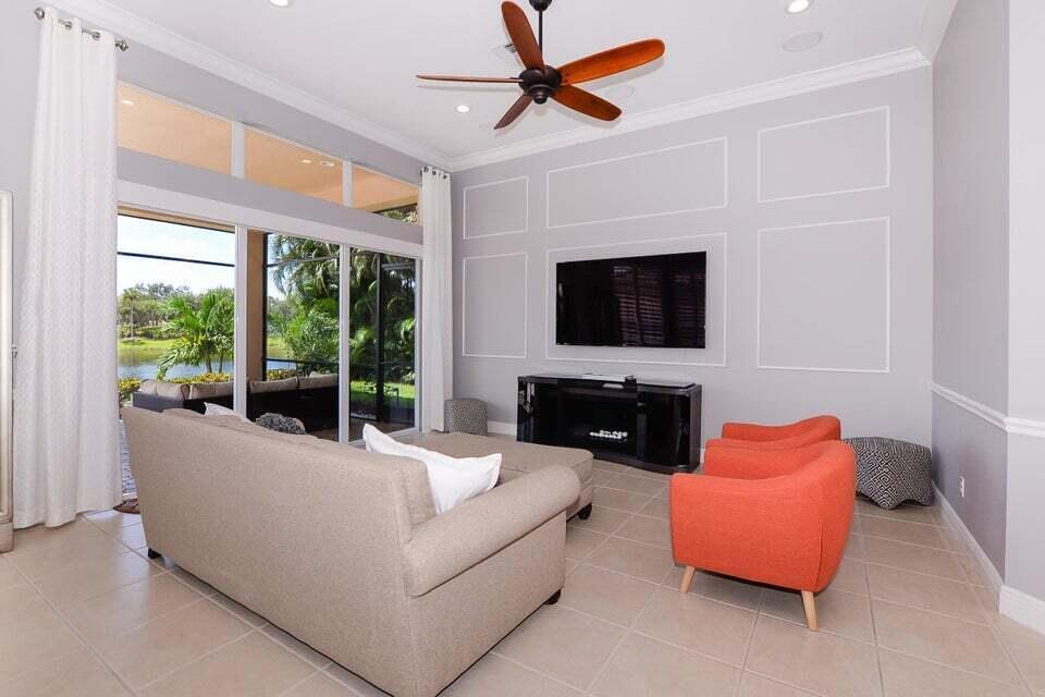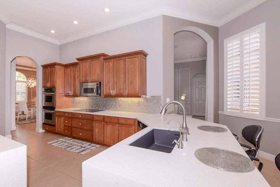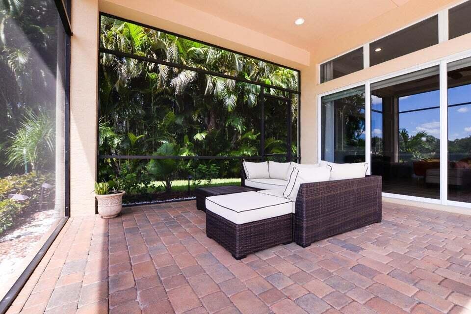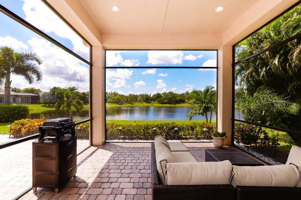 Stunning home in VERANO with spectacular lake views and unique courtyard entrance! Fantastic curb appeal! The Carrara floor plan has formal living & dining room, 3 BR's, 3 Full Baths, 2 1/2 baths, den/office & 2.5 Car Garage. Family room with TV plus electric fireplace & sliders to screen enclosed patio. Master suite w/ sitting rm, 2 walk-in closets, plus grand master bath with his/her accommodations. Guests will be comfortable in either of the ensuite bedrooms. Gourmet EAT IN kitchen is well appointed with Quartz counter tops, beautiful metal backsplash, Stainless steel appliances, pantry & double wall ovens. Numerous upgrades throughout the house include plantation shutters, crown molding, central vac, Bose sound, hurricane impact glass, extended back patio w/over sized covered area.