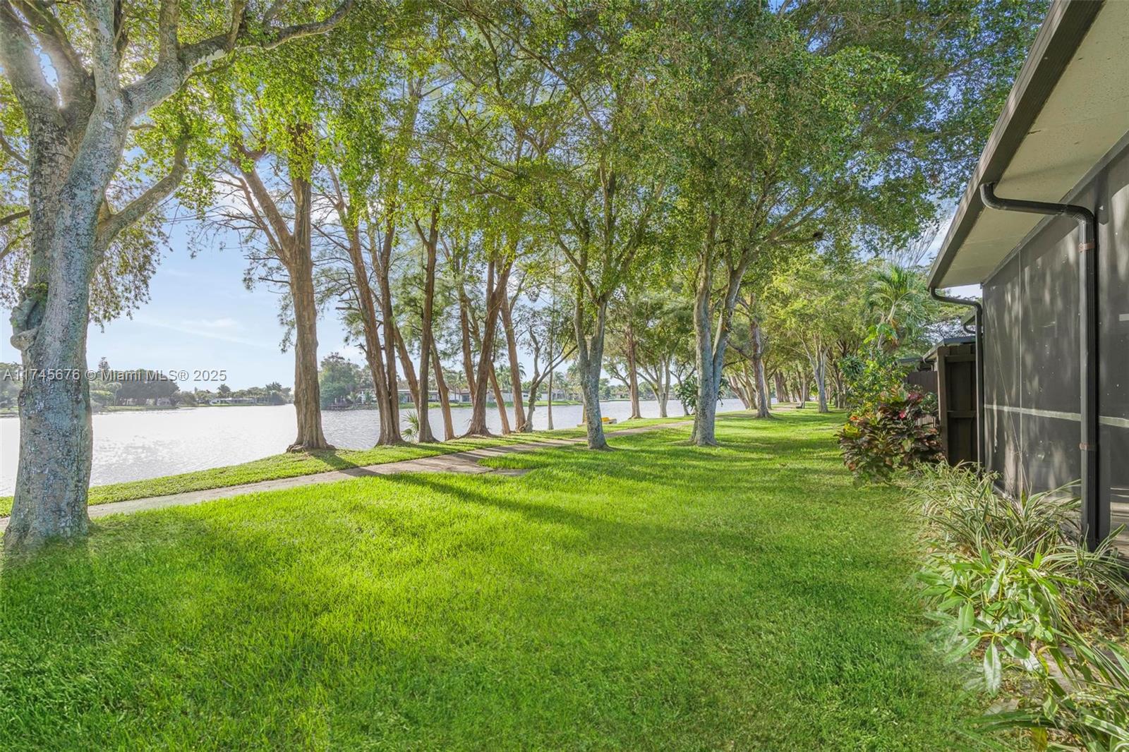 This charming corner lot 2/2 loft villa in Cedarwoods offers the best lakefront location with stunning wide water views! Featuring soaring vaulted ceilings, this home feels open & inviting. The oversized screened-in patio is perfect for entertaining while enjoying the tranquil scenery. Proudly owned & meticulously maintained by original owners. Inside, tile flooring spans through the living area. The versatile loft can serve as an office, extra bedroom, or storage space. Newer roof. Hurricane shutters provide added security. Located in an all-ages, low-HOA community ($113/month). Close to top schools, shopping + a scenic jogging path around the lake! Two assigned parking spaces and ample guest parking!
