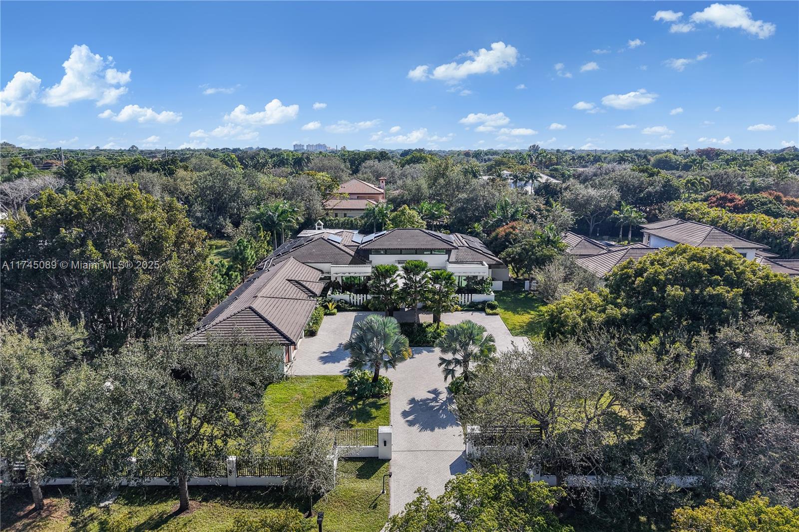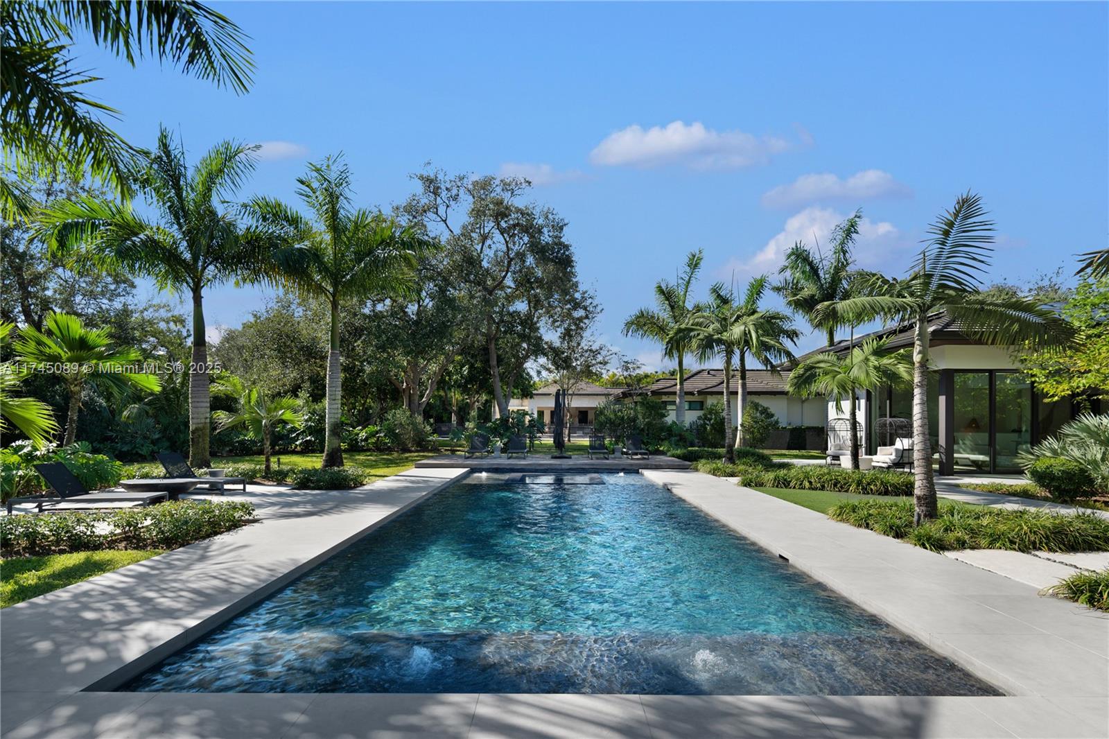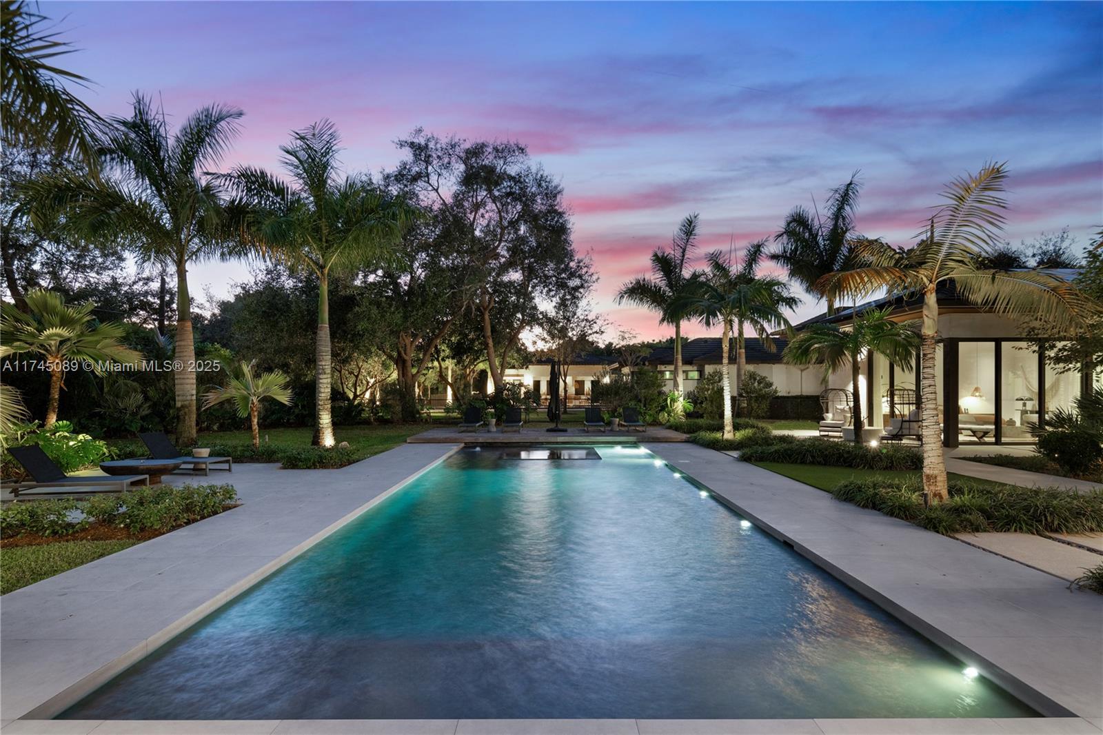 Luxury, sustainability & modern elegance define this stunning 5-bed, playroom+2 den, 6.5-bath Pinecrest estate. Step inside to an open-concept layout with floor to ceiling windows that seamlessly blends style with functionality. The gourmet kitchen features a 6-burner Wolf gas range, pot filler, double ovens, quartz counters & eat-in island for 8. A temp-controlled 504-bottle wine cellar, fireplace, bar, & coffee station completes the space. The primary suite has blackout shades, boutique-style closets & spa-like en-suite. 3 en-suite guest rooms, plus a maid’s suite with private dog run. Lush landscaping, turf play area, summer kitchen cabana bath & heated saltwater pool/spa create a perfect oasis. Gated entry, whole-house solar panels, & 3-car garage accentuates this high-tech sanctuary.