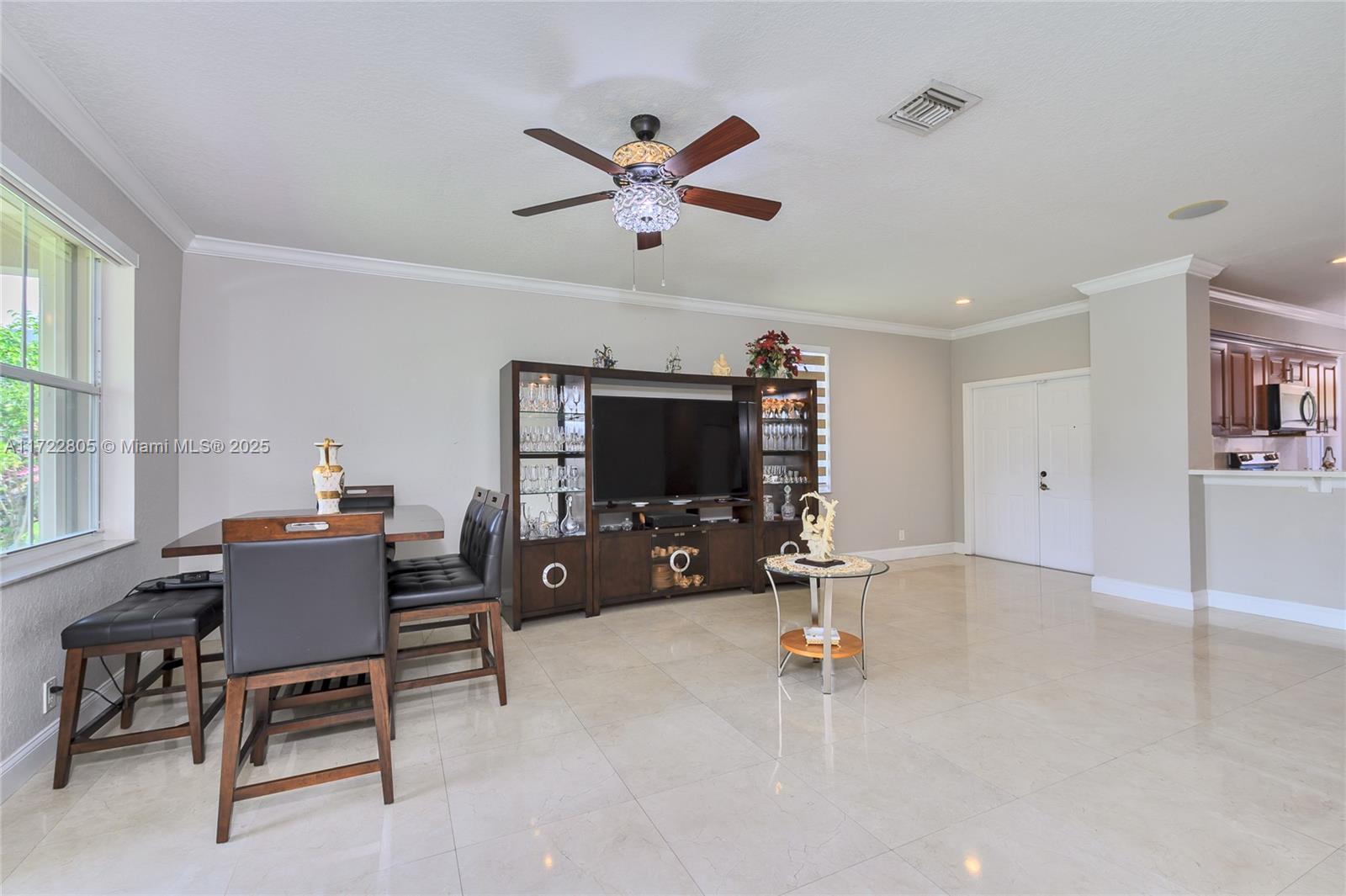 Single family home in the desirable community of Savanna with NEW ROOF installed in February 2025 (+gutters), with 4 bedrooms and 3 full baths on two floors. A fully renovated 2 story model with 2 master rooms. It has 3 rooms on the 1st floor & a bigger suite on the second floor. Beautiful Spanish porcelain flooring downstairs & newer laminate flooring on the 2nd floor. The updated kitchen is a dream with tons of cabinets & countertop with full backsplash (critsal white). Renovated 2 bathrooms with Italian porcelain on the floor and walls, new toilets, new medicine cabinets, new LED mirrors. New blinds & appliances. Accordion shutters in all windows.Savanna is an excellent family oriented community with a Resort style Club House featuring two swimming pools, and an amazing kids pool area.