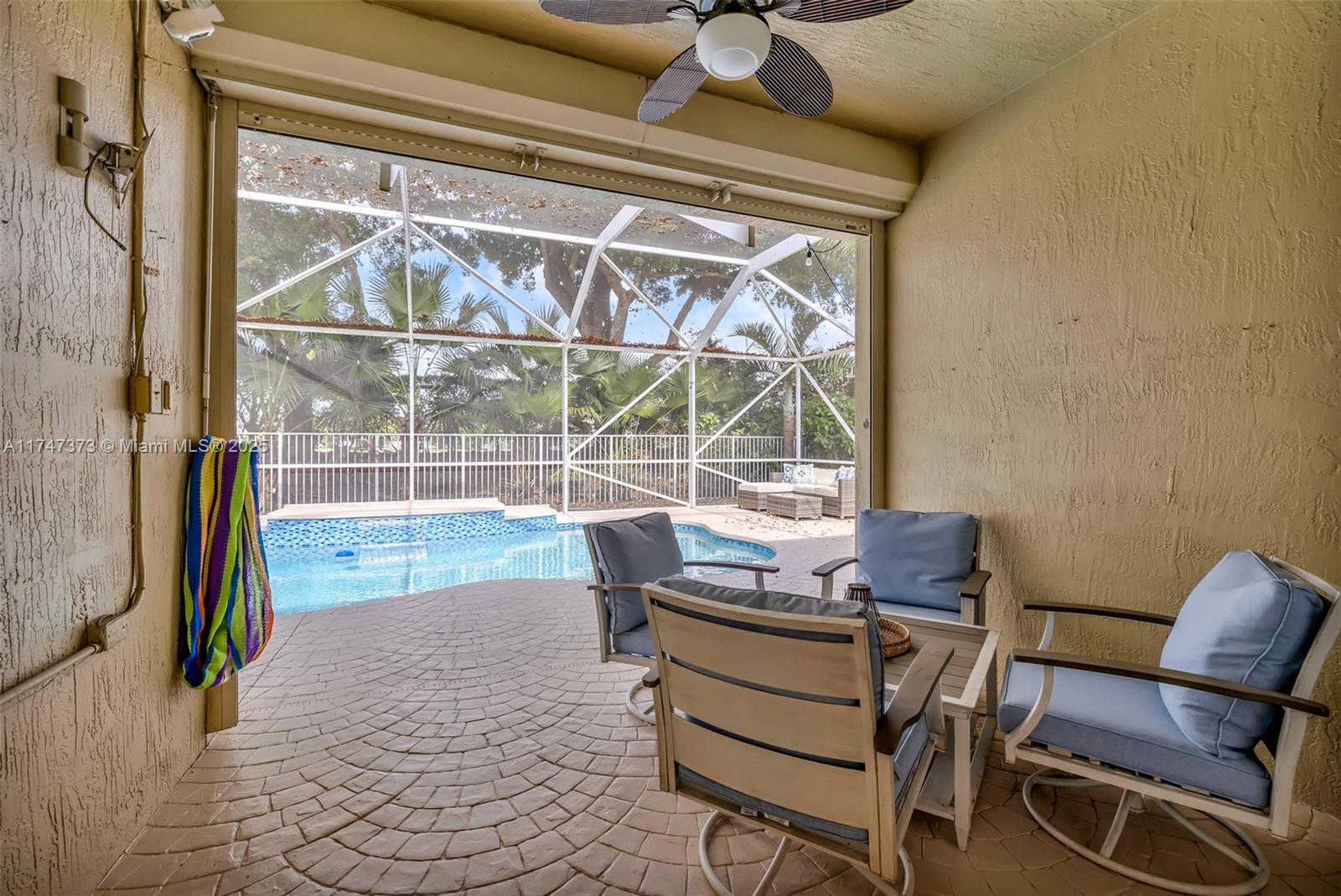 PRICED TO SELL!!!! PERFECT FOR FAMILY SEEKING PRIME LOCATION AT AFFORDABLE REDUCED PRICE NOW!!! Naturally bright, Open and Spacious one-story house with lots of upgrades. NEW ROOF from 2024. Freshly painted inside.Wood kitchen cabinets with Fridgidaire Professional and Bosch Appliances including wine cooler. SALT WATER Pool with NEW pool pump and recently resurfaced diamond Brite. Gated Community. HOA maintains front and back lawn care, cable,High speed Internet, and security alarm along with community pool and gym. Walking distance to Emerald Estate park, tennis courts, lots of restaurants and Publix. Zoned for All A+ Weston Schools (Everglades Elementary, Falcon Cove Middle and Cypress Bay High School). Move in ready home. Motivated Seller, Come see it today!!!