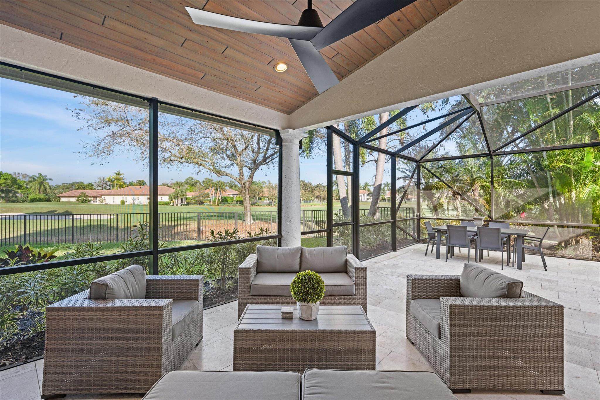 Perfect golfer's get-away! Located in the sought-after neighborhood of Fairway Villas in Breakers West, this elegant home boasts 3 Bedrooms, 3 Full Baths and 2-car garage with sweeping fairway views of Breakers West Rees Jones Course. Open Great Room floor plan has vaulted ceilings, marble flooring thru-out, solid wood custom cabinetry and granite counters in kitchen and all baths. This elevated yet comfortable home has an inviting outdoor patio with a screen enclosed heated pool/spa and marble deck; roofed loggia with wood ceiling. Additional upldates include hurricane impact windows/doors thru-out, freshly painted interior & exterior, new interior lighting, new Sonos sound system and new landscaping highlighted by new landscape lighting. The pool has been updated with new equipment
