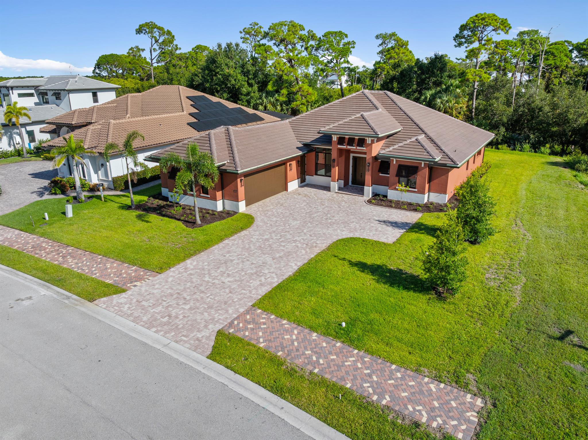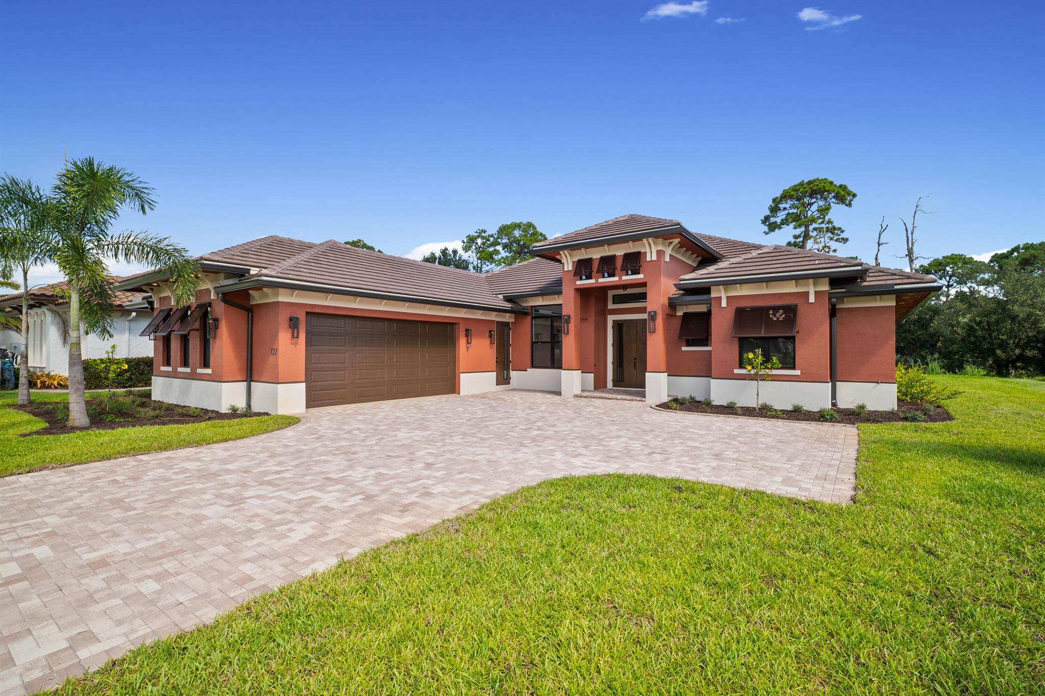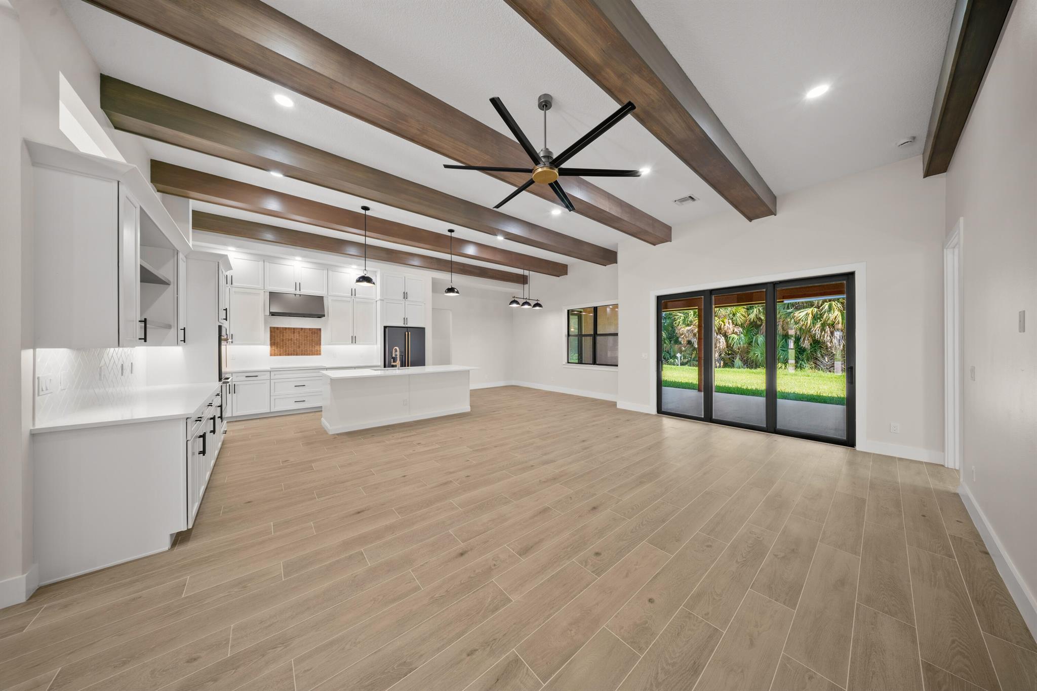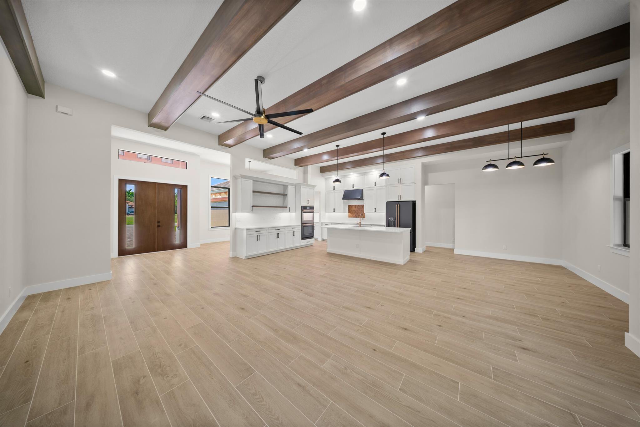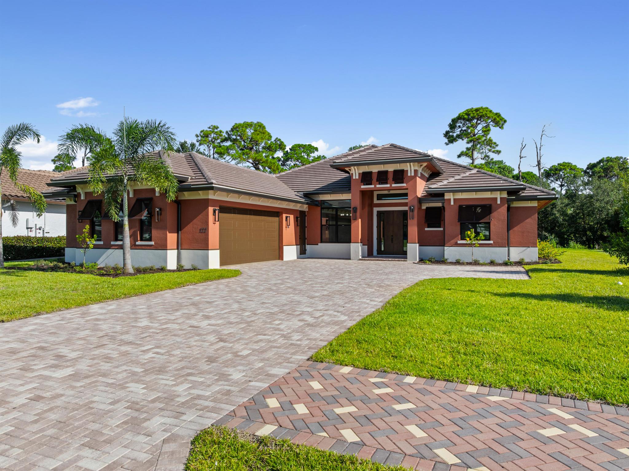 This is the only home of its kind, a custom, never-before-built design in the gated community of Rivella, set on a premium corner lot with preserve views. Inside, you'll find 12' ceilings, exposed beams, and triple impact sliders leading to a covered lanai with outdoor kitchen and fireplace. The chef's kitchen includes quartz counters, custom cabinetry, and a walk-through butler's pantry. The primary suite offers a freestanding tub, oversized shower, and full privacy. Enjoy walkable access to the clubhouse, pool, and tennis. Located near Jensen Beach, downtown Stuart, botanical gardens, and upscale shopping. No closing costs with preferred lender. Optional Paint Color TBA by HOA
