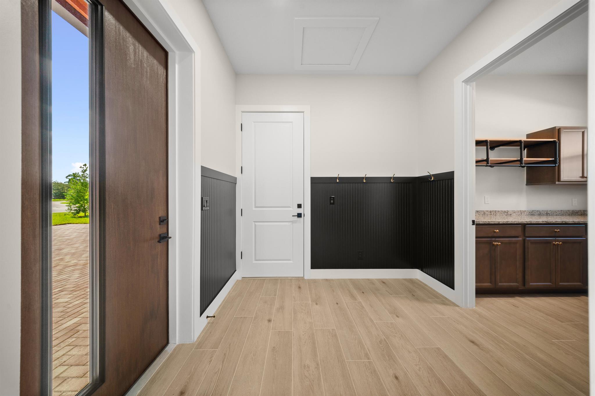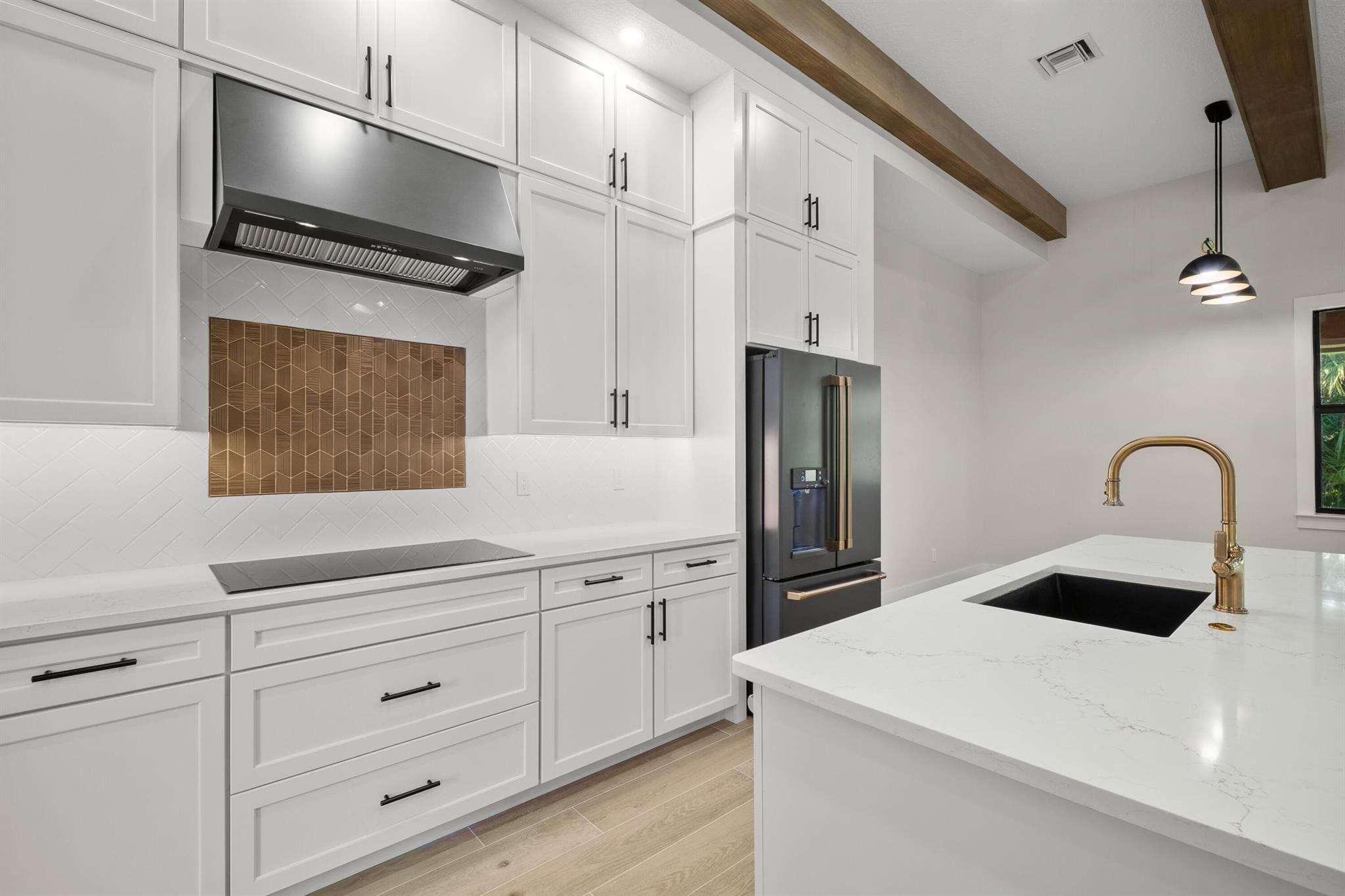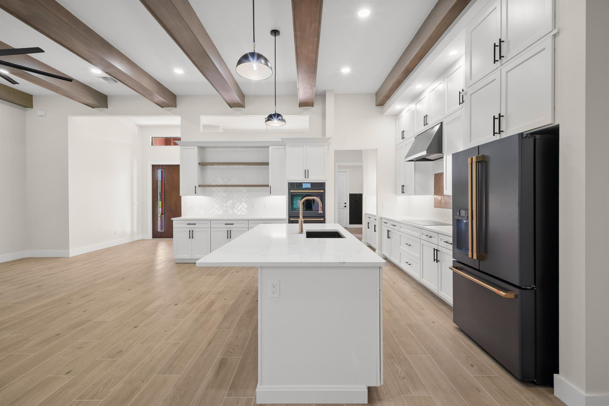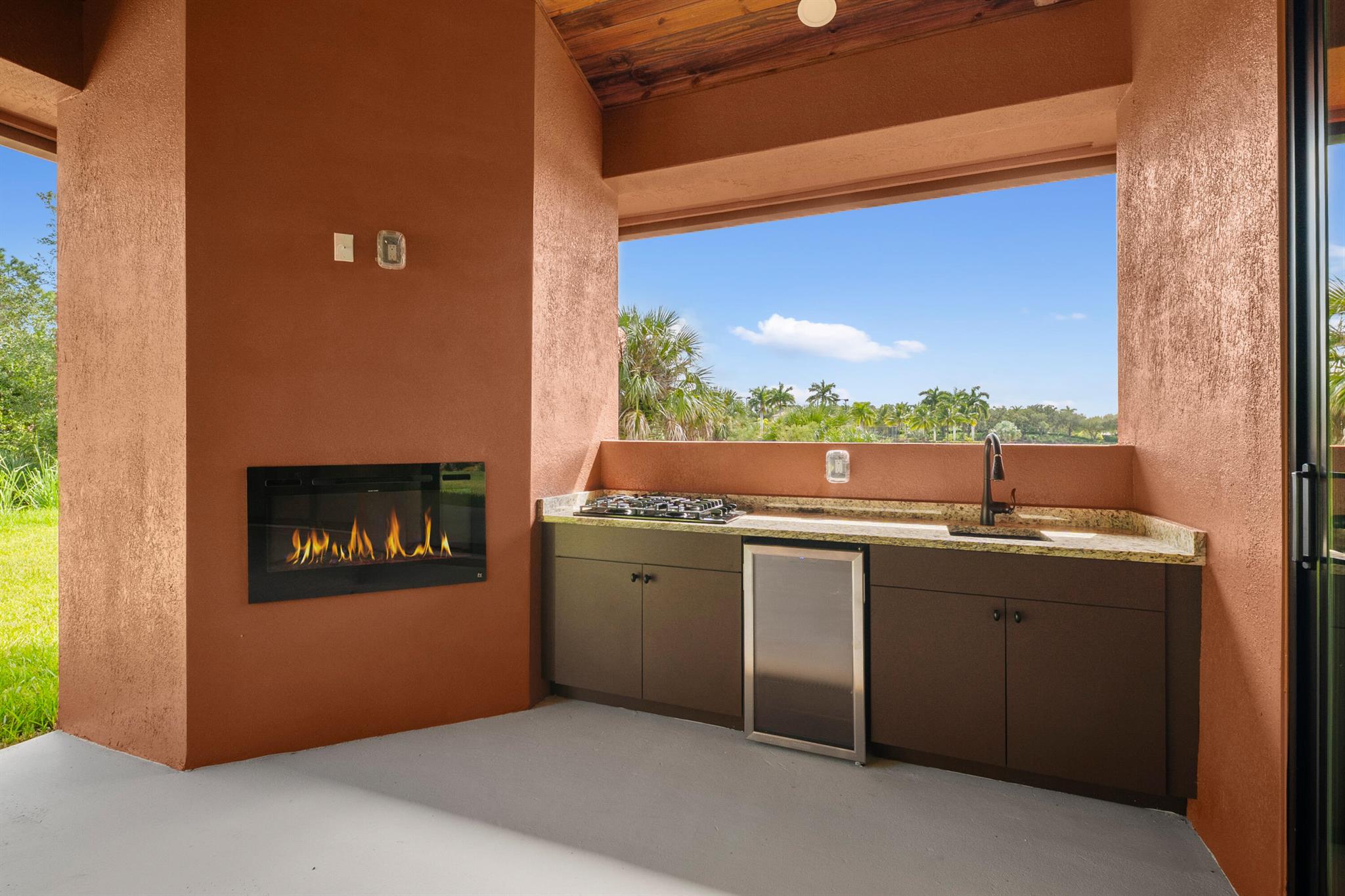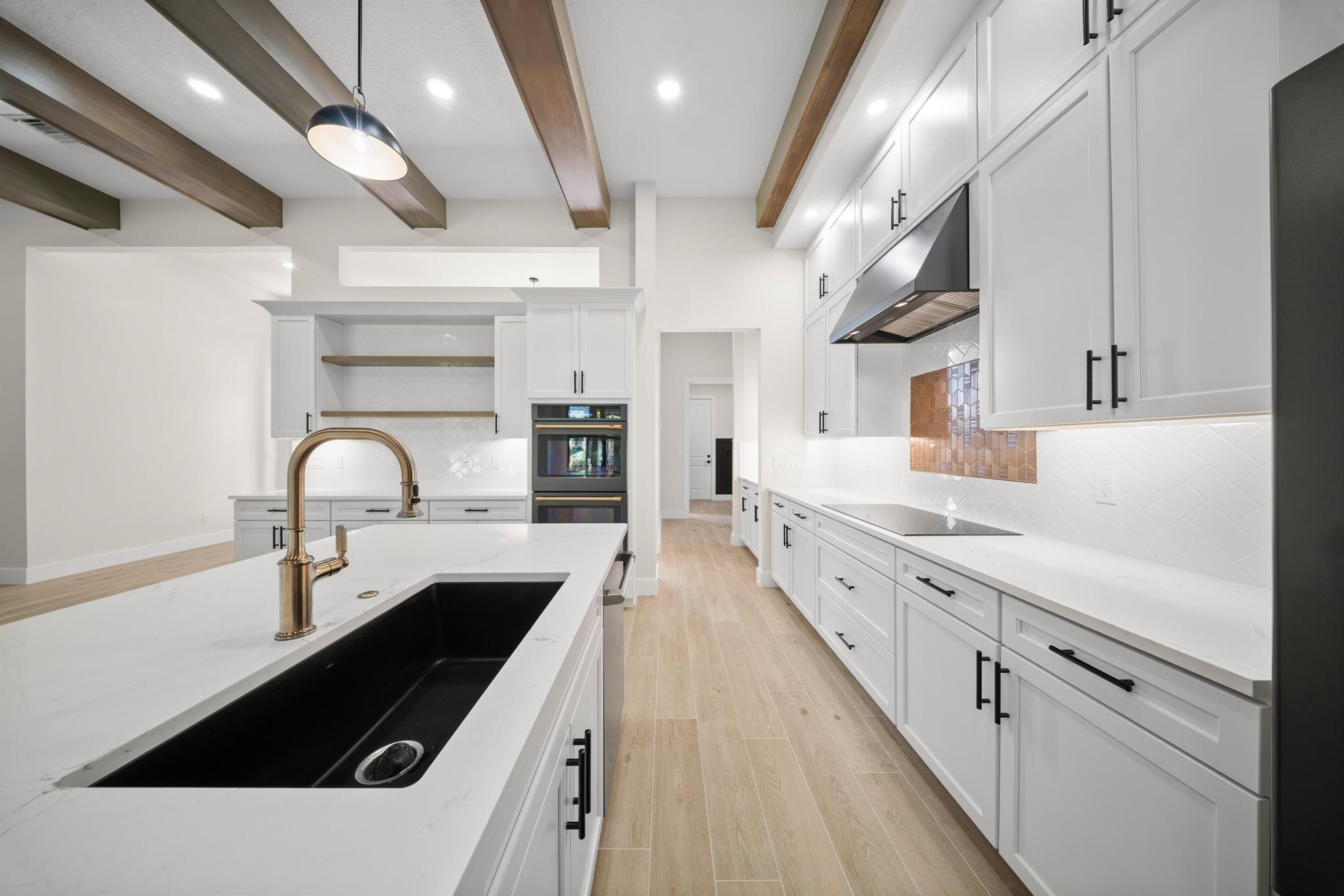 This is the only home of its kind, a custom, never-before-built design in the gated community of Rivella, set on a premium corner lot with preserve views. Inside, you'll find 12' ceilings, exposed beams, and triple impact sliders leading to a covered lanai with outdoor kitchen and fireplace. The chef's kitchen includes quartz counters, custom cabinetry, and a walk-through butler's pantry. The primary suite offers a freestanding tub, oversized shower, and full privacy. Enjoy walkable access to the clubhouse, pool, and tennis. Located near Jensen Beach, downtown Stuart, botanical gardens, and upscale shopping. No closing costs with preferred lender. Optional Paint Color TBA by HOA