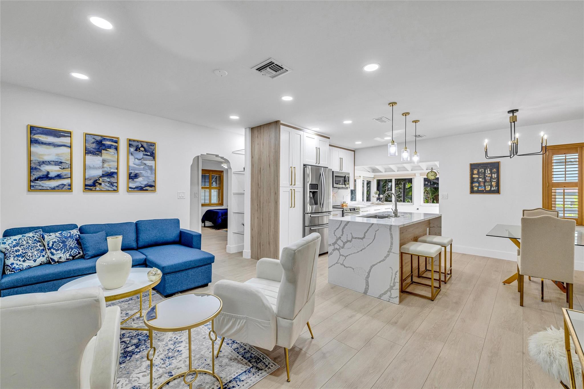 On the ridge in Victoria Park. Property survey indicates it is above flood zones. Priced at land value, this stylish home features modern updates including new lighting, a sleek kitchen with new appliances, two newer baths, HVAC (2019), tile roof (2023), and impact windows/doors (2021). On a prime street, it offers serene gardens, multi-level decks for entertaining, and low-maintenance turf. A welcoming front porch leads to a bright open-plan living area. The kitchen provides generous storage and workspace. Bedrooms are spacious with high ceilings and large closets. The attached garage includes a newer washer/dryer and storage. Ideally located near parks, dining, groceries, Las Olas, and the beach.