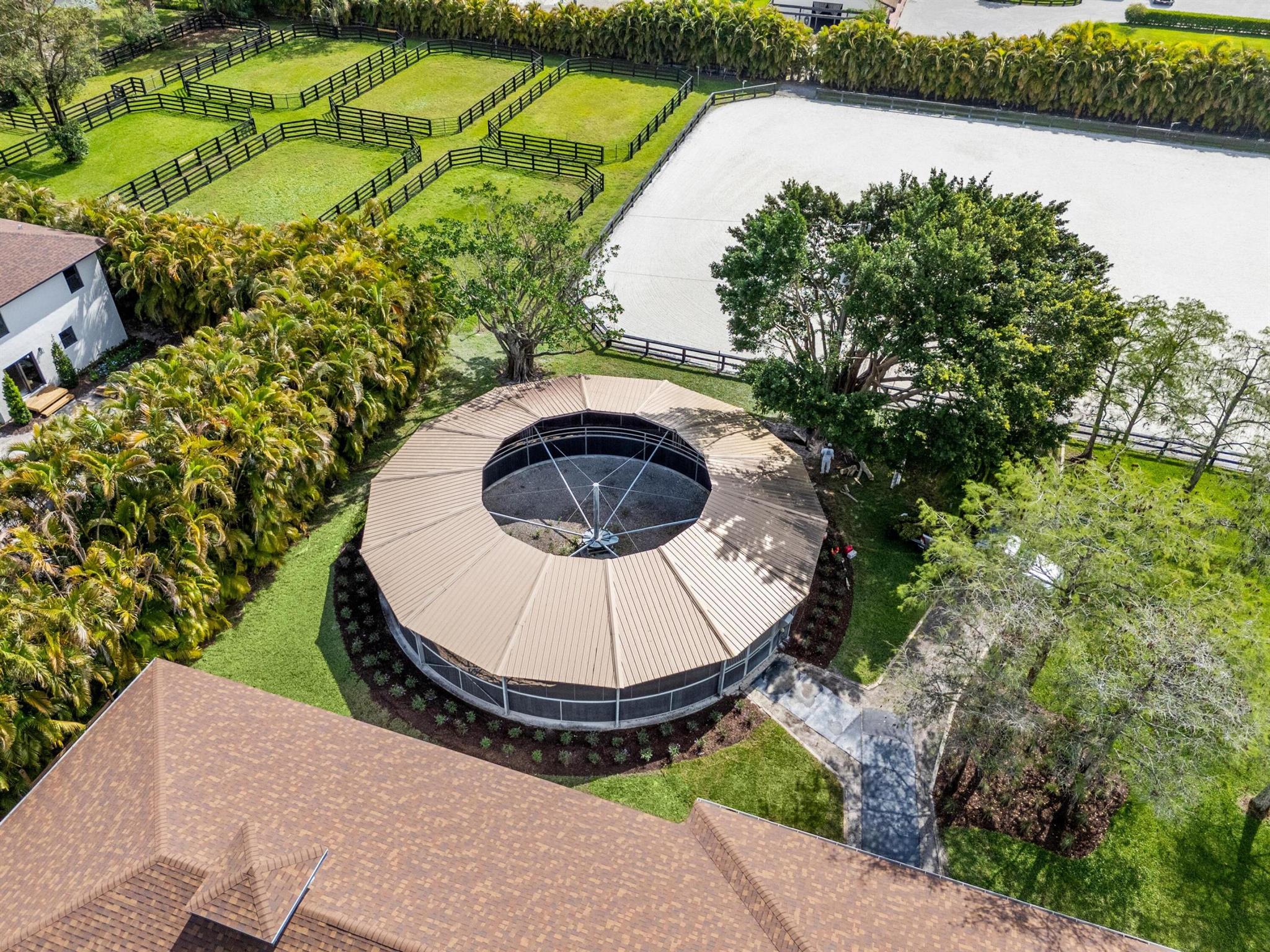 Enjoy the best of both worlds on this exceptional 10+-acre equestrian property, ideally located just minutes from Global and WEF while offering the tranquility of Wellington's farm life. This property combines top-tier equestrian amenities with luxurious living, providing everything needed for you and your horses. The 26-stall center-aisle barn is the standout feature of this property, equipped with 6 wash stalls, 2 tack rooms, a feed room, and a lounge. A separate building offers even more versatility, with a second lounge, 2 bathrooms, an oversized laundry room, and 2 spacious 2-bedroom, 1-bathroom apartments. Additionally, a huge storage area provides ample space for hay, shavings, tractors, golf carts, jumps, and farm equipment. Other equestrian facilities include 2 all weather arenas