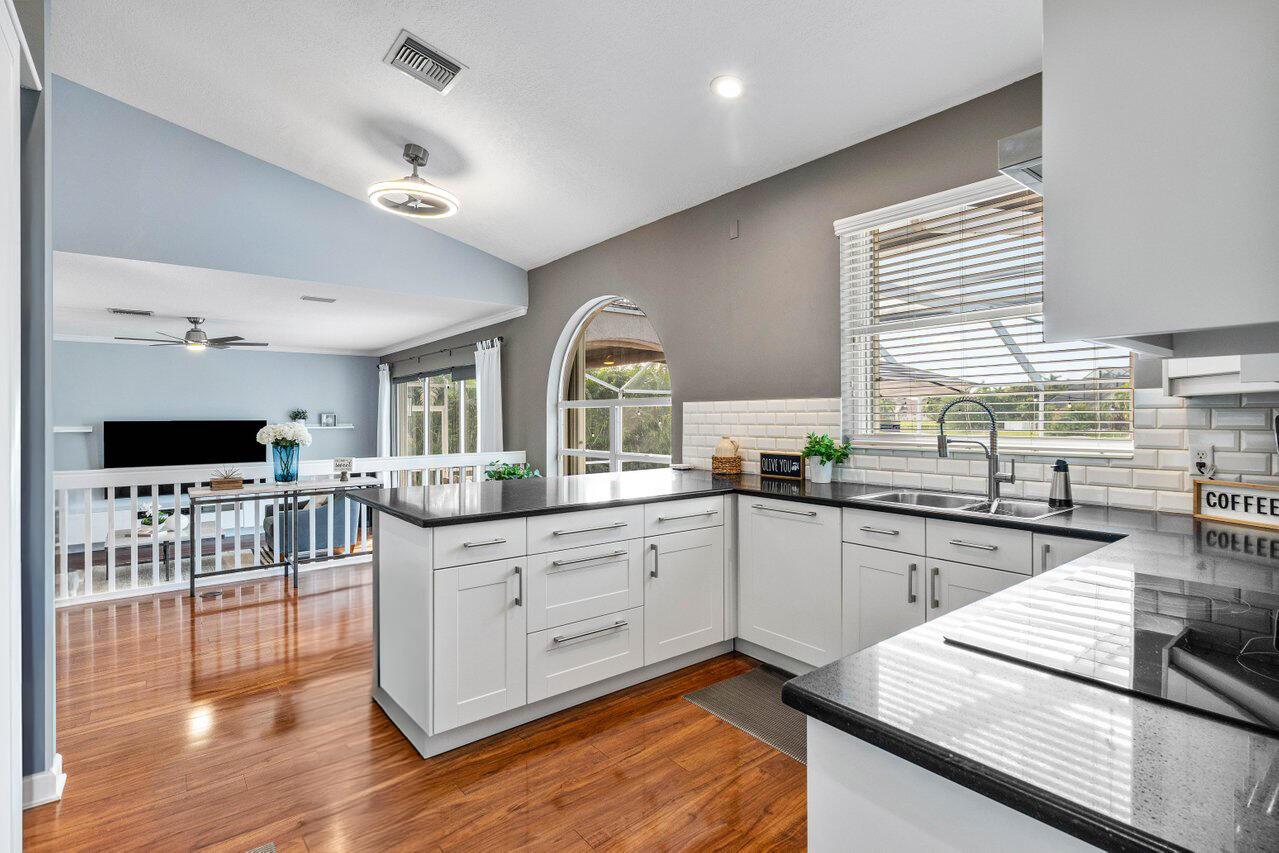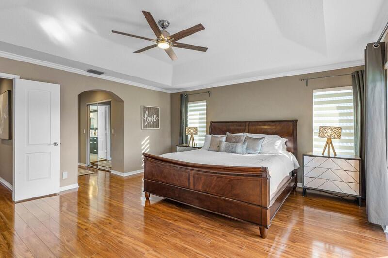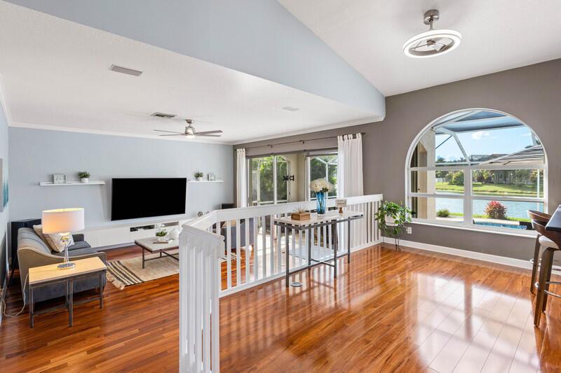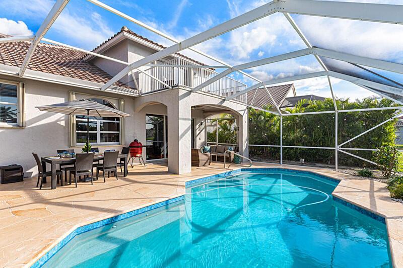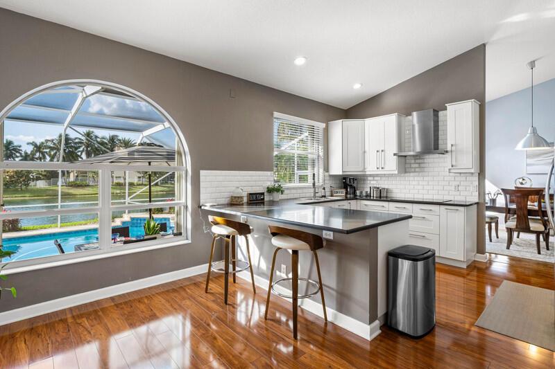 Welcome home to this 4 bedroom, 3 full bath, 3 car garage, stunning lakefront pool home in beautiful Boca Isles South. This remodeled home has ALL the bells & whistles. Features include a fabulous chef's kitchen w/ white cabinets, quartz countertops, & stainless steel appliances, updated bathrooms, 2017 roof, accordion shutters throughout, hardwood & laminate flooring, high end fixtures & fans, beautiful landscape lighting, & the list goes on. This immaculate home has an open floorplan with one full bedroom & one full bathroom on the first floor, & three bedrooms (including the primary w/ its own private baclcony overlooking the lake) upstairs. Enjoy the beautiful sunsets by your private screened in pool w/ long lake views. Boca Isles South is a 24/7 gated community w/ fabulous amenities.