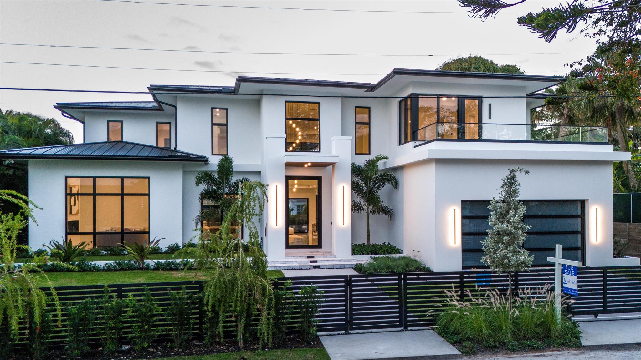 Unique opportunity with view of the Intracoastal waterway as you experience luxury living in this brand-new masterpiece. High-end designer finishes & clean lines throughout exude luxury & elegance. This home is replete with impact windows & doors, chef's kitchen with professional grade appliances, stunning glass wine enclosure, elevator, sleek gas fireplace, motorized screens & more! Large open balcony off the loft space & primary suite provides ample private lounging areas, including a spiral staircase to the rooftop deck with incredible panoramic views of the Intracoastal & Palm Beach Island. Enjoy resort style living with a heated pool & hot tub. Entertain & dine al fresco in the covered loggia complete with a summer kitchen. Impeccable design, prime location & top-notch craftsmanship.
