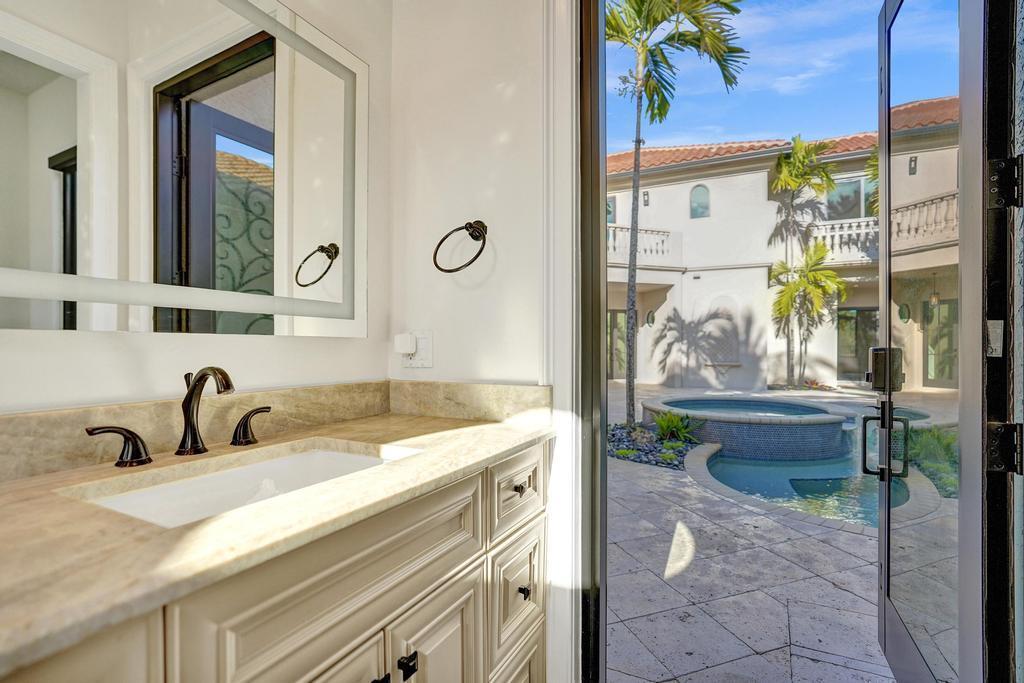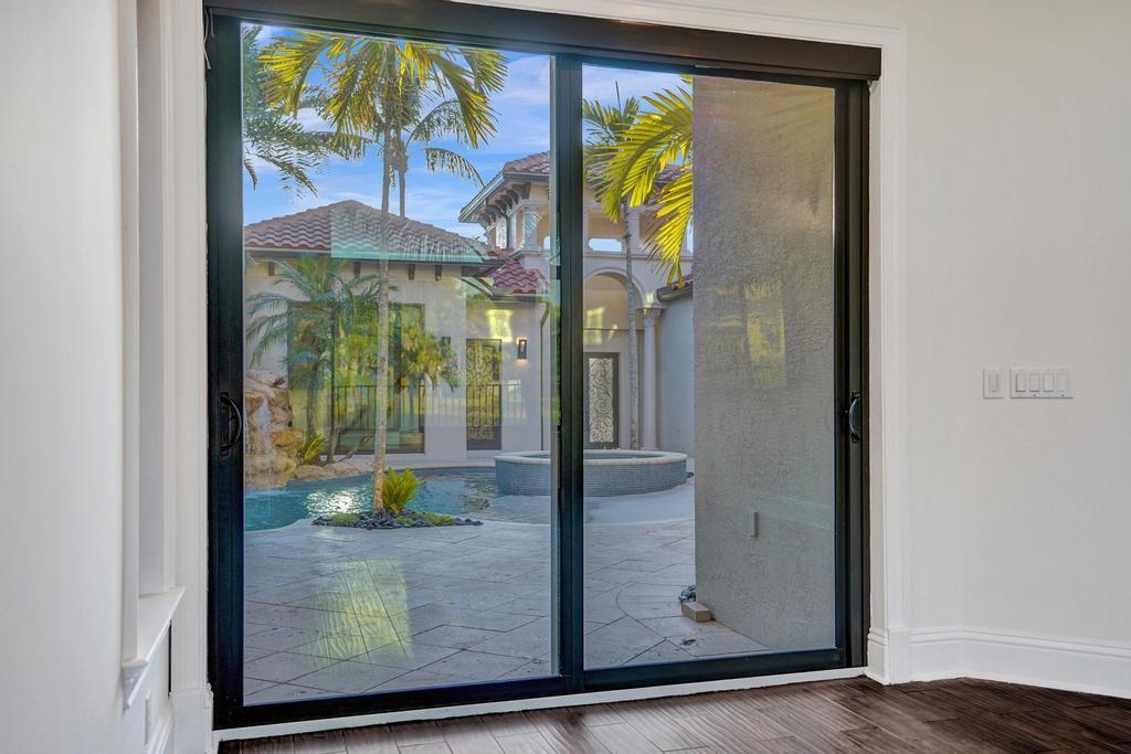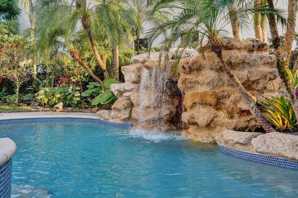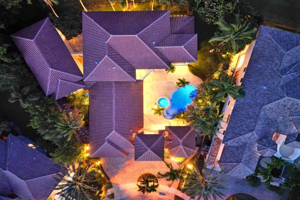 Step into luxury & privacy in this rare offering of a 5 Bed/7 Bath courtyard home in The Oaks. Enter the estate to find a serene beach entry pool w/elegant waterfall & hot tub w/automated Aqualink system. The home wraps around your tropical oasis. A private guest house is perfect for family & friends. First floor master bedroom boasts 2 separate bathrooms for the ultimate privacy. Kitchen provides all high-end Kitchen Aid appliances, copper sink and elegant counters. Indoor sports court can be used for golf training, tennis, pickleball, you name it! Outdoor kitchen located in retractable screened patio. 2019 ACs. 2020 impact windows/doors. 2024 NEW ROOF Motorized blinds & built-out closets. All bathrooms beautifully remodeled. Located on one of the most private lakefront lots in The Oaks.
