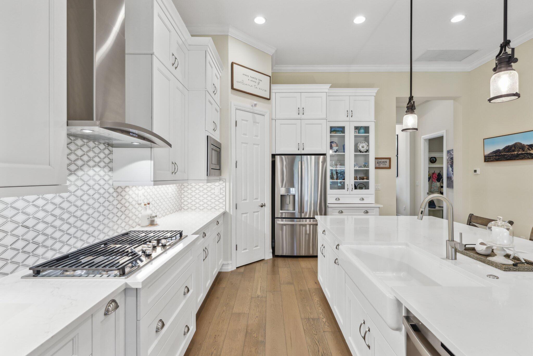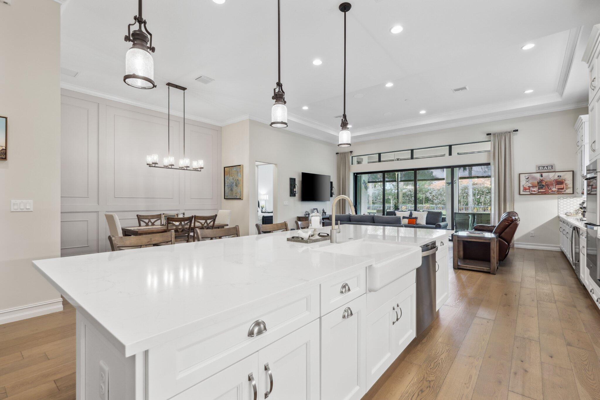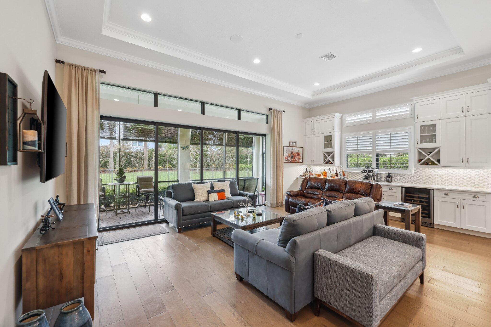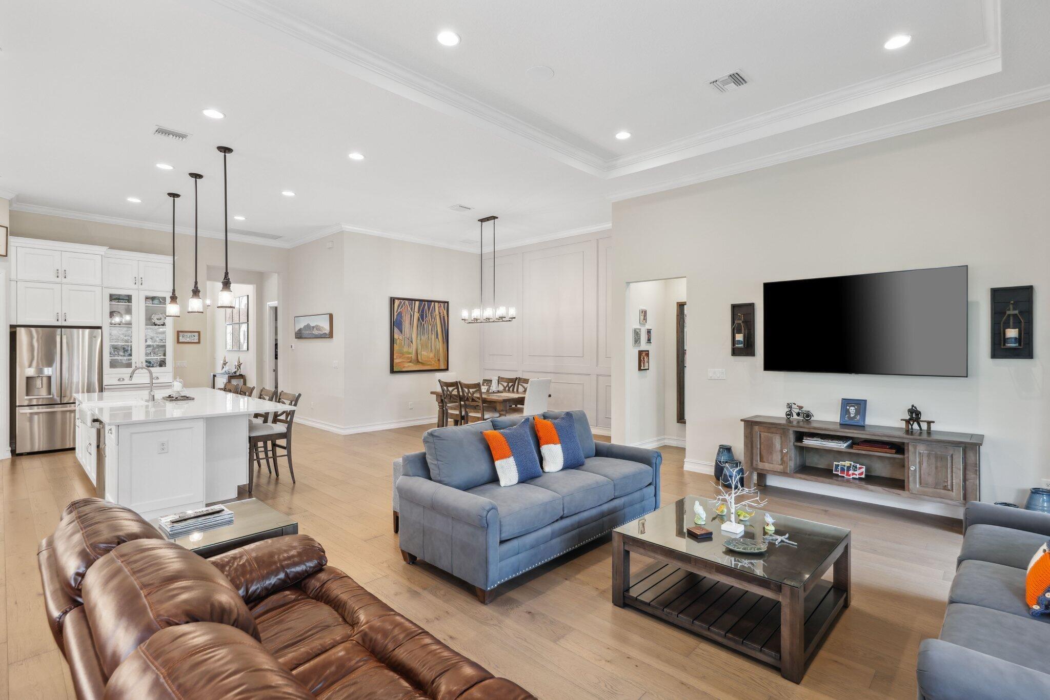 Welcome to 9025 Porto Way, located in the active 55+ community of Four Seasons Parkland. This inviting 3-bedroom, 2.5-bathroom home spans 2,601 square feet, offering a harmonious blend of luxury and comfort. The interiors boast exquisite wood floors and plantation shutters, enhancing the warmth and charm throughout. The heart of the home is a chef's dream gourmet kitchen, perfect for culinary adventures and gatherings. An entertainment center offers space for leisure and enjoyment. Step outside to discover a screened patio and a sprawling fenced yard ideal for outdoor relaxation. Additional features include a full-house generator, water softener, and an insulated garage. Nestled on a 9,641 square foot lot, this home promises a perfect blend of elegance and convenience.