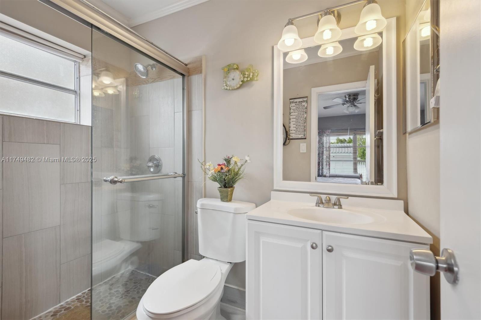 This cozy home offers 2 bedrooms 1 1/2 baths plus a bonus room. The flooring has tile in the common areas and both bedrooms have a wood laminate. Nicely renovated kitchen with granite countertops and stainless steel appliances. Separate laundry room with large full size washer/dryer. The master bedroom is bright and spacious and offers a private bathroom with a glass shower enclosure. New roof added in 2023. Accordion shutters on all windows. Located in a very quiet 55+ community just steps away from the clubhouse and pool. Local shopping, highways and restaurants are minutes away.