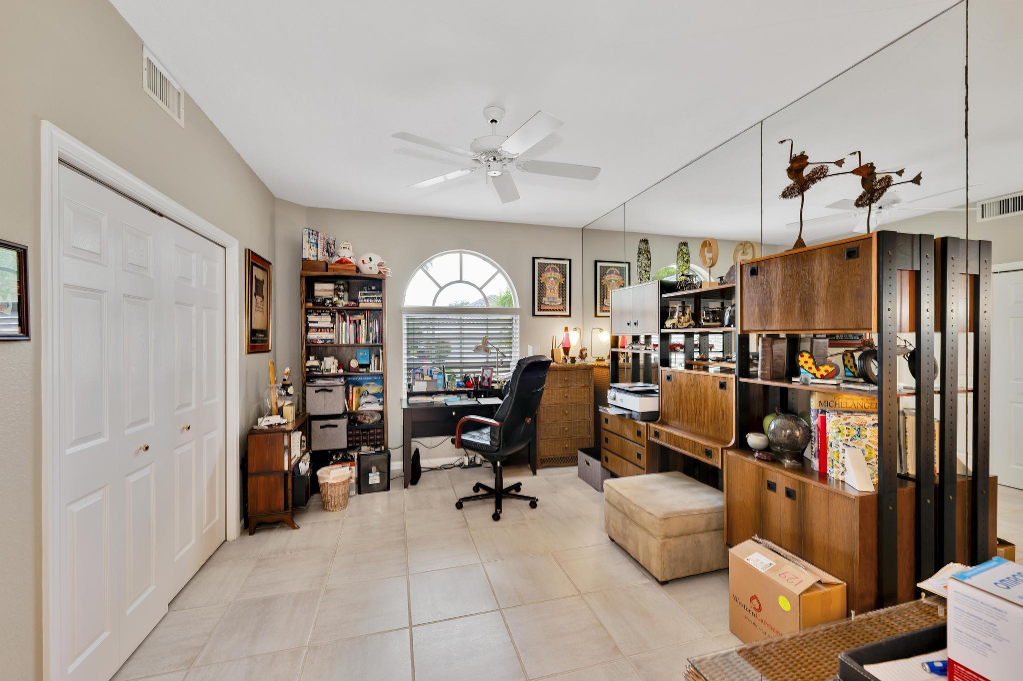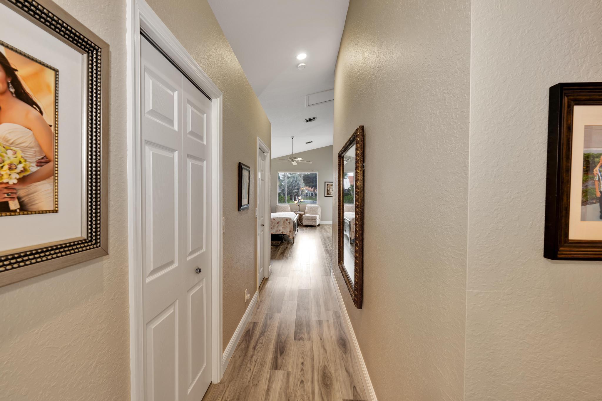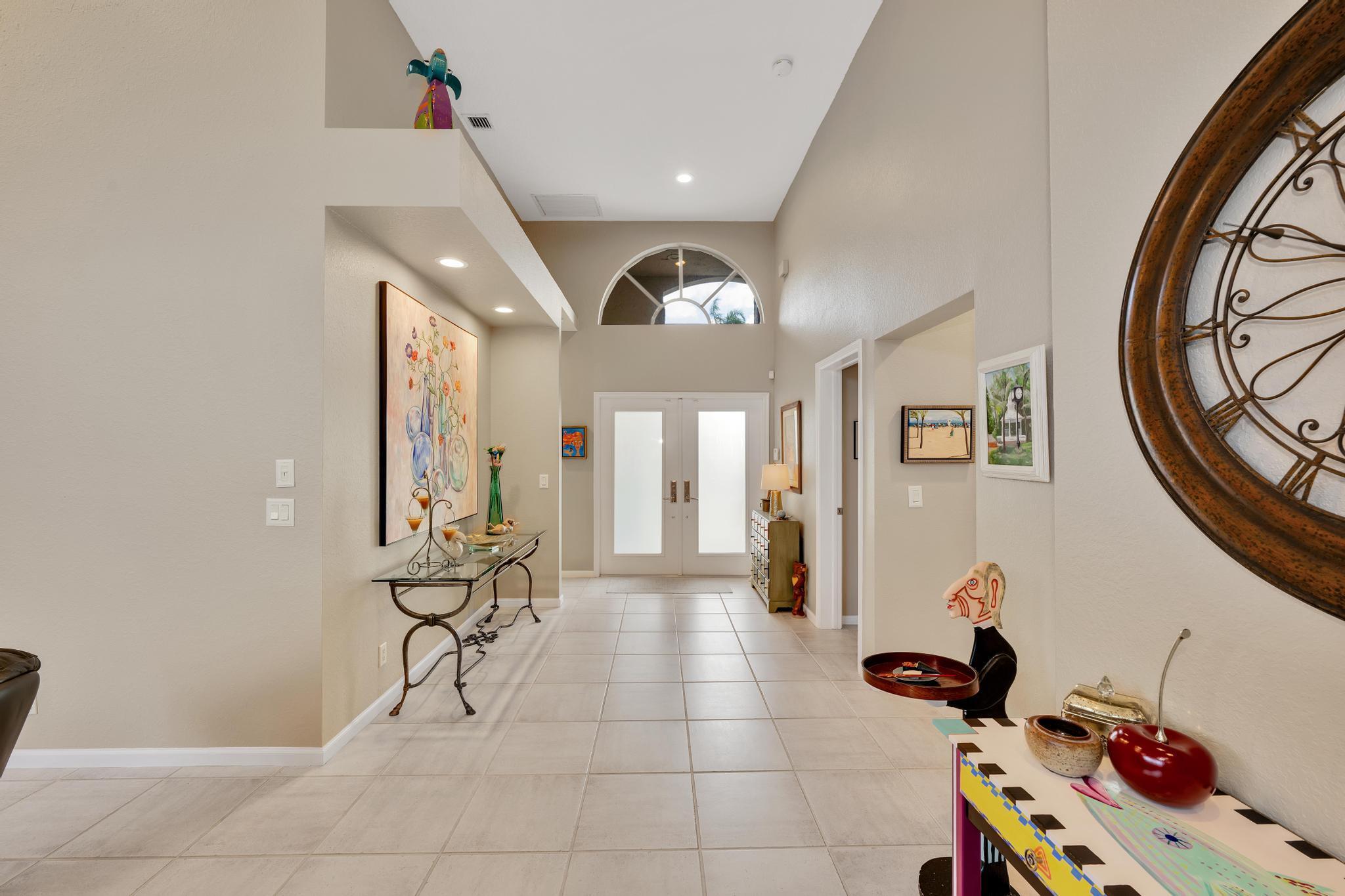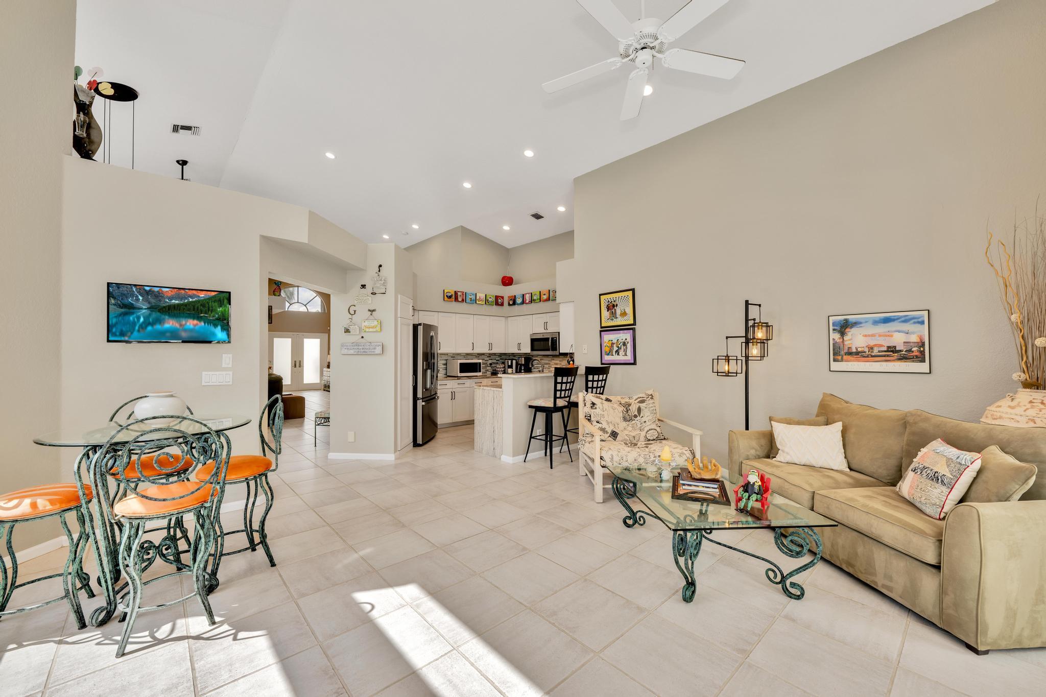 Spacious single-story home in desirable Hampton Fairways 55+ community! Enjoy 2,402 sq ft of tiled living space with 3 ensuite bedrooms, great room, family room, and large screened-in patio showcasing a stunning lake view with a lit fountain. The updated main bath features dual vanities, glass shower enclosure, and jetted tub. Kitchen with granite counters, stainless-steel appliances, storm-protected windows/doors, and a 2021 roof add value. Community perks include lawn care, -- on scheduled basis: exterior painting, driveway, walkways and roof power washing, and more. Up to two, 25-pound pets are welcome. Walking distance to community club house and pool. Indian Spring Club membership available but NOT required! Furniture available separately.
