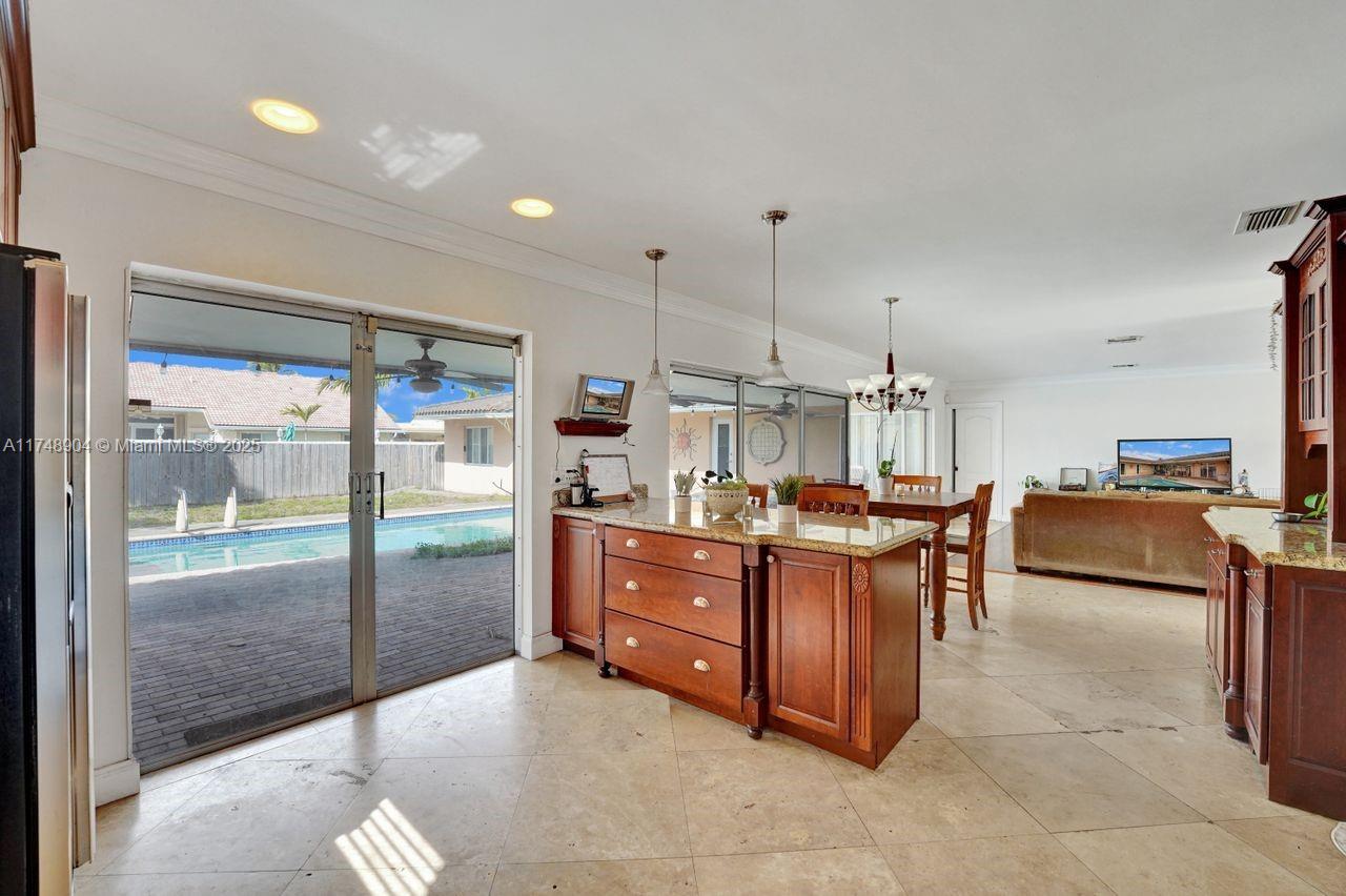 THREE BEDROOM PLUS MEDIA ROOM (COULD BE FORTH BEDROOM) IN PRIME HOLLYWOOD HILLS LOCATION ON DESIRABLE NORTH SIDE OF THE BOULEVARD ON A LOW-TRAFFIC STREET. THIS HOME IS A DIAMOND IN THE ROUGH. WITH TLC, IT WILL BE A SHINING GEM. FEATURING OPEN FLOOR PLAN WITH BEAUTIFUL VIEWS OF THE POOL AREA FROM THE LIVING ROOM AND PRIMARY BEDROOM.THREE BEDROOMS PLUS A ROOM OR A FOURTH BEDROOM. NO FLAT ROOF LIKE SIMILAR HOMES IN THE AREA. OVERSIZE GARAGE THAT WILL ACCOMMODATE TWO CARS AND A MOTORCYCLE. THE KITCHEN HAS BEEN REMODELED IN TRUE CHERRY WITH BEAUTIFUL PROFILED GRANITE COUNTERTOPS. DUAL ZONE CENTRAL AIR: BEAUTIFUL PAVED PATIO AND POOL WAS RESURFACED IN 2022. TRUE CABANA BATH ACCESSED FROM THE POOL. THE MASTER BATHROOM HAS ACCESS TO THE POOL, READY FOR YOUR IMAGINATIVE TOUCHES.
