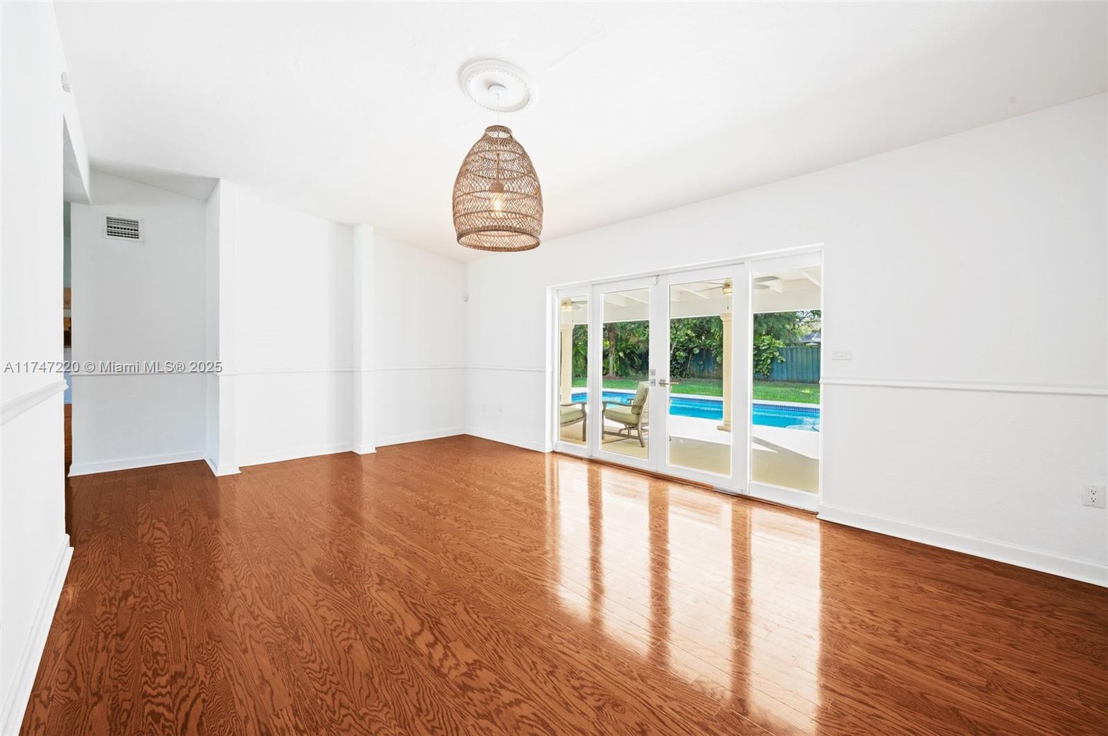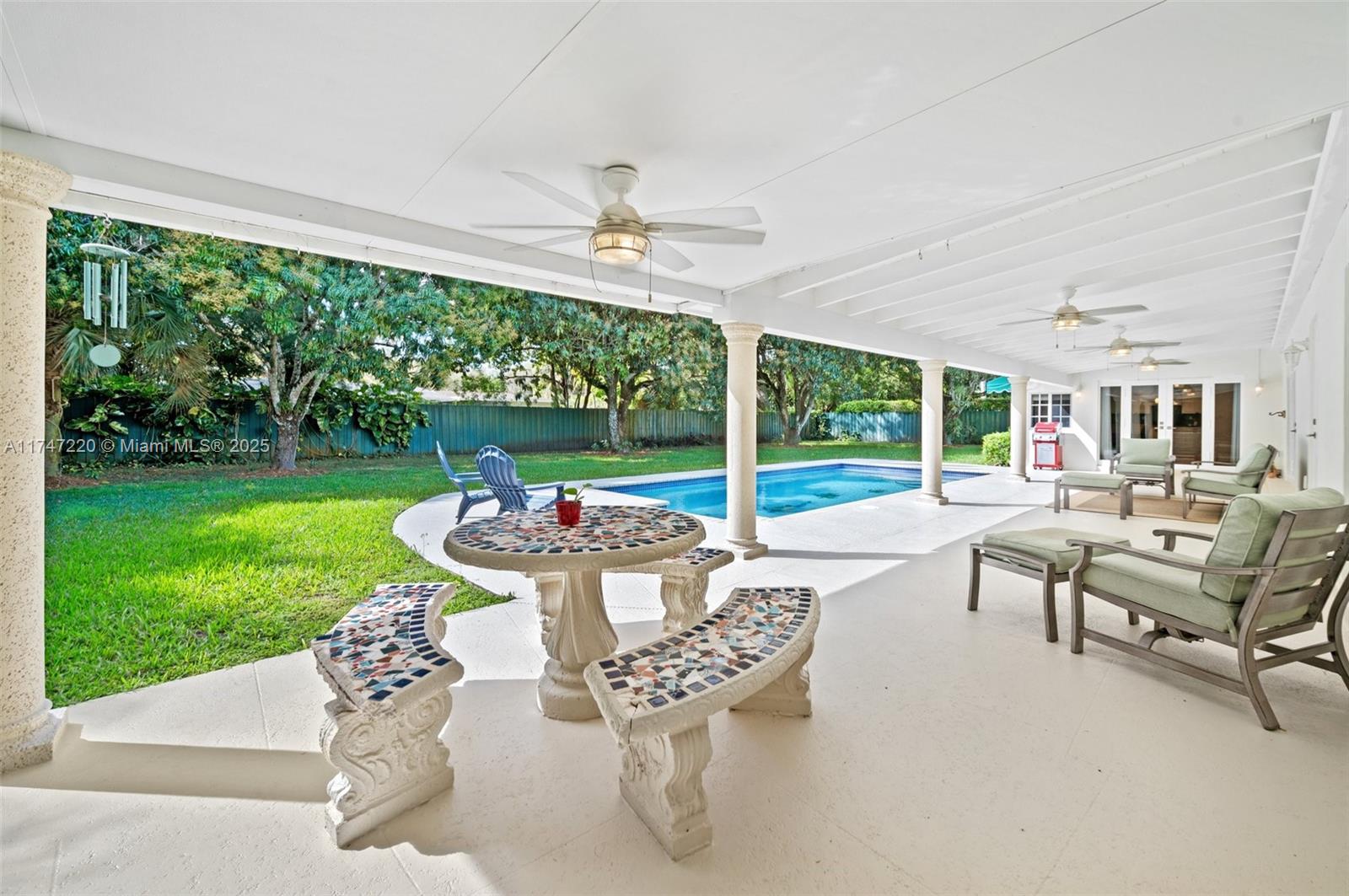 Accepting Back-up Offers. This rambling split-plan Pinecrest retreat is set on a quiet street close to Palmetto Elementary, Middle & Senior High Schools. Big spaces w/sloped, airy ceilings wind thru a formal living room, pool-view formal dining room, a family wing that encompasses a giant kitchen w/rare imperial blue granite, a family room & family dining room, opening to a covered terrace overlooking the pool w/mosaic inlays. Beyond unfolds a lush fenced yard filled w/fruit trees and an immense palm privacy screen. Amenity highlights incl. closet built-ins, wood floors, secondary mini-kitchen, 2 laundries, new appliances, generator hook-up, and a circular drive.