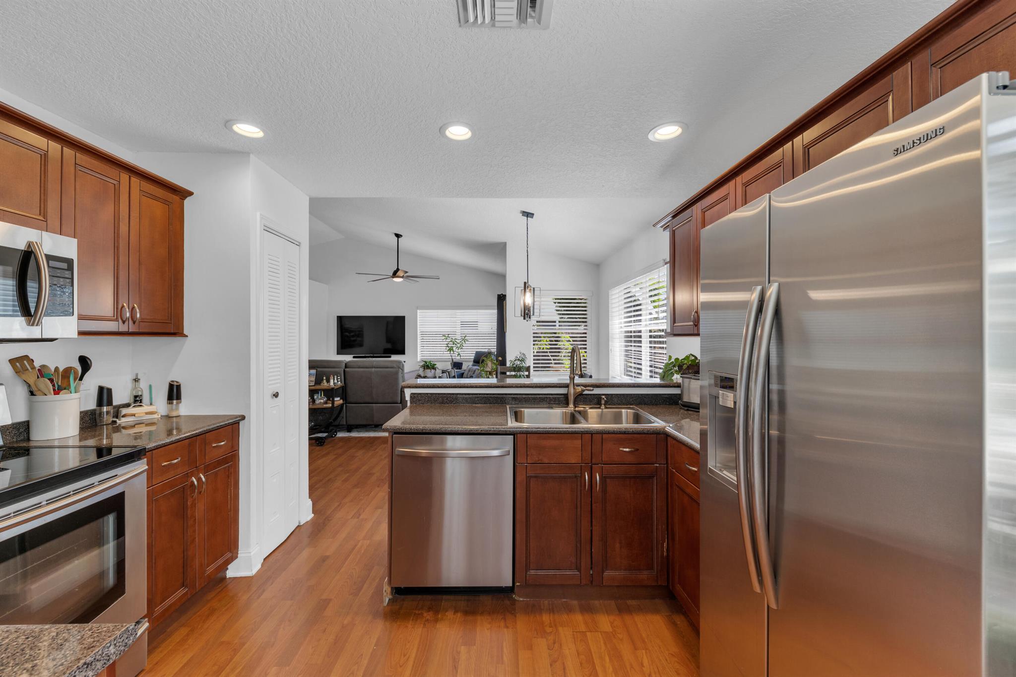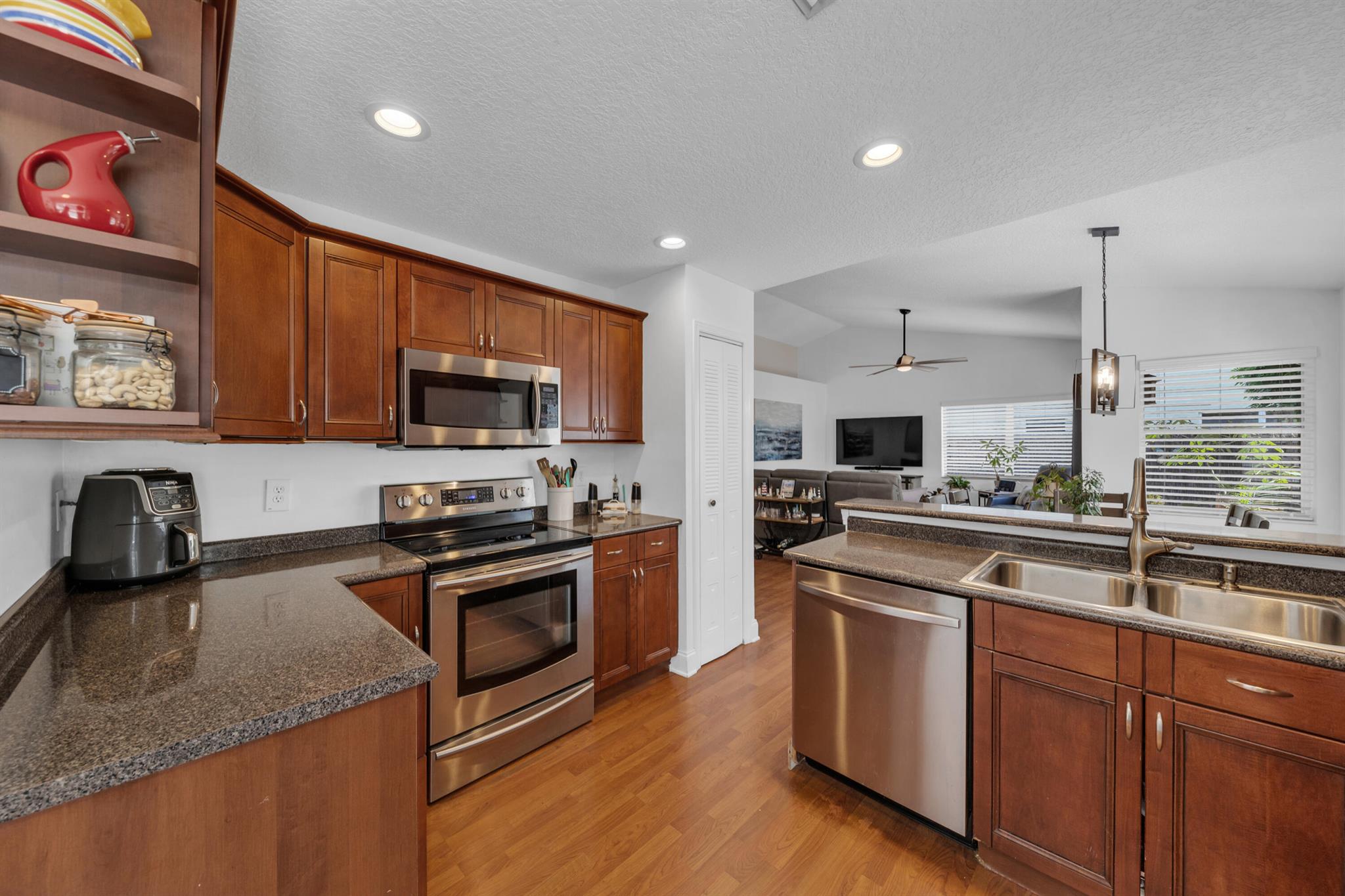 Beautiful 3bed 2 bath home in the sought after Forest Ridge Community of Davie! Home features and open floor plan, Kitchen has stainless-steel appliances, granite counters in bathroom, large primary bedroom with a remodeled primary bath, dual sinks and large shower, indoor laundry, updated flooring thru out the home. Step outside to your private backyard oasis--perfect for outdoor entertaining! Neighborhood has its own pool. Community amenities include- a pool, tennis, basketball, and pickleball courts.Easy access to the ridge walking trails leading to Tree Tops Park. Conveniently located near highways, restaurants, shopping and 15 minutes from Ft Lauderdale Airport and the beach!