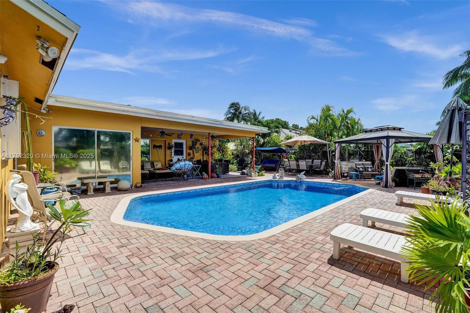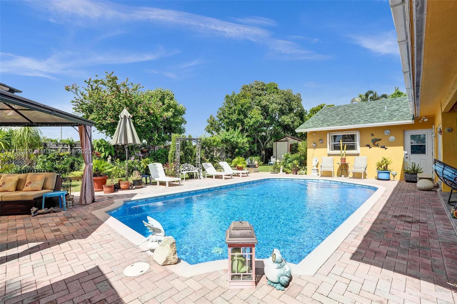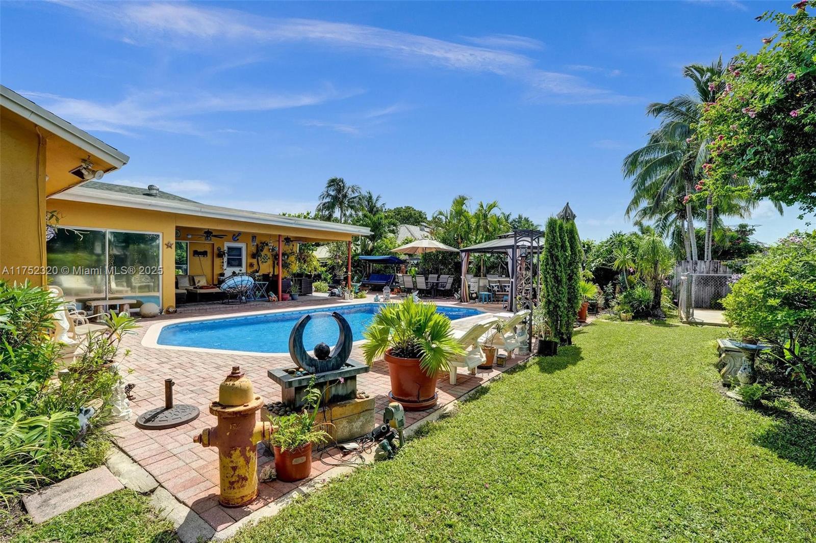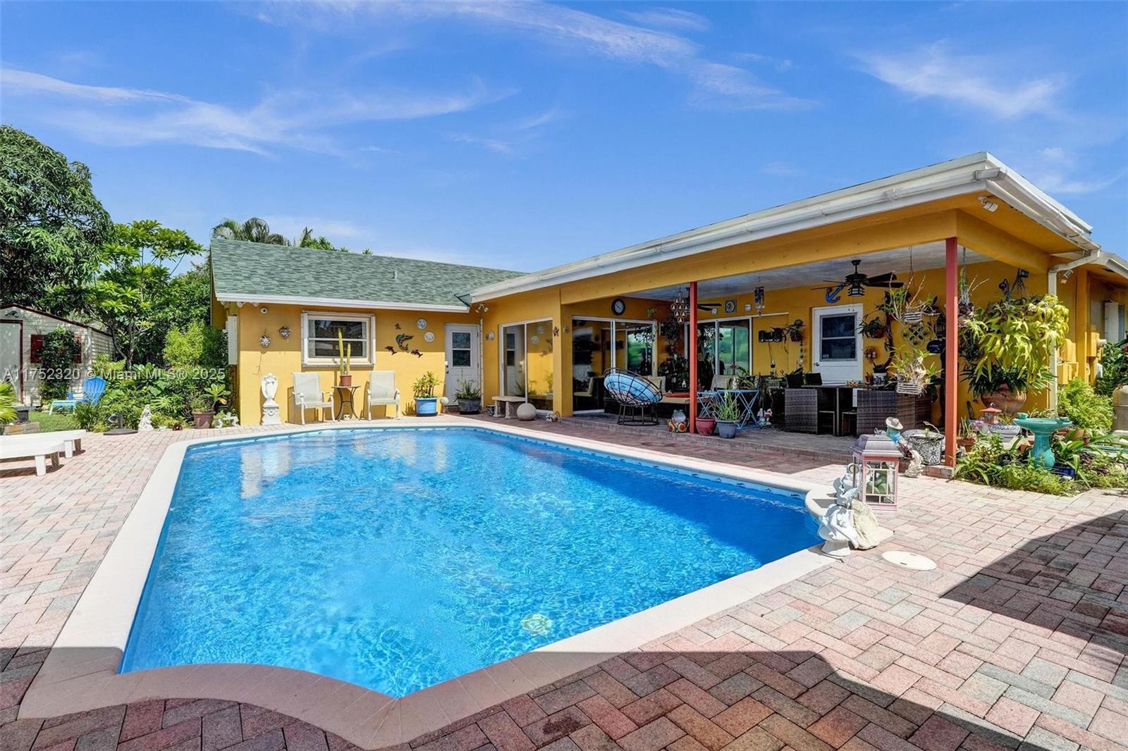This home is pure Florida paradise! You're at the heart of everything just 15 minutes from Dania Pier, where the action is, and 13 minutes from Fort Lauderdale Airport. But the real magic? The backyard oasis, an oversized pool, multiple entertainment areas, and a lush green space with breathtaking waterfront canal views. The spacious layout makes it easy to welcome guests, with seamless indoor-outdoor flow and plenty of room to create memories. Plus, no HOA means no restrictions, so you can make this home your own. The circular driveway provides ample parking, and the brand-new roof (2022) ensures peace of mind for years. Need extra storage? A large shed is perfect for all your equipment or hobby gear. This is the ultimate Florida dream home—don’t miss your chance to make it yours!