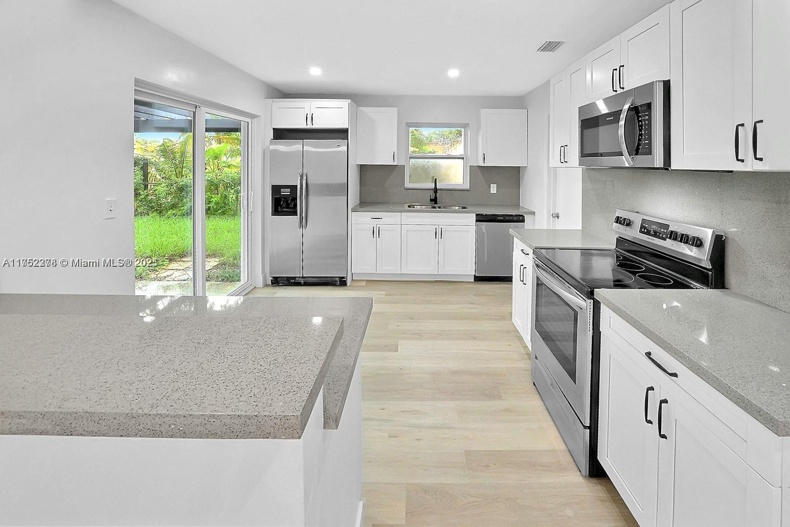 This beautiful 3-bedroom, 2-bathroom home in Pembroke Pines offers 1,612 square feet of spacious living space and has been newly renovated with a luxurious, modern design. The bright, inviting interior boasts fresh paint, impact windows, recessed lighting, updated fixtures, and elegant plank flooring throughout. Ideal for entertaining, the kitchen and living areas seamlessly connect to the expansive fenced backyard. Plus, there’s no HOA