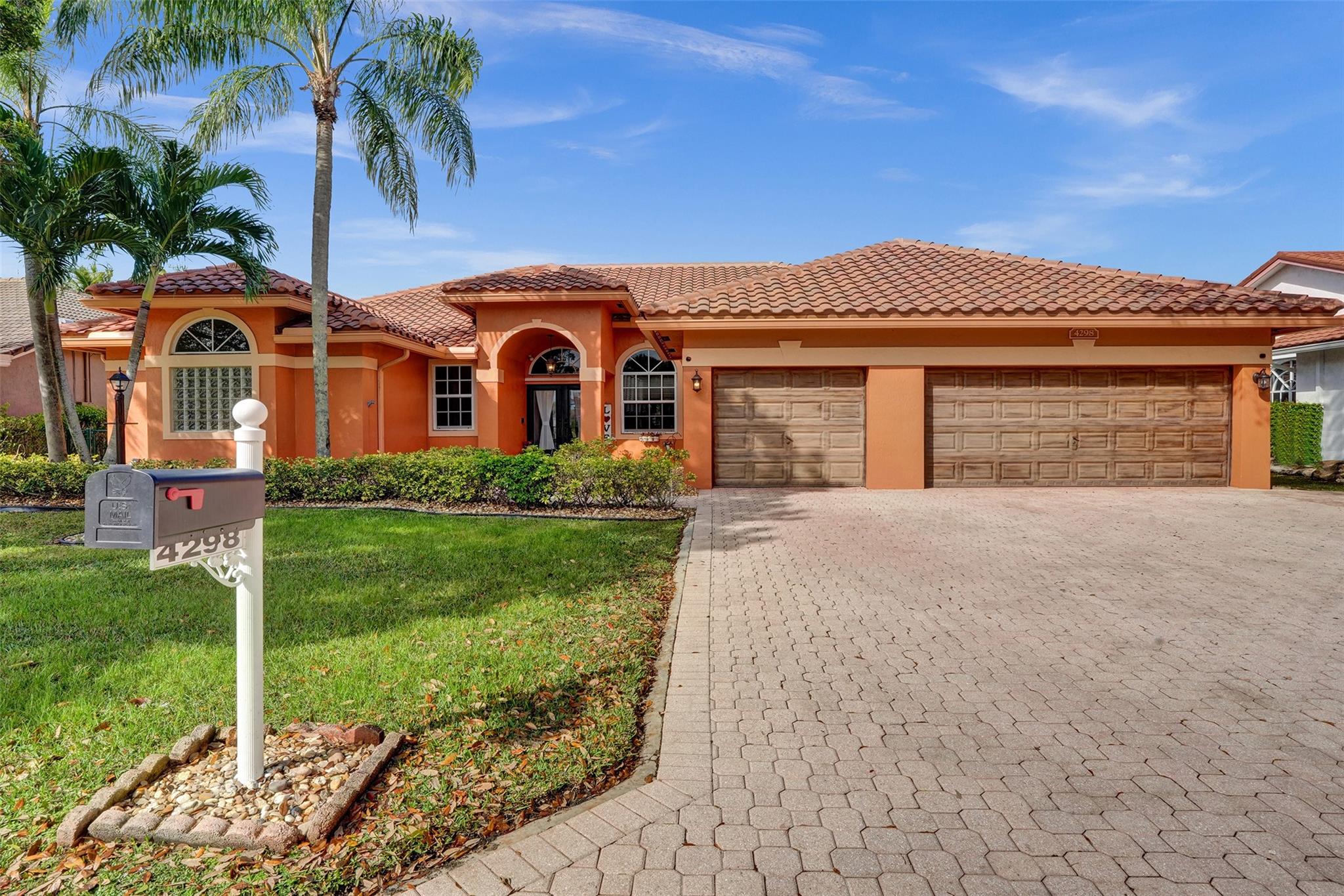Experience Luxury Living In Carriage Pointe Estates! This Stunning Triple-Split 4Bed, 3Bath Home Includes A Bonus/Flex Rm & 3-Car Garage w/ EV Charger On An Oversized Lot w/ Breathtaking Lake Views! Savor The Sunset Landscape From Your Expansive Lanai, Take A Refreshing Dip In The Sparkling Pool Or Relax In The Spa. Designer Kitchen Features Large Undermount Sink, Deep Pots/Pans Drawers & Pull Outs, Spacious Pantry, LG Double Oven, Fridge & Microwave. Primary Suite Features Westward Views Through French Doors, Two Closets, En-Suite w/ Double Vanities, Shower Fit For A King w/ Sitting Ledge, Waterfall & Wand Shower Heads. Plantation Shutters & Charming Farmhouse Accents Elevate This Home’s Timeless Appeal. 24hr Manned Gate, Storm Protection, Low HOI & A 5Yr-Young Roof Provide Peace Of Mind.