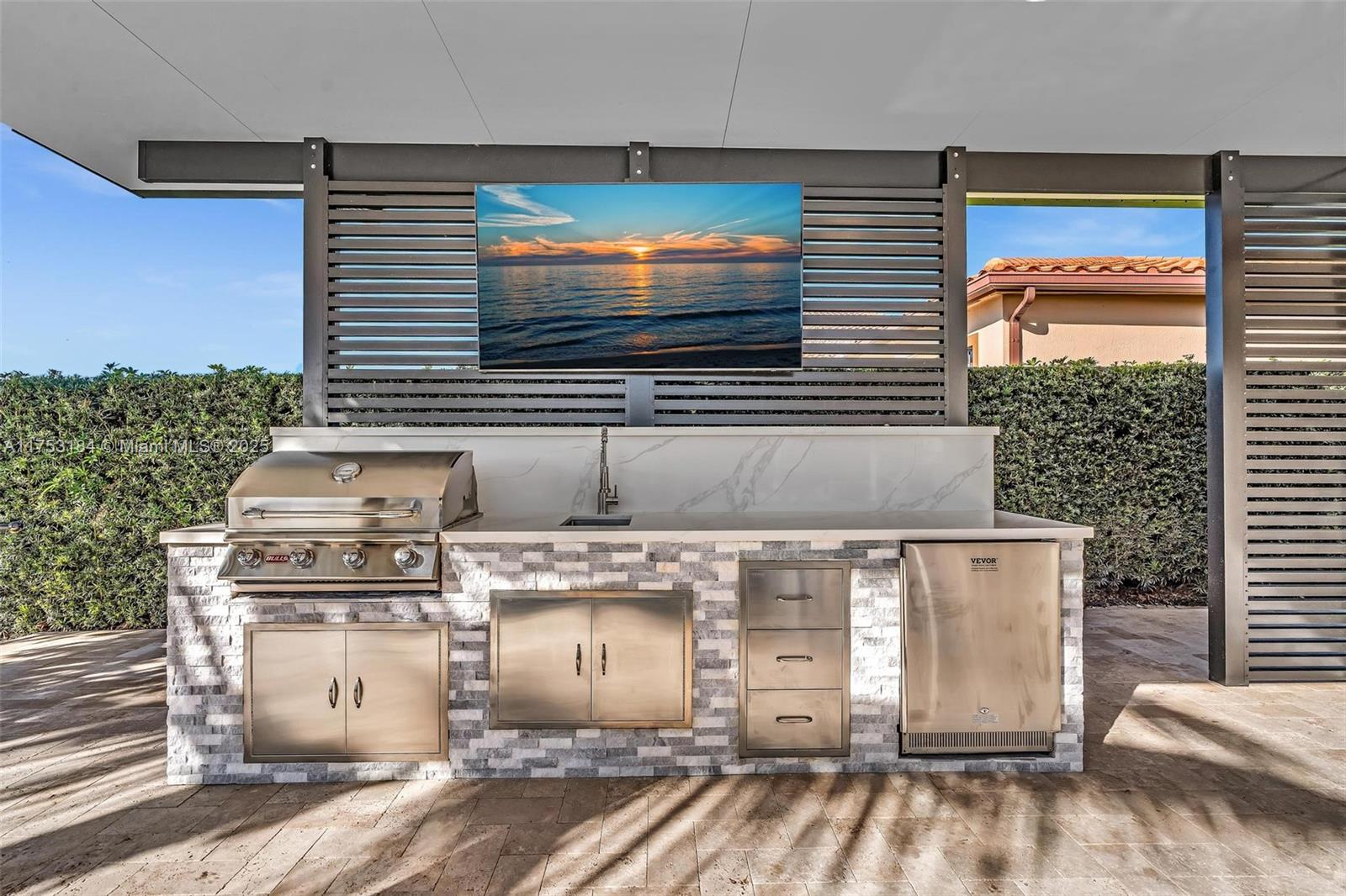 RARELY AVAILABLE VALENCIA MODEL ON OVERSIZED WIDE LAKE LOT IN MOST SOUGHT-AFTER ESTADA AT MONTERRA. YOU WILL LOVE ENTERTAINING IN THE AMAZING BACKYARD W/ HEATED POOL & JACUZZI, LARGE COVERED PATIO W/ OUTDOOR KITCHEN & 2 TV'S * 1ST FLOOR FEATURES A GOURMET KITCHEN W/ LARGE CENTER ISLAND OPEN TO GREAT ROOM, 2 BEDROOMS, 1.5 BATHS. 2ND FLOOR FEATURES 3 BEDROOMS, 3 BATHROOMS, AND SMALL LOFT AREA. OTHER FEATURES: FULLY FENCED YARD, IMPACT GLASS WINDOWS AND DOORS. WOOD FLOORS ON STAIRS & 2ND FLOOR. LOW HOA FEE INCLUDES 24-HR SECURITY GUARD, XFINITY CABLE, INTERNET & HBO, ADT ALARM MONITORING. CLOSE TO COOPER CITY'S A-RATED SCHOOLS, POSNACK JEWISH SCHOOL, JCC, HIGHWAYS, SHOPPING. HURRY TO SEE THIS ONE TODAY!!
