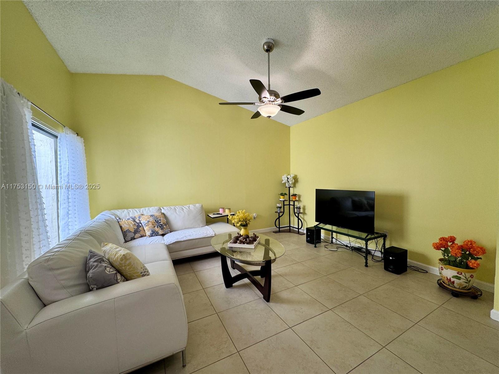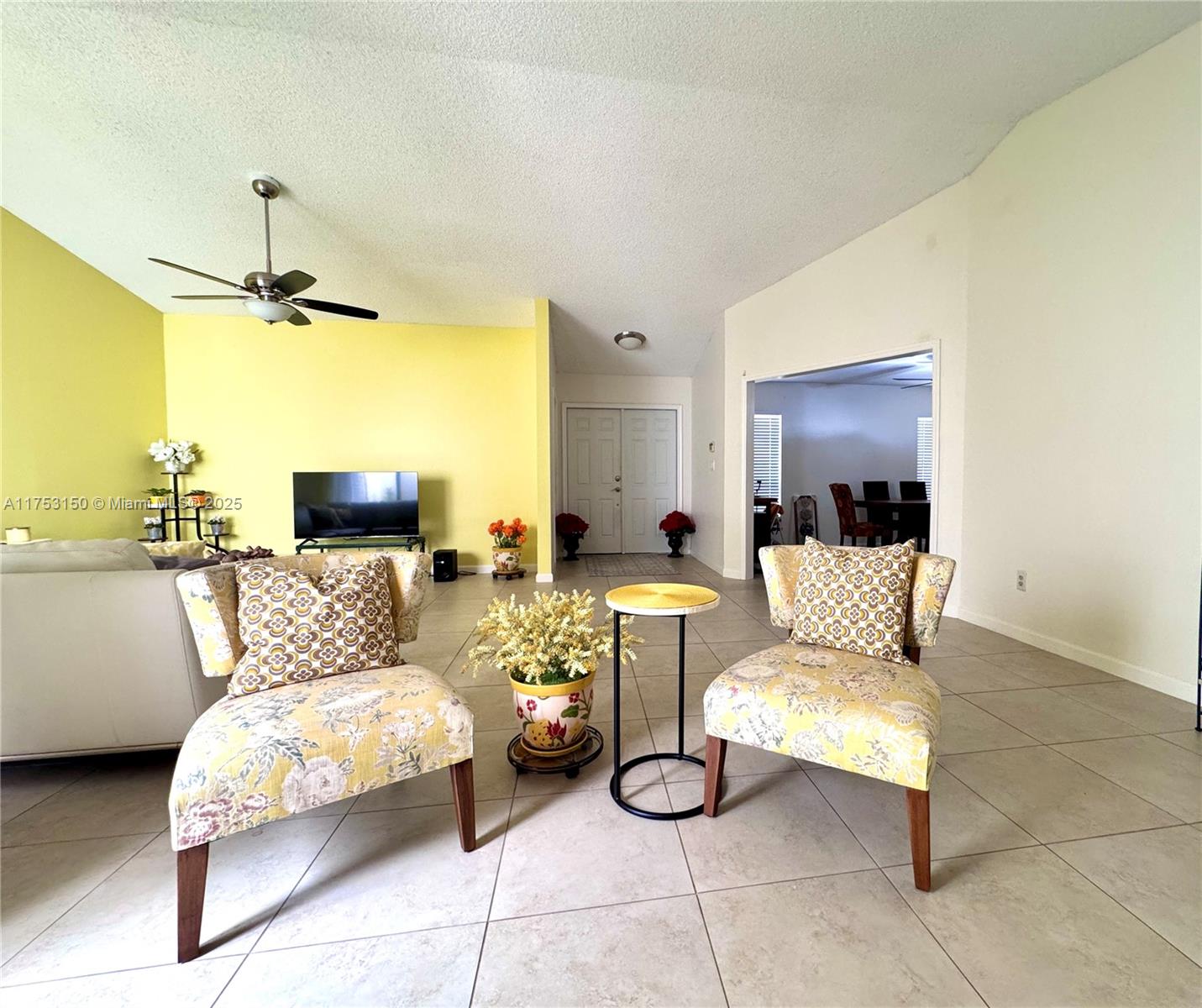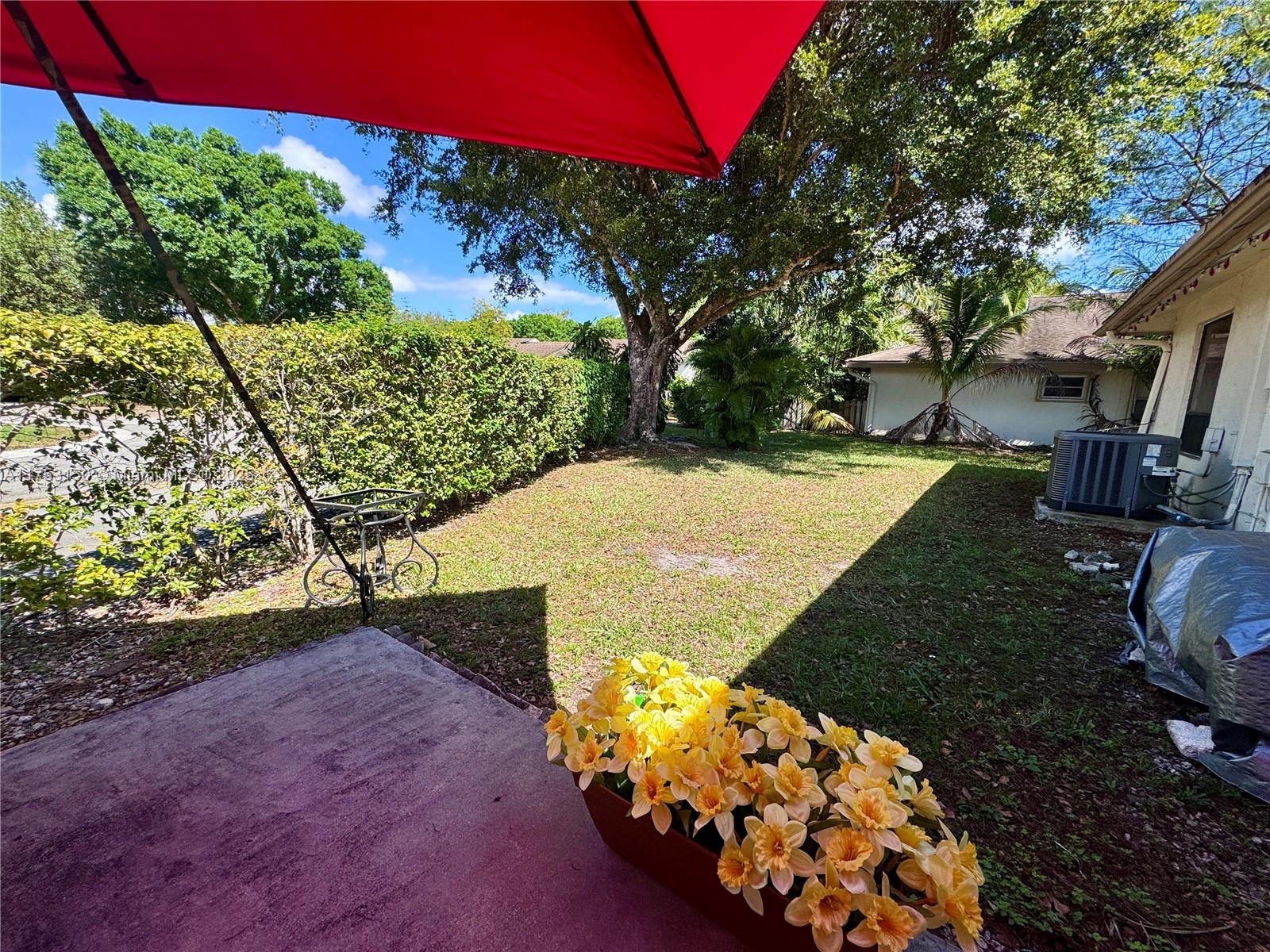 Beautiful house with large corner lot that provides plenty of light, has 3 bedrooms, two full bathrooms, the entire floor of the house is ceramic tile, updated kitchen with stainless steel appliances, wood cabinets with granite countertops, the master suite overlooks the garden and has a large walk-in closet, the other two bedrooms share a bathroom. The air conditioning has the UV Air Purifier/filter, vaulted ceilings that give a feeling of spaciousness and brightness, lots of windows and three sliding doors. One car garage with air condition, two additional parking spaces in front of the house, a side porch, and you will find many visitor parking lots in this community. The low HOA fee includes lawn maintenance, outdoor common areas, and tennis court. The property is being sold AS IS.