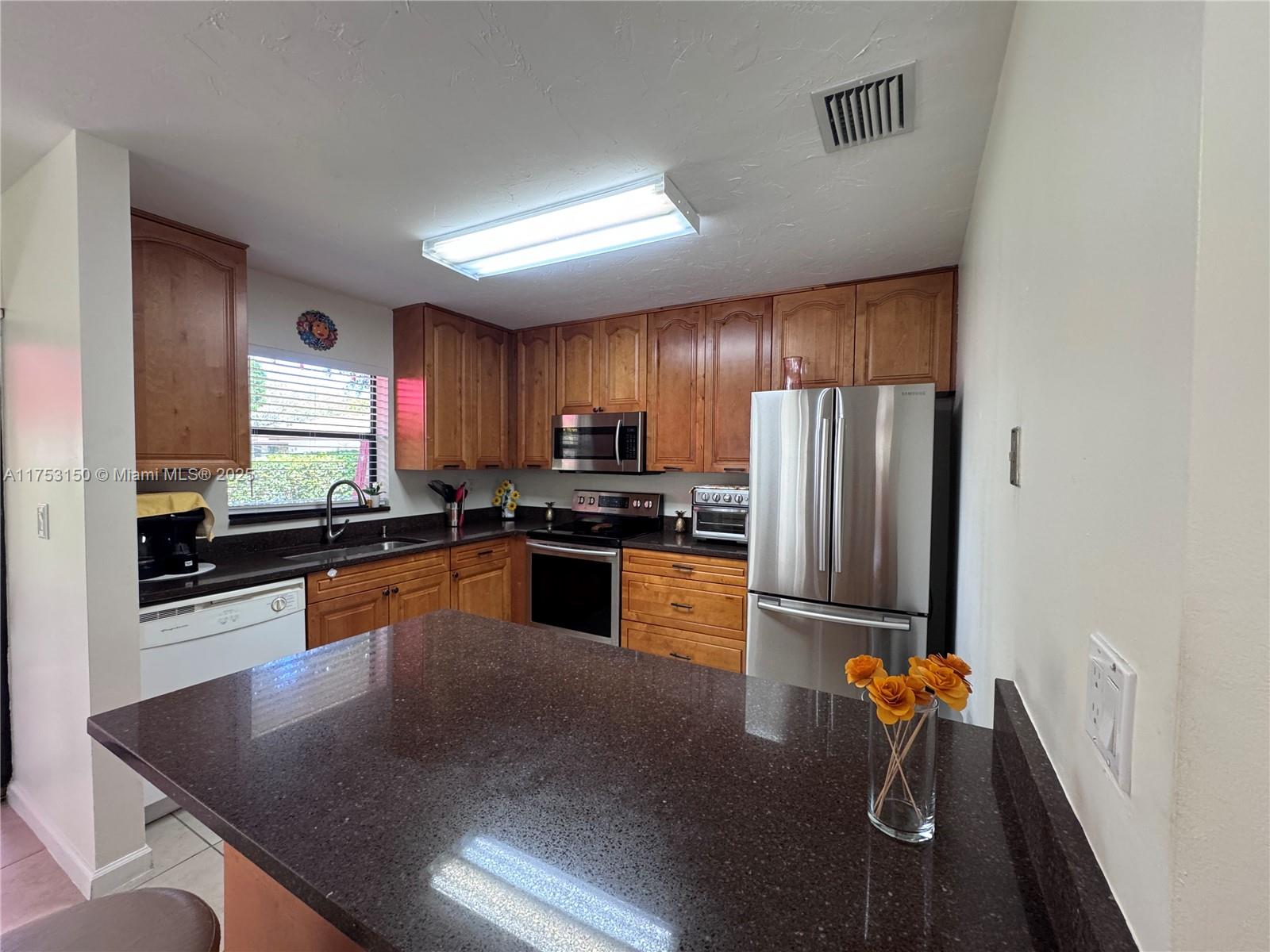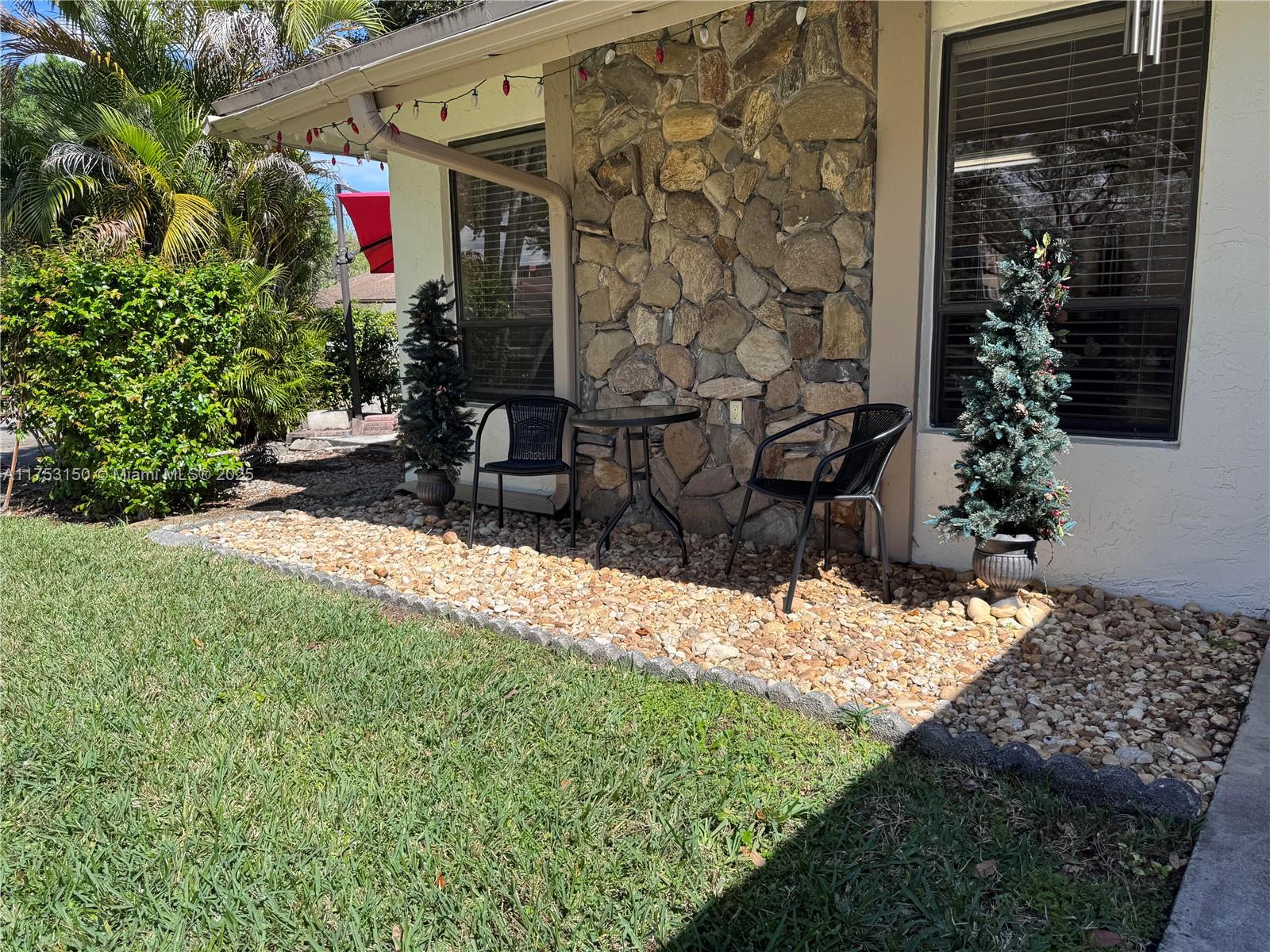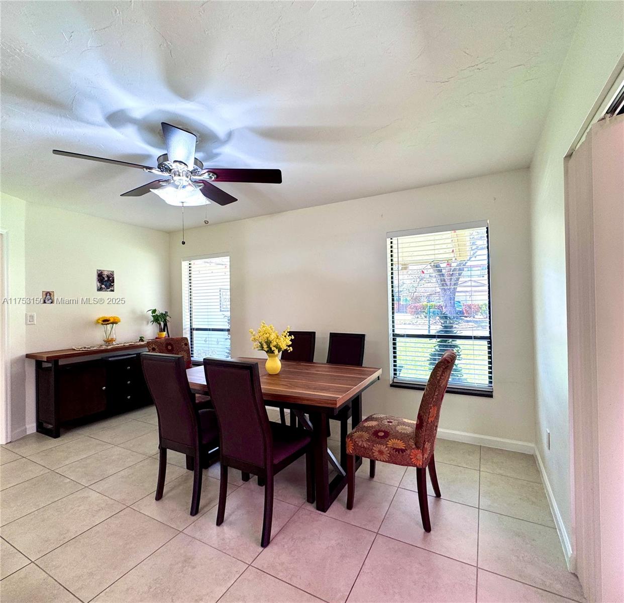 Beautiful house with large corner lot that provides plenty of light, has 3 bedrooms, two full bathrooms, the entire floor of the house is ceramic tile, updated kitchen with stainless steel appliances, wood cabinets with granite countertops, the master suite overlooks the garden and has a large walk-in closet, the other two bedrooms share a bathroom. The air conditioning has the UV Air Purifier/filter, vaulted ceilings that give a feeling of spaciousness and brightness, lots of windows and three sliding doors. One car garage with air condition, two additional parking spaces in front of the house, a side porch, and you will find many visitor parking lots in this community. The low HOA fee includes lawn maintenance, outdoor common areas, and tennis court. The property is being sold AS IS.
