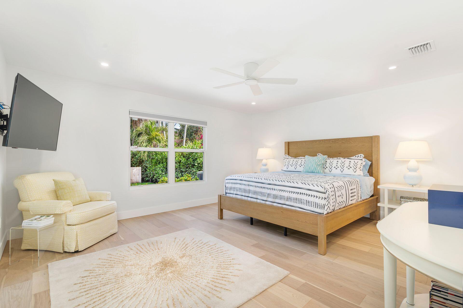 True Florida Bungalow in the Heart of Historic Flamingo Park! Spectacularly renovated to combine modern amenities with 'Old Florida' charm. Situated on an elevated lot, a welcoming front porch opens to a light filled living room with original fireplace. Wide-plank floors throughout, impact windows and doors! Gorgeous kitchen with quartz counters, prep island with sink, abundant cabinetry, gas range & high vaulted ceilings extending over dining area. Large primary bedroom opens to porch. Bright bath, dual vanities & oversized shower. 2 guest bedrooms with en suite baths. Large covered porch with cabana bath, New pool surrounded by greenery for the utmost private outdoor experience. 1 car garage with pull down stairs to attic. Brick paver drive and walkways. Close to everything downtown WPB