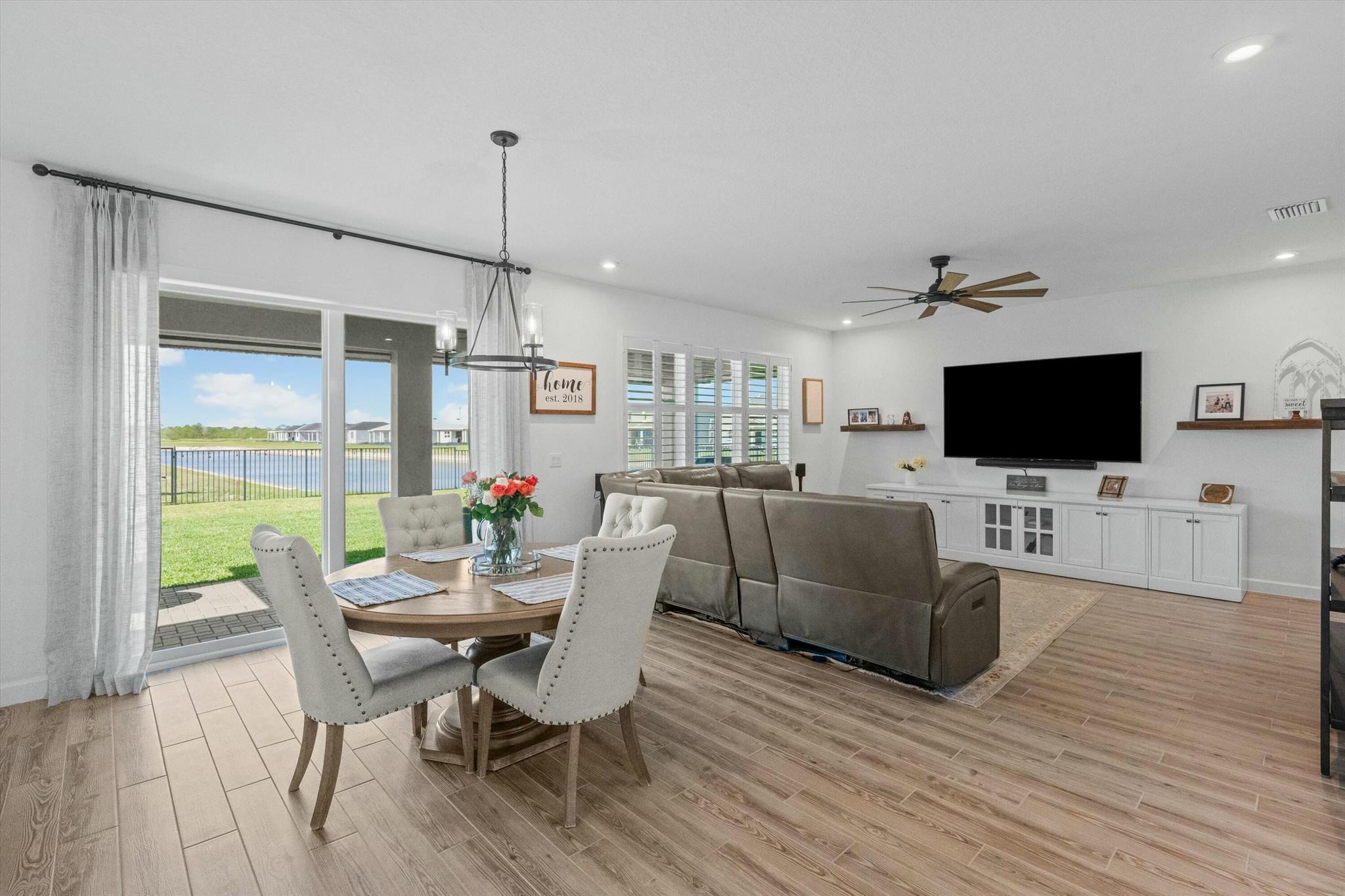 Welcome to your dream home in the heart of Port St. Lucie, Florida! This stunning two-story residence boasts 2,582 square feet of beautifully designed living space, offering the perfect blend of elegance and comfort. Fully fenced and features a motorized screen patio!The exterior captivates with its vibrant blue facade, complemented by lush landscaping and a spacious two-car garage. Step inside to be greeted by a bright and airy open floor plan. The living area is impeccably designed for entertaining, featuring sleek wood-look tile flooring and expansive windows that bathe the room in natural light.