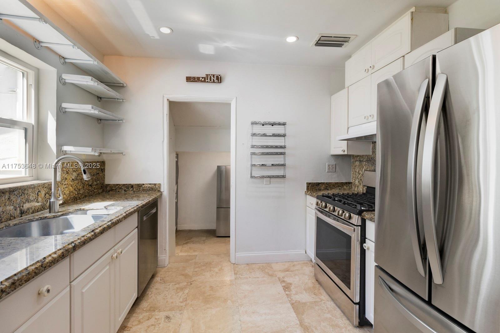 Charming 1930s home with character and some updates! This cozy residence boasts vaulted ceilings and a beautiful fireplace in the living room, paired with original oak floors that showcase its timeless charm. With 2 bedrooms and 2 baths on one side of the house and a converted garage and bath on the other, this home offers a flexible layout. This home also offers impact windows and a newer roof, ensuring peace of mind for years to come. The property also features a detached CBS boat garage in the back, which could be removed to expand the yard or retained as a functional art studio or office space. The possibilities are endless with this unique and charming home!