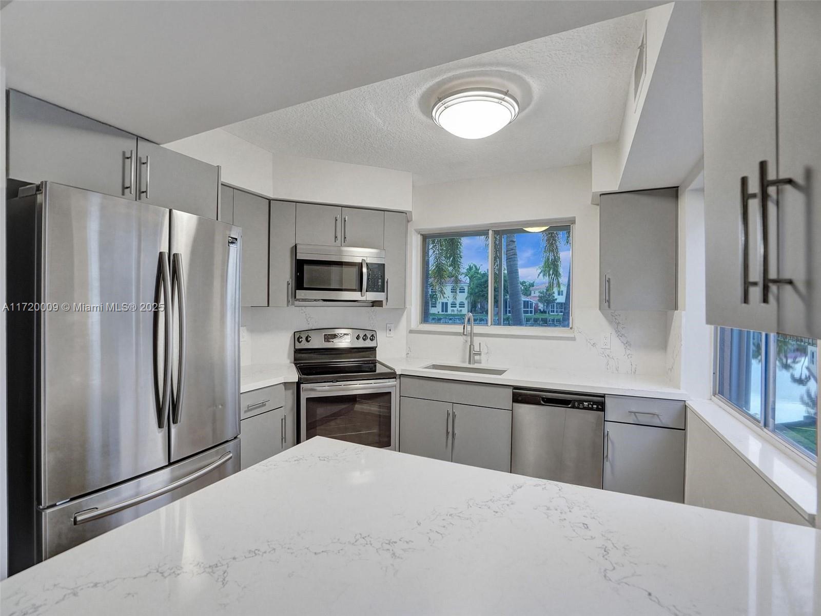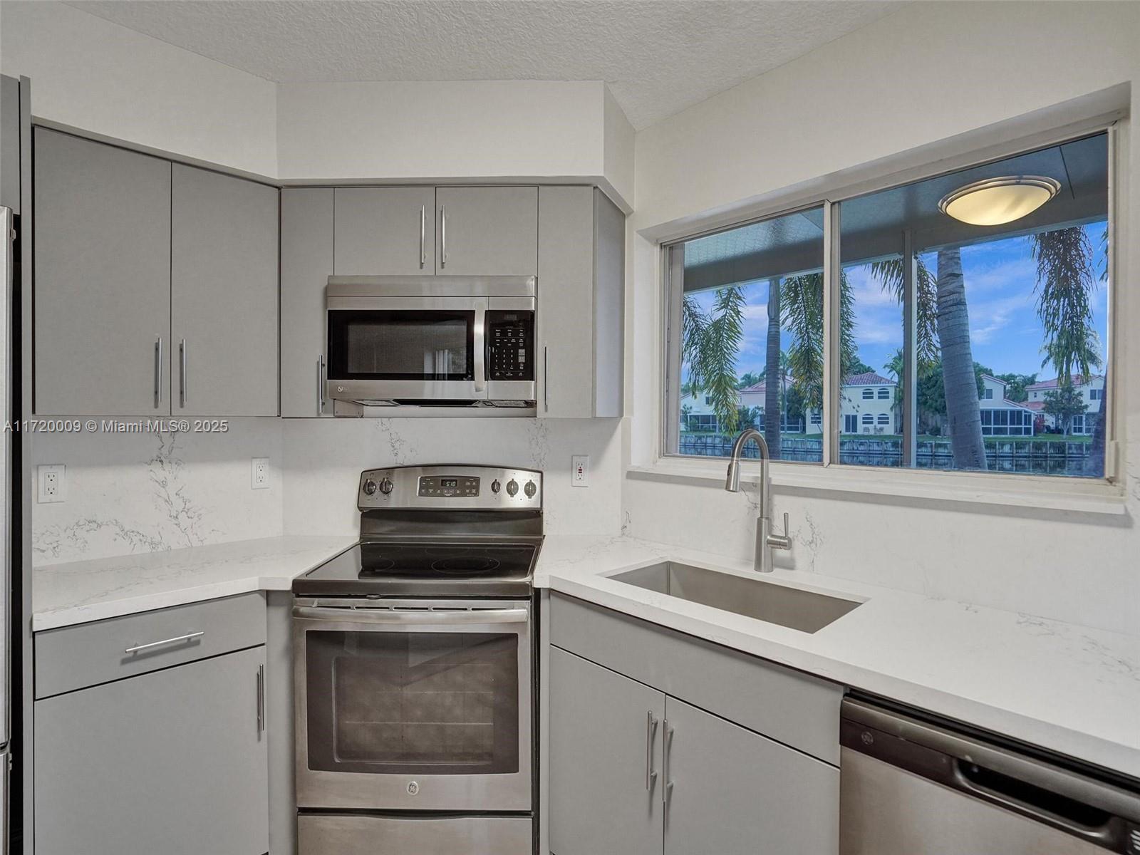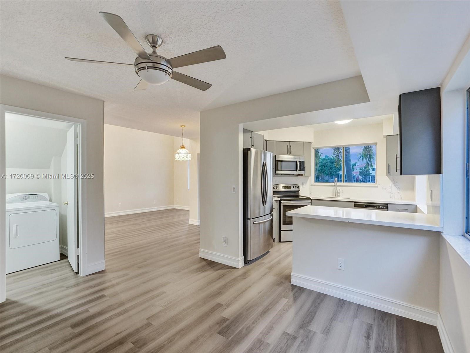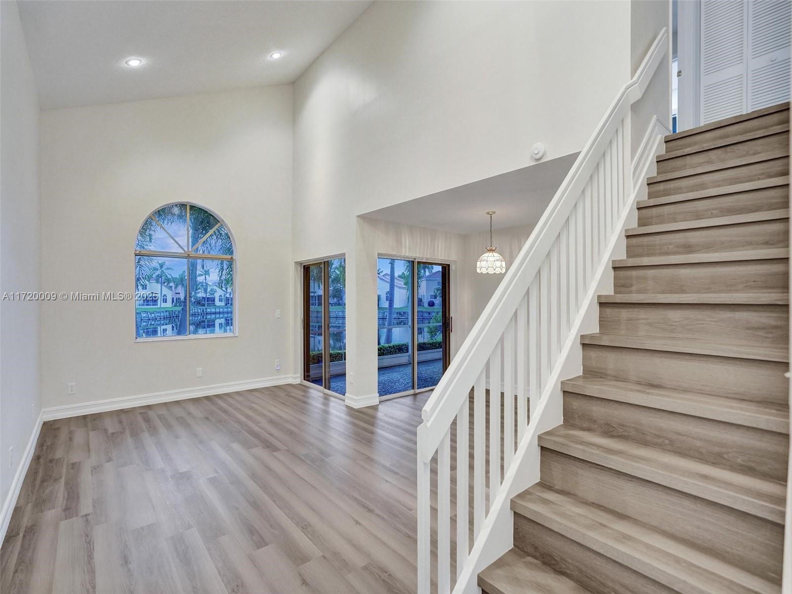 Rarely available waterfront 2-story, well-maintained home, largest floor plan, 2-car garage, located on the widest part of the lake. Open kitchen with a breathtaking lake view, ss appliances. Master bedroom overlooking the lake, dedicated laundry room, spacious screened patio with lavish landscaping, newly installed wood floors, vaulted ceilings, freshly painted, new AC (2022) and water heater (2019), lots of natural light, the home is ready for move-in! Highly desirable boutique, pet-friendly and well-managed gated community with low maintenance fee, has a community pool. Just minutes away from the beach, West Lake Park & Ann Kolb Nature Center. Conveniently situated east of US1, around the corner from the newly-built Dania Pointe, featuring the finest dining, shopping & entertainment.