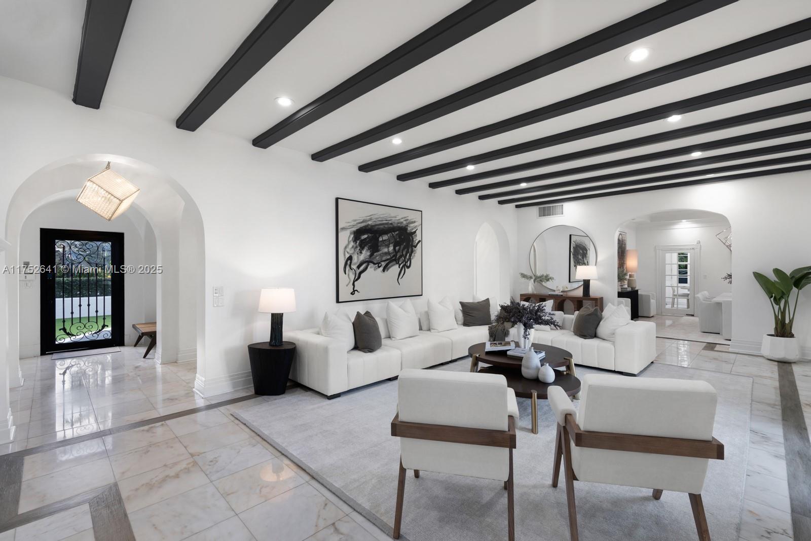 Rare gem on Flamingo Drive—an exquisitely reimagined 7-bed/6.5-bath Spanish Colonial estate blending timeless elegance with modern luxury. Waterfront views and Italian marble floors set the stage for refined living, while the grand living room with fireplace exudes old-world charm. The gourmet kitchen and sunlit family room are inviting spaces for gatherings. Primary suite boasts a spa-inspired bath, deep walk-in closet, and balcony. Designed for relaxation with a fitness center, extra-deep pool, cold plunge and dry sauna along 100' of waterfront. Walking distance to houses of worship, schools and beaches. World-class shopping in, the electric culture of South Beach, and a diverse culinary scene are all just moments away. Prime access to top-rated schools and family-friendly activities.