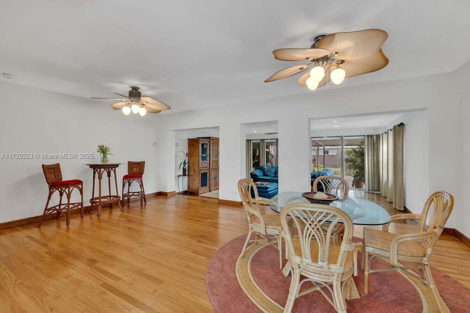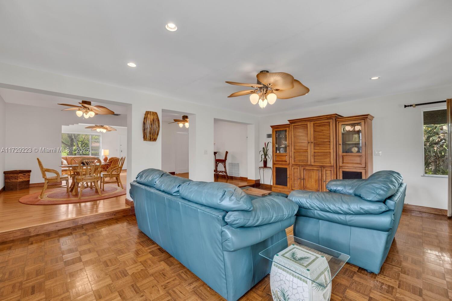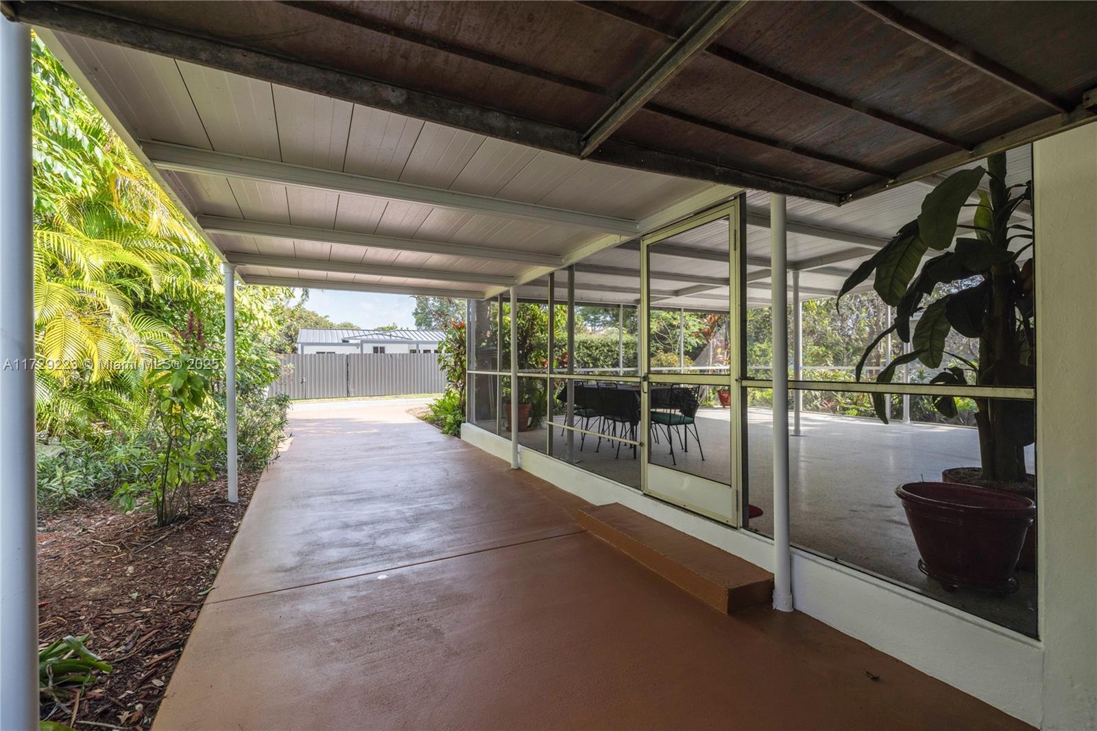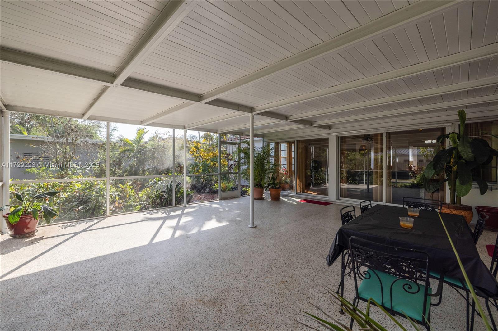 Welcome Home! Wow...what a great place to entertain! Be ready for everyone to come to your house! Big spacious rooms opening one into another times 4! Move right in and 'make it your own' along the way! The kitchen is spacious, white and bright with lots of storage. The garage is clean as a whistle and extends to a covered carport and continued with a long back driveway.....have a need for lots of parking or cars? This is a good choice! The wood floors are gleaming and the family room also leads into a HUGE terrazzo floor screened in patio - a good place to play and relax in any weather. Room for a swimming pool. Primary bedroom has a bathroom ensuite. Located in a special area of Miami Shores with quiet, cul-de-sac streets. Easy to see.
