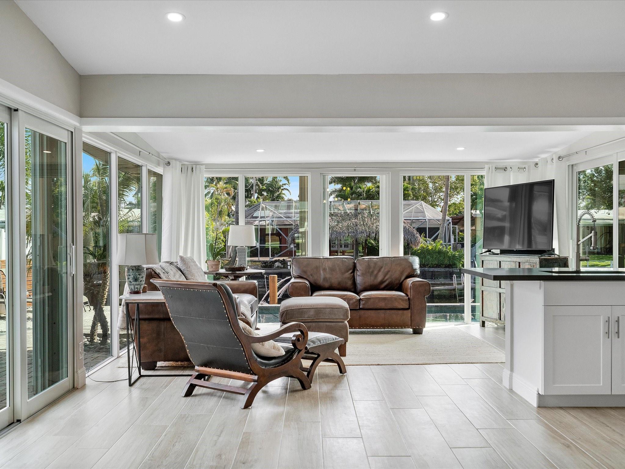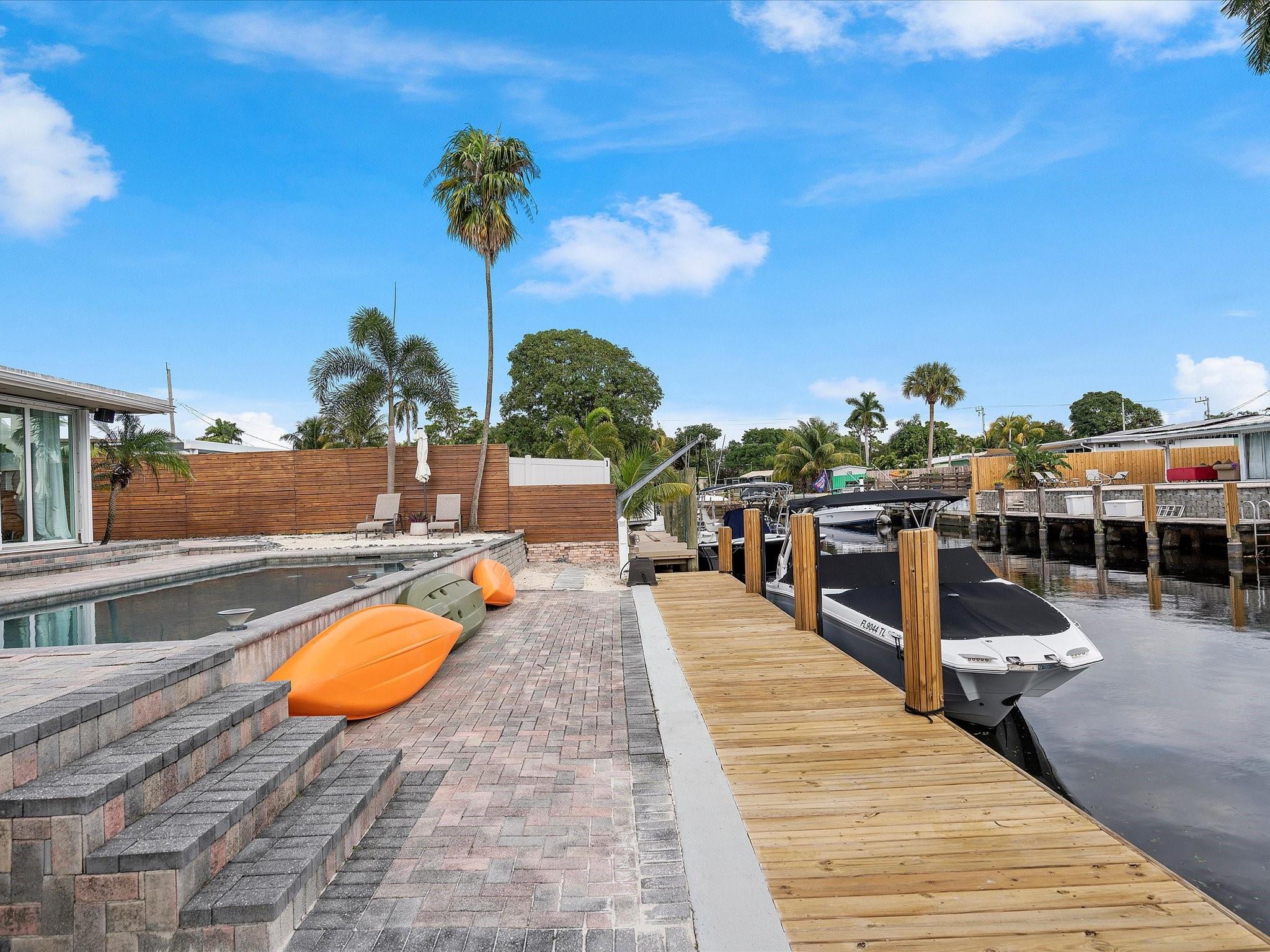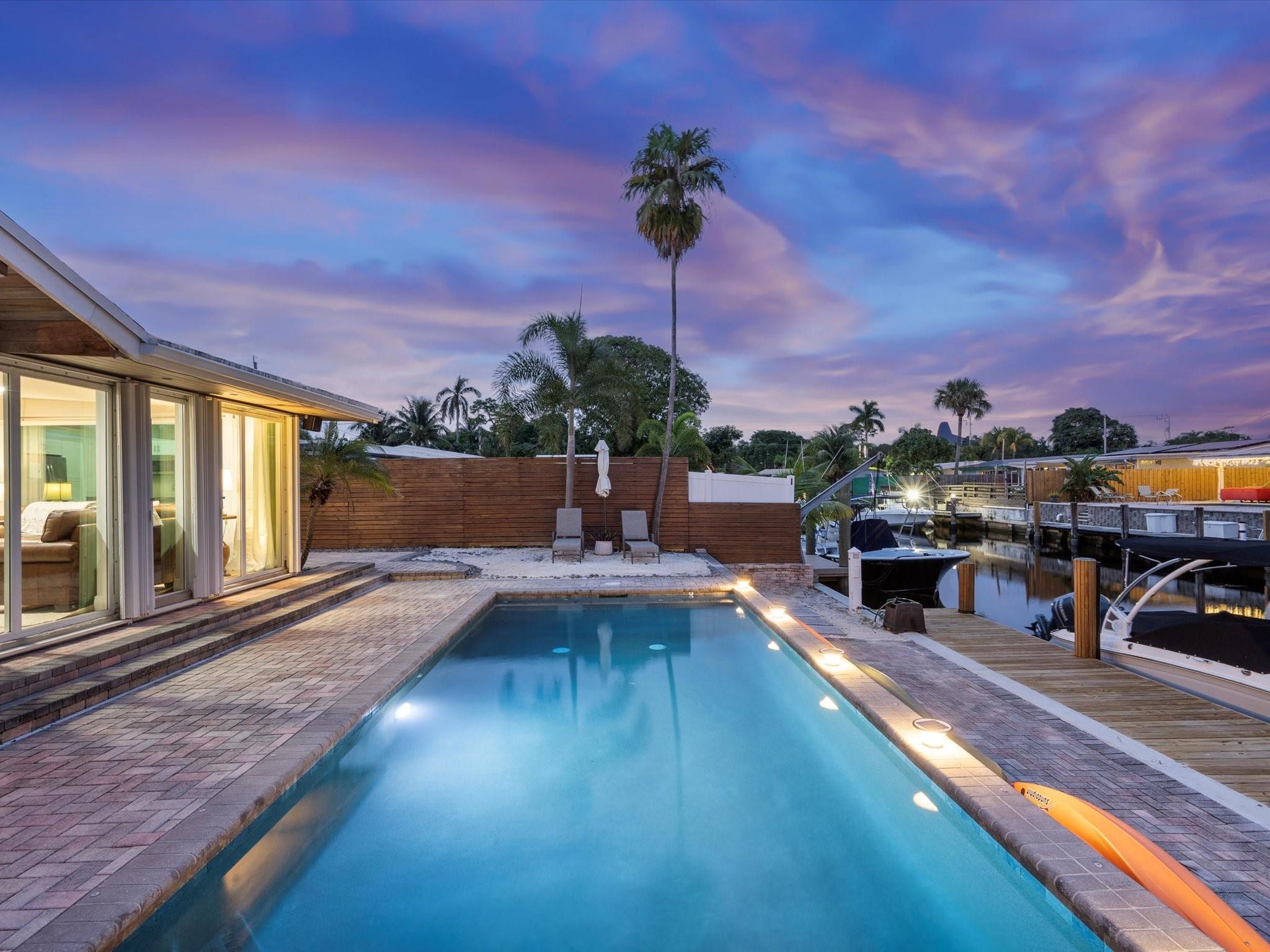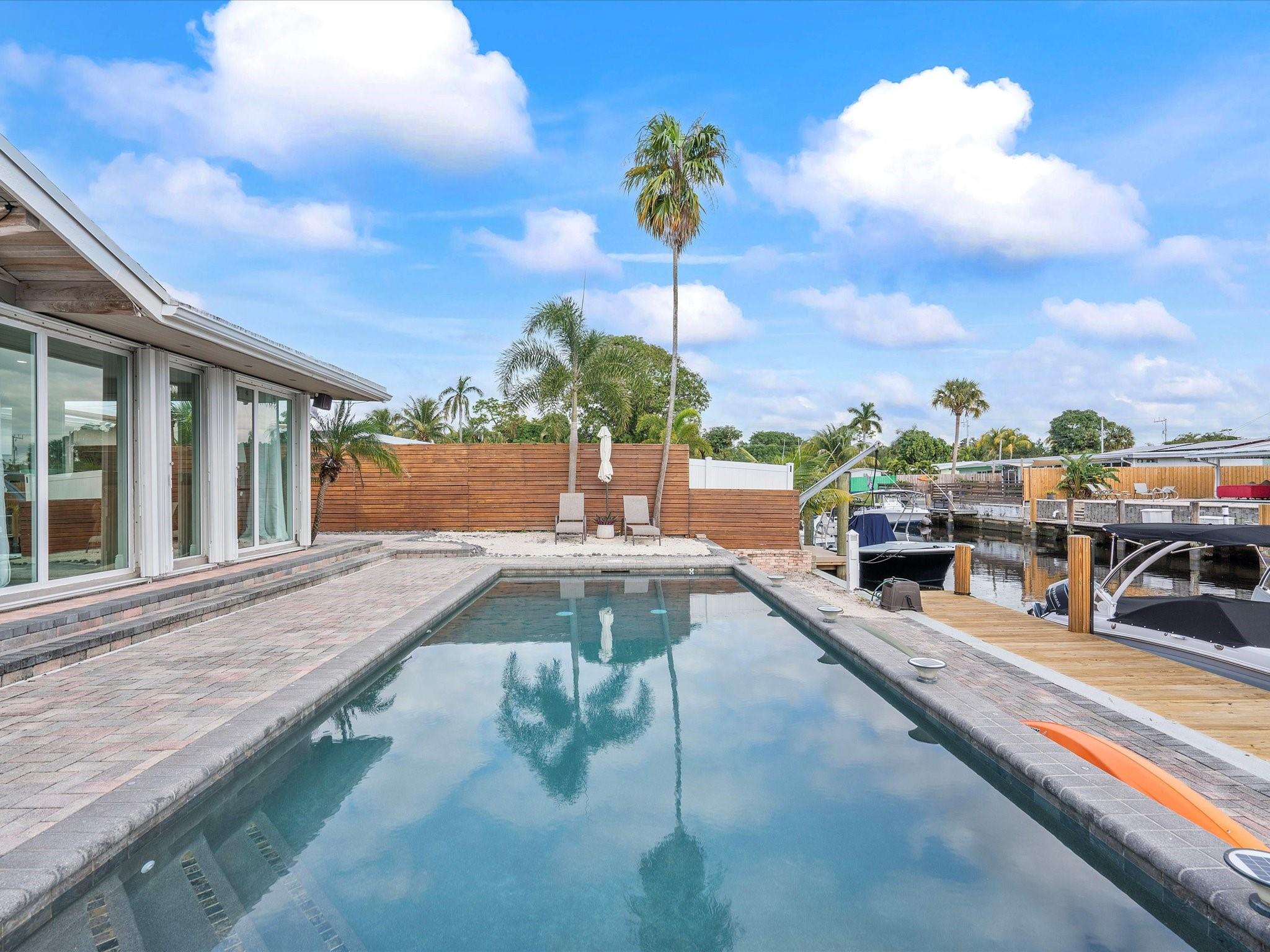 Come see the new roof on this Light-filled 3 Bedroom 2 Bath home with Pool in the highly sought-after Lauderdale Isles. At this Waterfront bungalow, you'll have 60 feet of waterfrontage and Deep Water Ocean Access WITH No Fixed bridges! This renovated beauty features Impact Windows/Doors/Sliders, tile flooring throughout, recessed lighting, remodeled baths, new HVAC, new water heater, & a new dock. The water views from the family room, kitchen and dining room are stunning. The outdoor oasis offers a large covered patio, a second pavered patio to enjoy the sun, saltwater pool w/newer pump, expansive pavered pool decking, and who can live without some sand to sit in while enjoying a beverage while the boats go by? Here you'll be close to the airport, beach, parks and more.