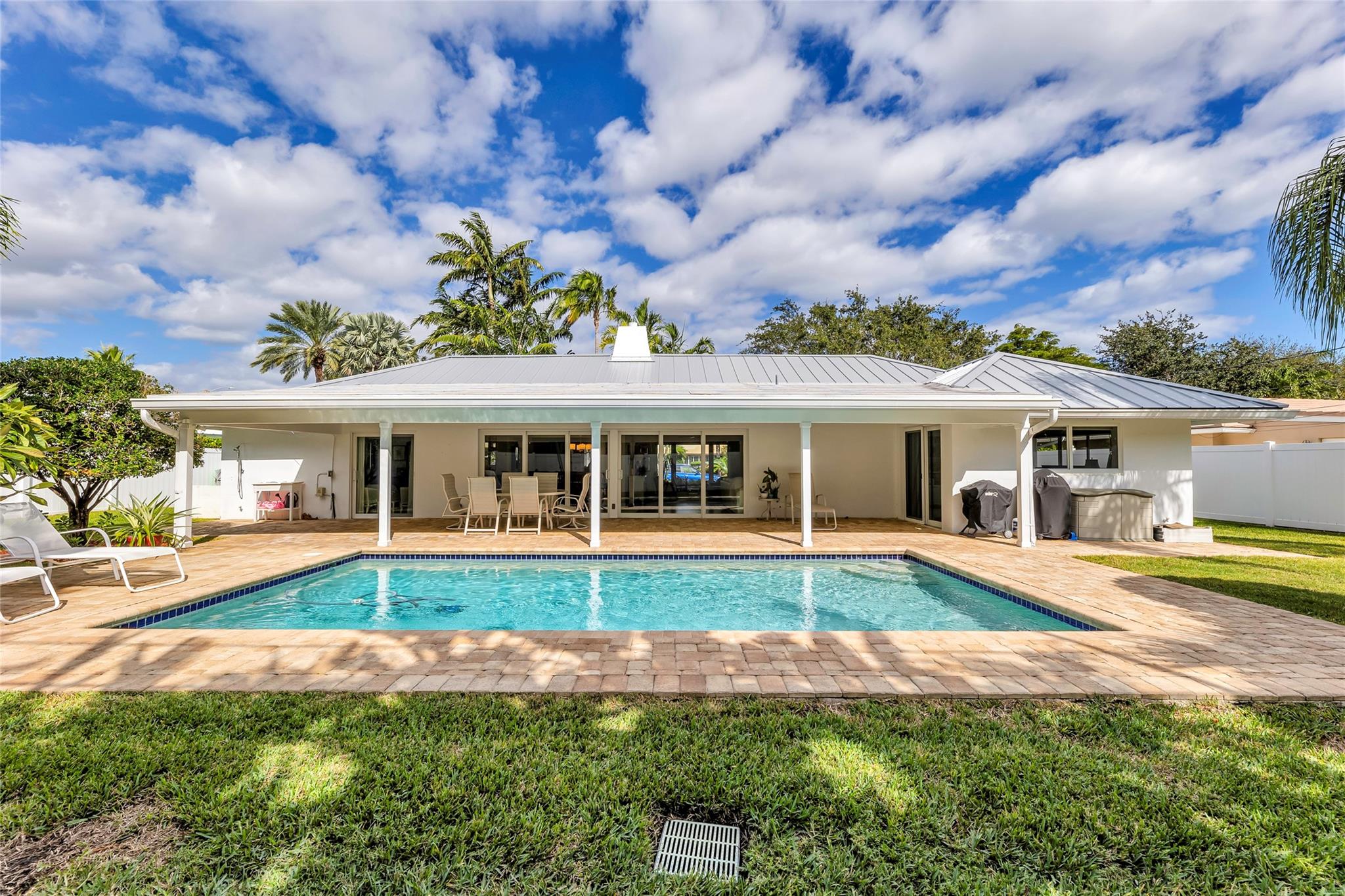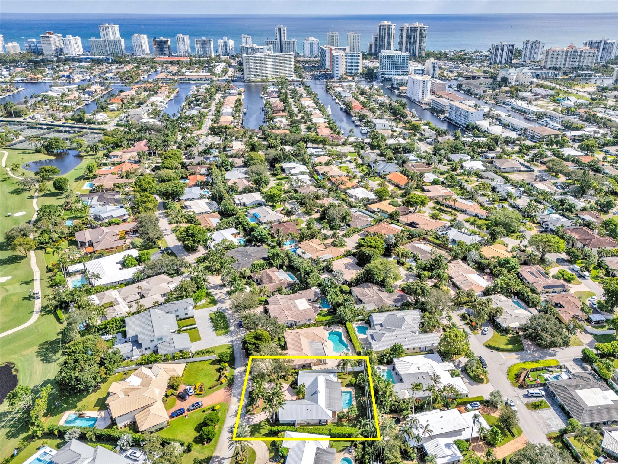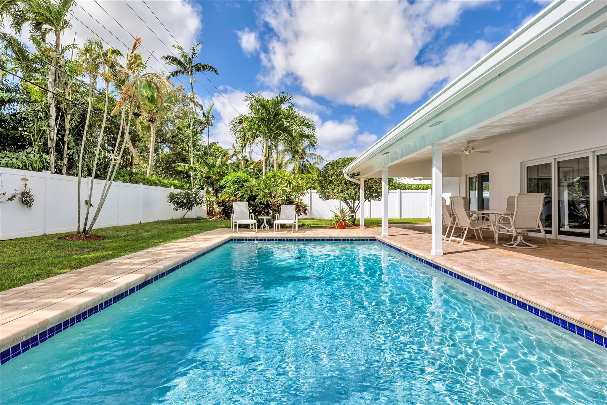 Perfectly located on a premier oversized lot on one of Coral Ridge Country Club's best streets, this island-style 3bed + office/den property boasts a totally optimized floor plan, abundant natural light, and huge bedrooms. Renovated gourmet kitchen features custom cabinetry, Pompeii quartz countertops, new marble splash, gas cooking, abundant storage & new appliances. Enjoy your private outdoor oasis w/heated saltwater pool, huge covered porch, lush landscaping, fruit trees, and 8-foot catering gate! FULL IMPACT WINDOWS & DOORS, 2018 METAL ROOF, oversized 2-car garage w/mini-split A/C for your morning workout complete this gem. Lifestyle & location close to beach, clubs, ICW & everything you love about Fort Lauderdale! Owner/agent.