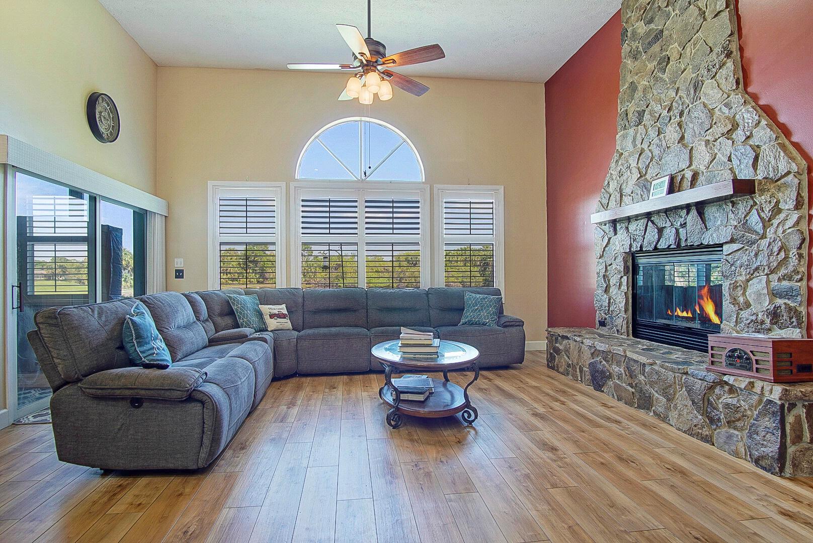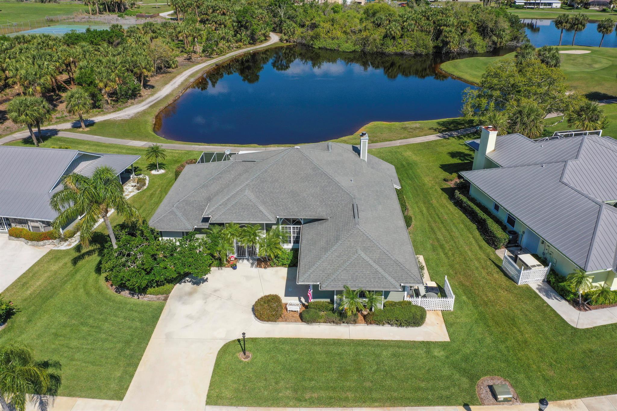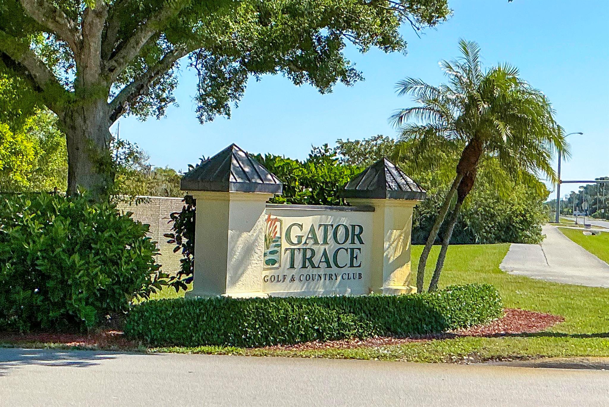 This is it! Location, spacious & elegant best describe this water front home quietly nestled adjacent to the 11th hole of the Gator Trace golf club. The 2700 sq ft home offers soaring 14' ceilings in the living areas and the family room includes a wood burning fireplace with floor to ceiling stone accent. The owners suite is huge and includes a walk in closet and bath en suite. Private second bedroom includes a large office/flex area that can easily be used as in law suite, guest suite, nursery or 4th BR. Natural gas avail. in the comm with low HOA fees at 121. per month. Clubhouse is in walking distance. The home boasts a side entry garage and the home has an electric roll down shutter system that makes storm preparation quick & easy. A must see home, call for your private tour asap!