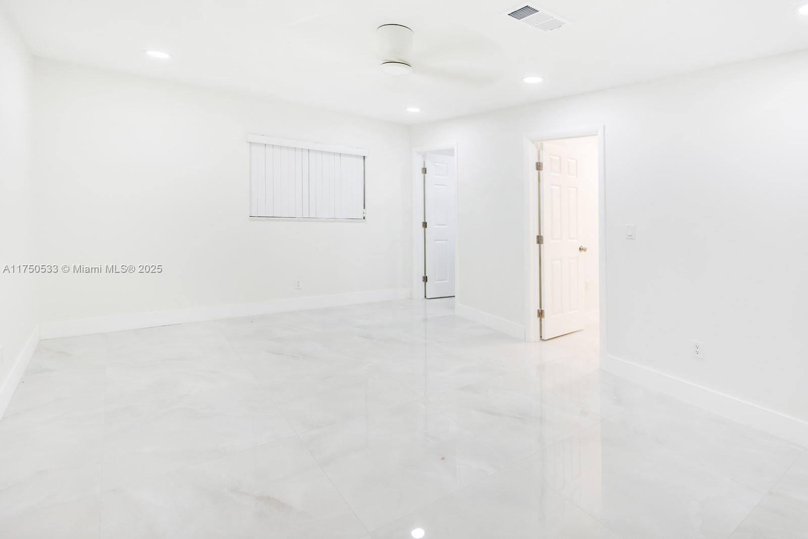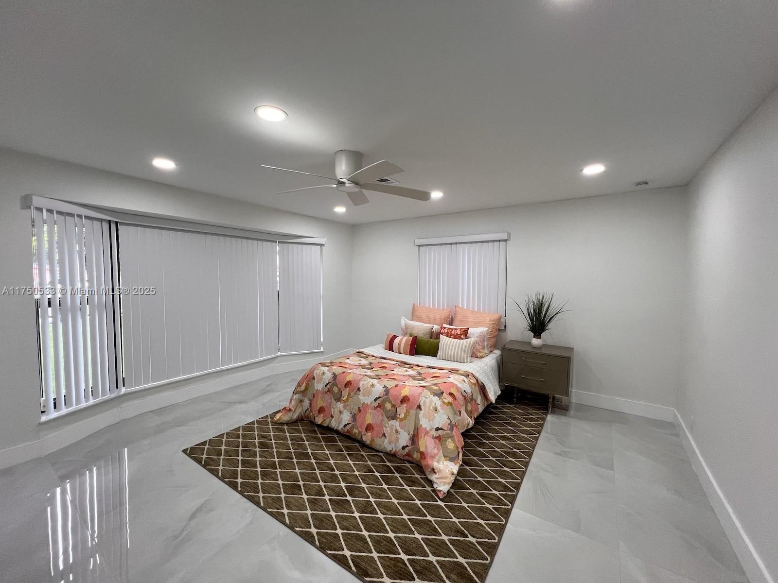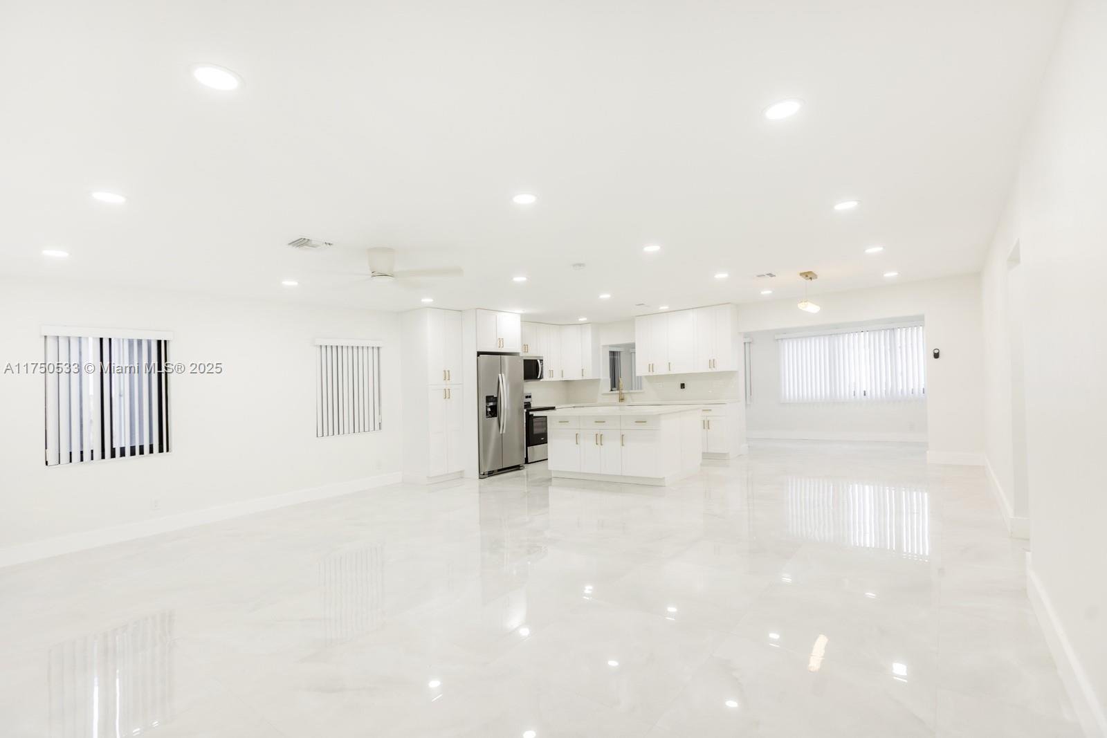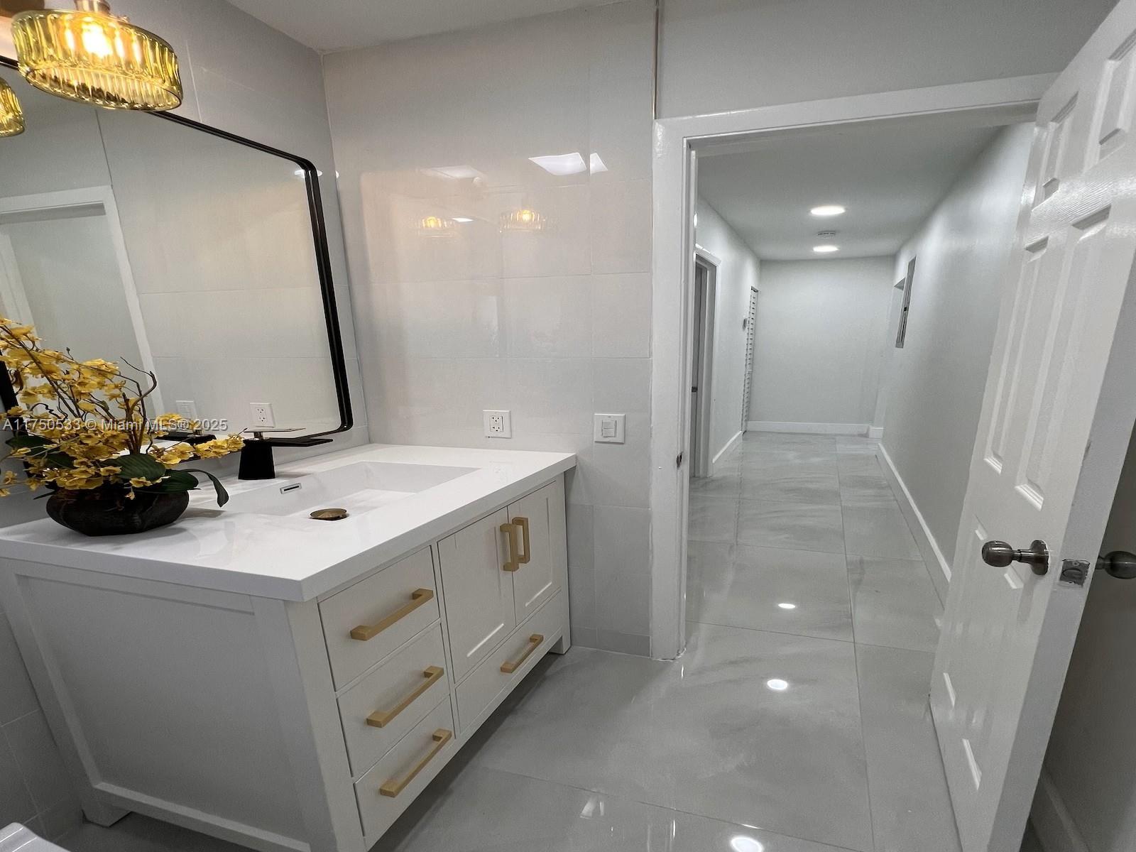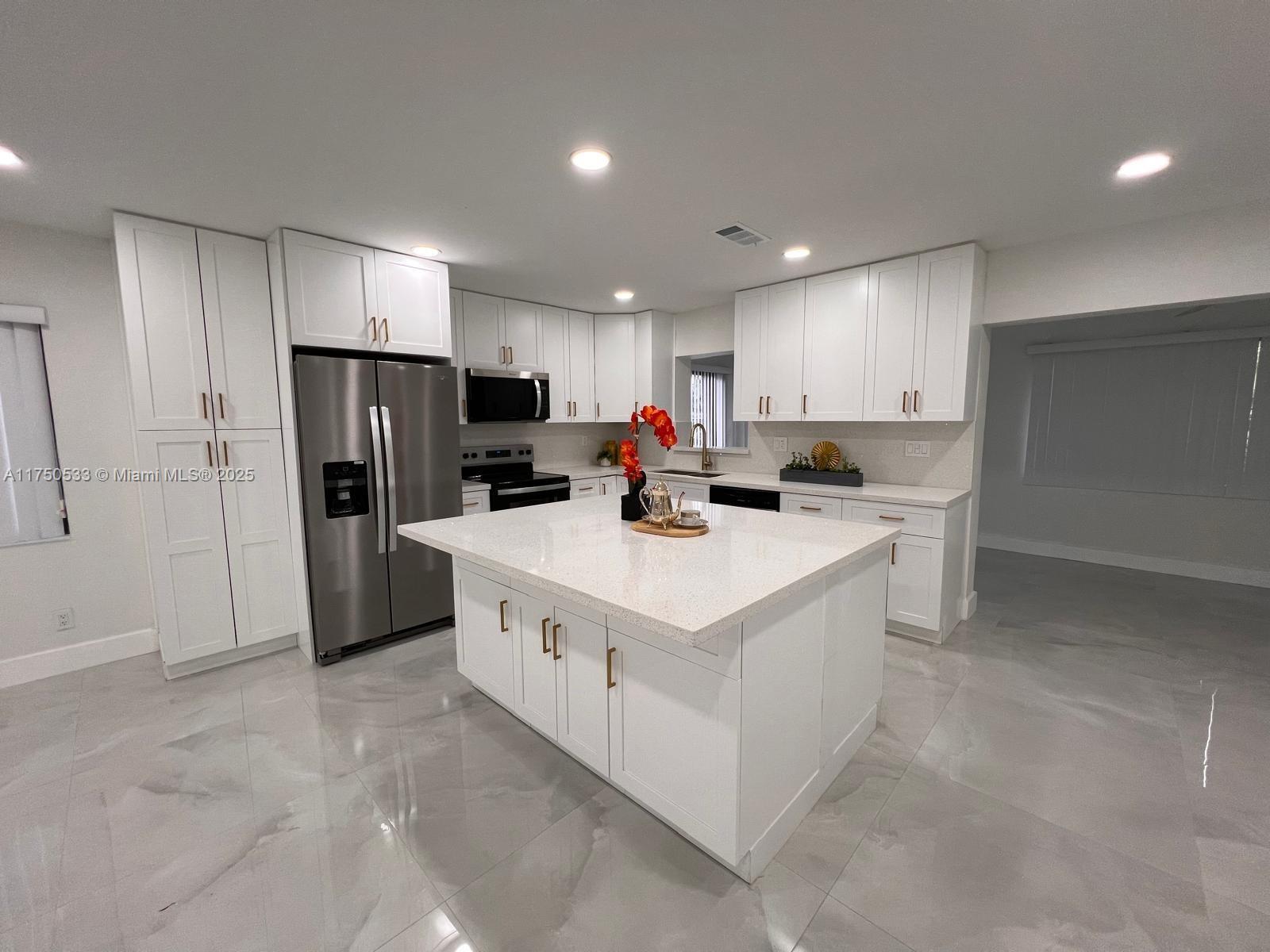 This breathtaking 4-bedroom, 2-bathroom home boasts a 2-car garage and has been meticulously remodeled with high-end finishes throughout. Elegant porcelain tile flooring graces every room, complemented by modern color tones that create a luxurious ambiance. The home features a 2012 roof, inpact windows and doors, New A/C, brand-new appliances, and custom solid wood cabinetry with exquisite gold fixtures, a true retreat, featuring a spacious walk-in shower and his-and-hers sinks. With a thoughtfully designed split floor plan, this home offers both privacy and convenience. Ideally located with easy access to major highways, the beach, and the airport, this home is the perfect blend of style and function.