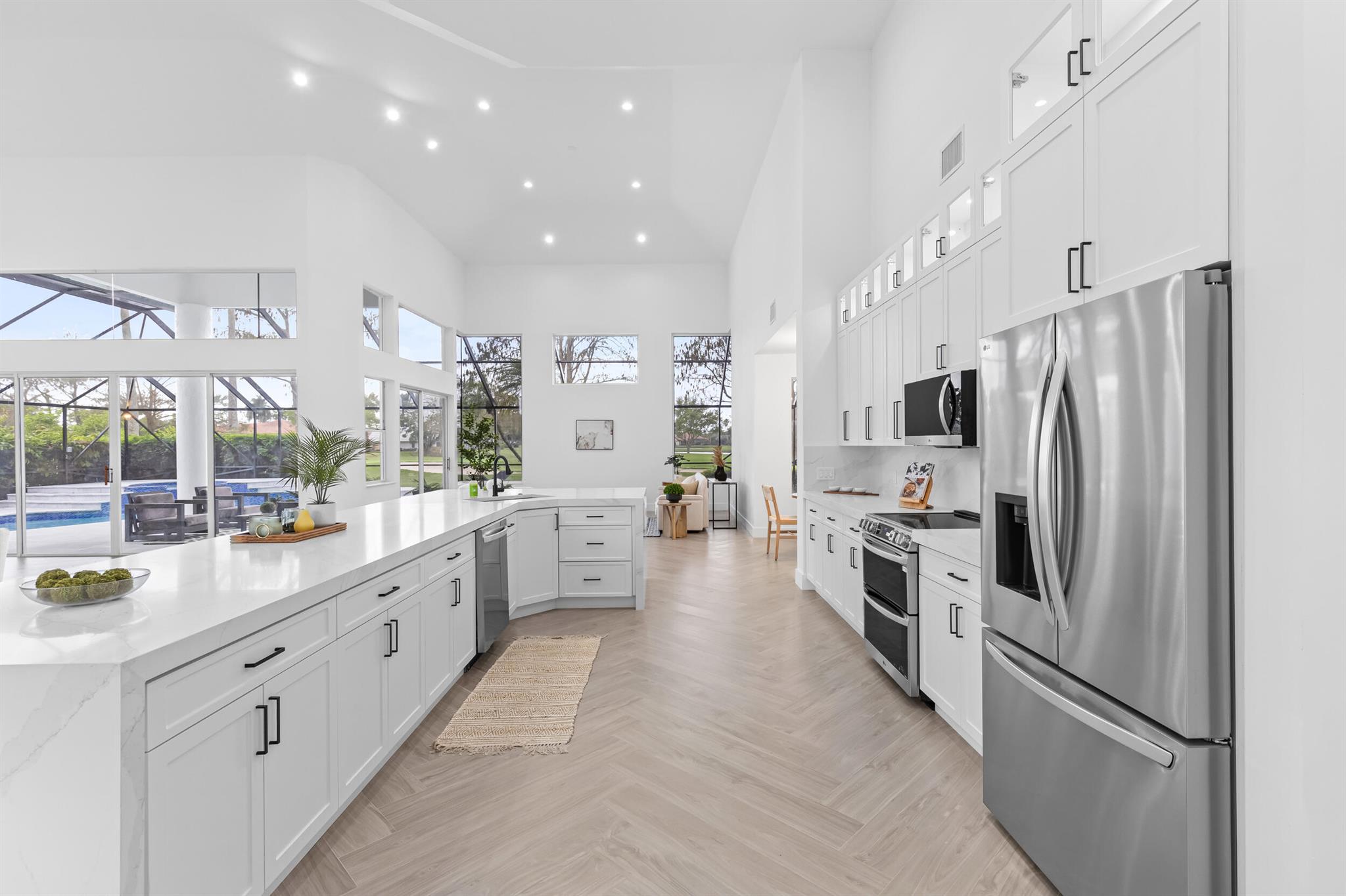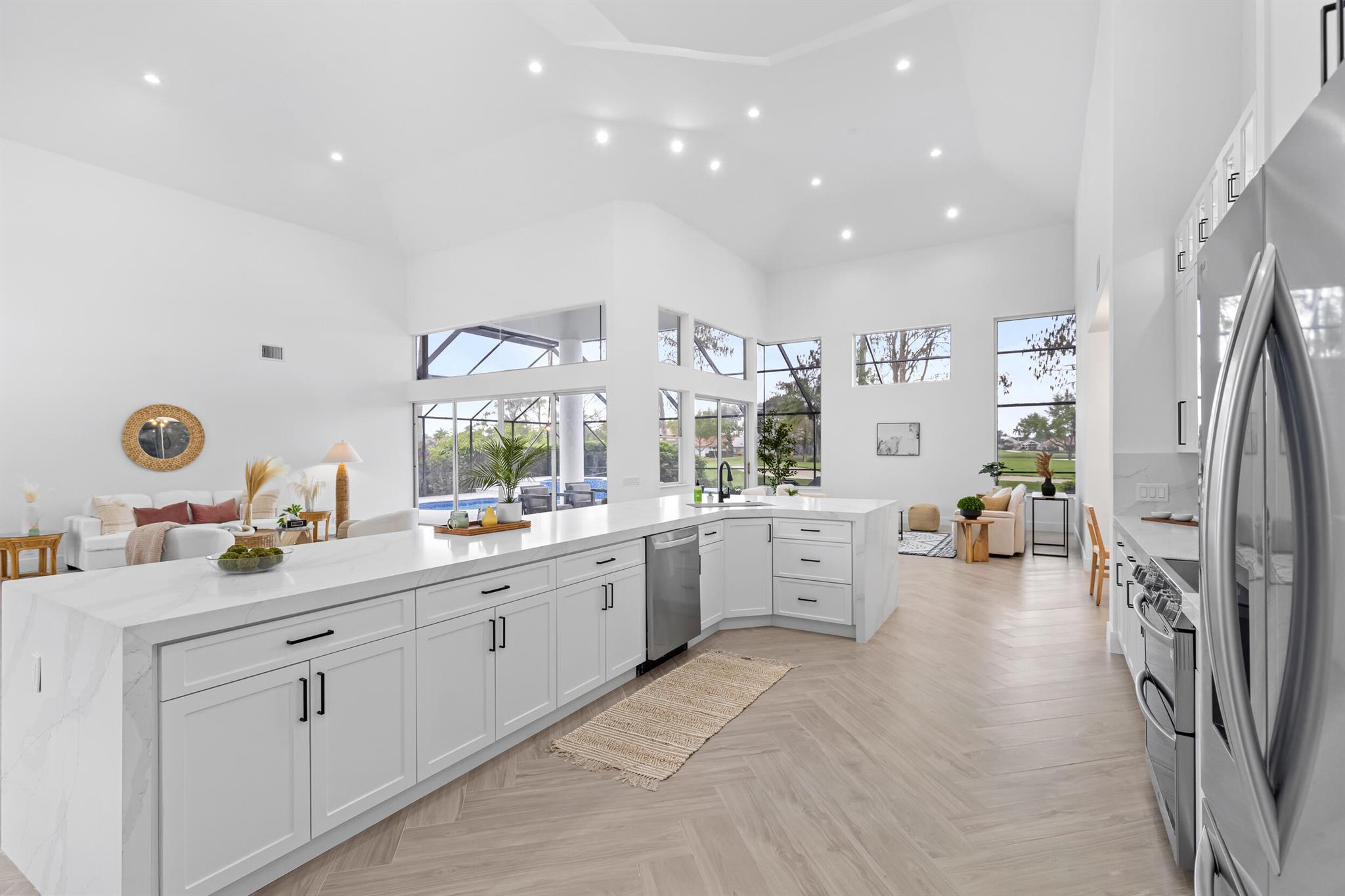 Indulge in the ultimate golf and lakefront living experience with this stunning property. Boasting breathtaking views from our enclosed lanai, this home offers a beautifully renovated pool for your enjoyment. Step inside and be greeted by a spacious open floorplan, highlighted by a grand island and both formal and casual living spaces. No expense has been spared in the elegant plates throughout, including luxurious tile flooring and high-end finishes. This is truly a dream home for those seeking the pinnacle of luxury living. Stonebridge Country Club is a mandatory membership community. Professional photos will be coming shortly