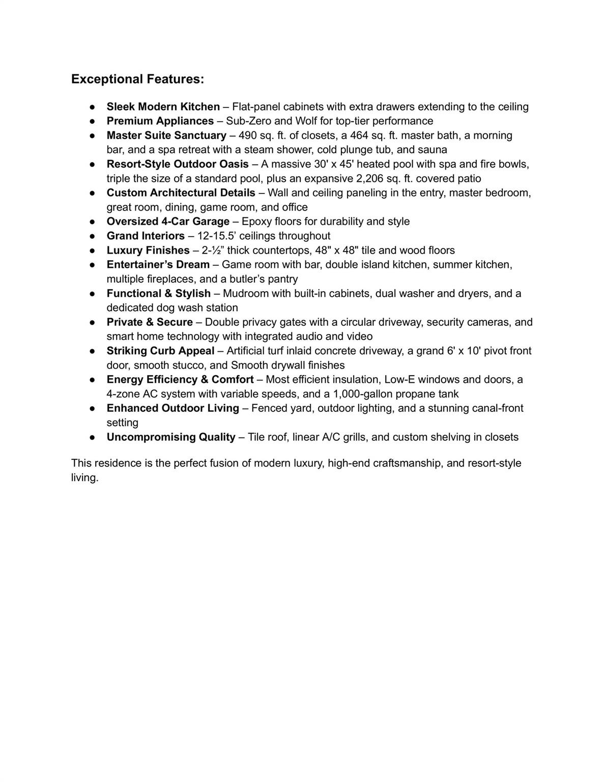 One of Wellington's finest homes. This brand new 8,005 sq ft one-story contemporary estate home in Wellington’s prestigious Southfields neighborhood offers luxury living on 1.9 acres, just a short golf cart ride to equestrian events. With a total of 12,149 sq ft, the home features 5 bedrooms, 7 bathrooms, a study, a gym, and an expansive open floor plan. The main living area boasts 15.5' ceilings, while the bedrooms feature 12' ceilings, providing an airy and spacious feel throughout. This house showcases top-of-the-line finishes and every luxury upgrade available. Included is a 45’ x 70’ heated pool with spa, plus a massive 2,206 sq ft covered rear patio perfect for outdoor entertaining. Get in pre-construction and make this house yours. Completion Mid 2026