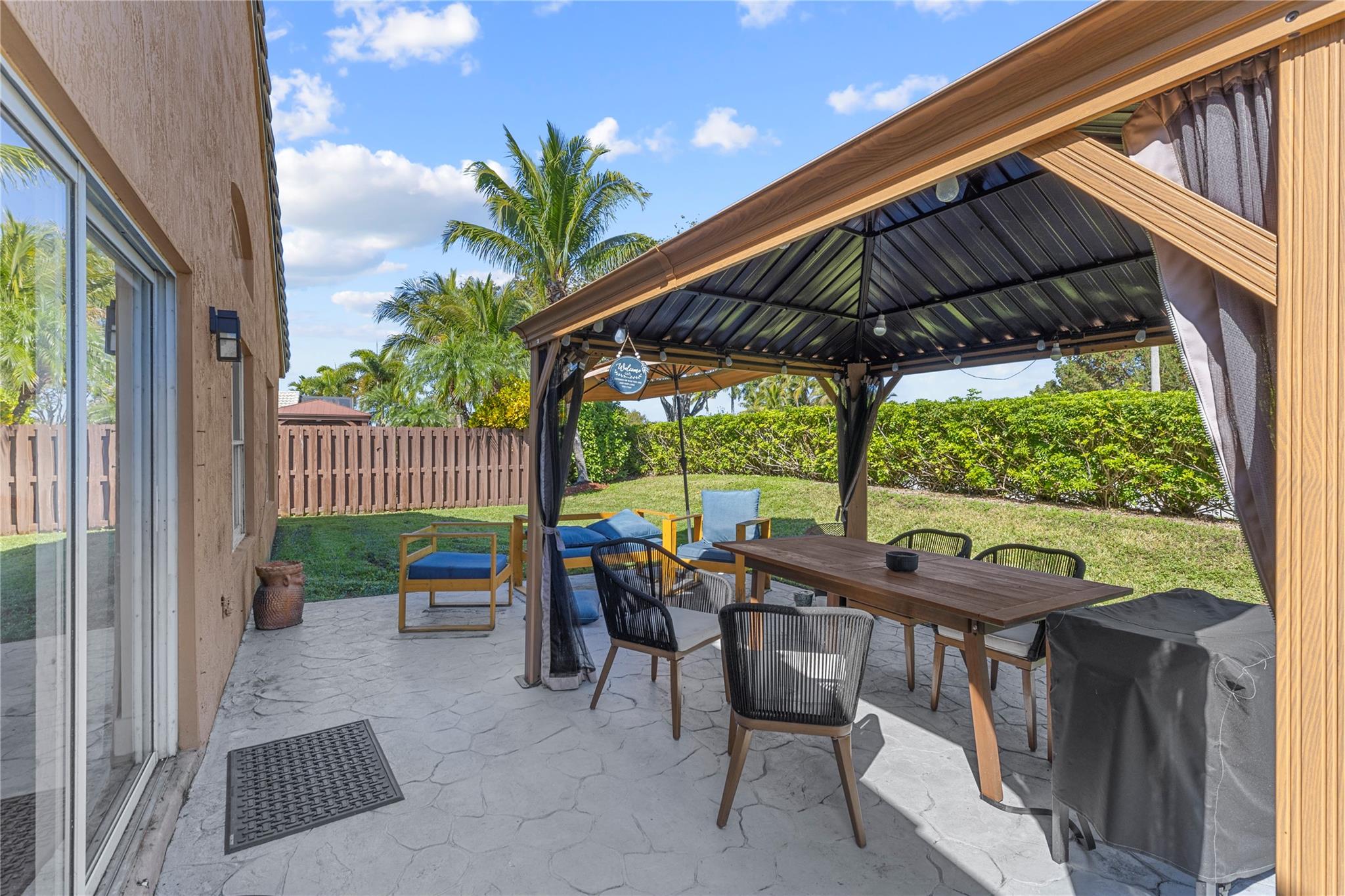 Welcome to luxury living in the prestigious gated community of Encantada! This stunning 4-bedroom, 2-bathroom single-family home offers the perfect blend of comfort, style, and functionality. The open-concept design seamlessly connects the living, dining, and kitchen areas, creating an inviting space for both entertaining and everyday living. The gourmet kitchen features stainless steel appliances, quartz countertops, and ample storage. Retreat to the spacious primary suite, complete with a walk-in closet and a spa-like en-suite bathroom featuring dual sinks and a walk-in shower. Outside, enjoy a tranquil, landscaped backyard—ideal for relaxation or hosting gatherings—with plenty of space to add a pool if desired.