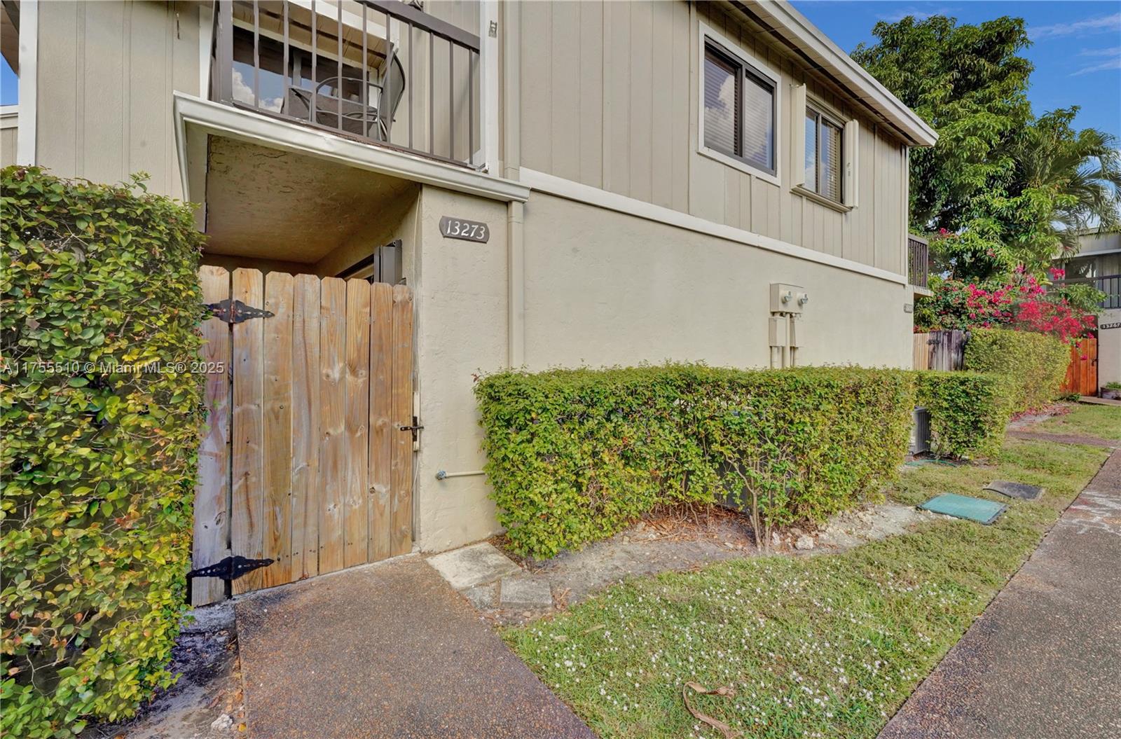 This beautiful townhome is located in western Plantation between I-595 and the Sawgrass Expressway, close to shopping, restaurants and so much more. This home is a corner unit with its own private tropical, fenced-in yard, complete with a perfectly-sized patio and a banana tree. Inside, you will find a roomy kitchen with a snack bar that opens up to the dining area, updated stairs with a modern new railing, recently-installed flooring in the bathroom and a new tub/shower surround. The unit contains impact windows and hurricane shutters and a separate laundry space. Also convenient to this home are two deeded parking spaces just feet from the front entrance. The HOA is responsible for roof repairs/replacement, common area landscaping and external insurance. This townhome is a must see!