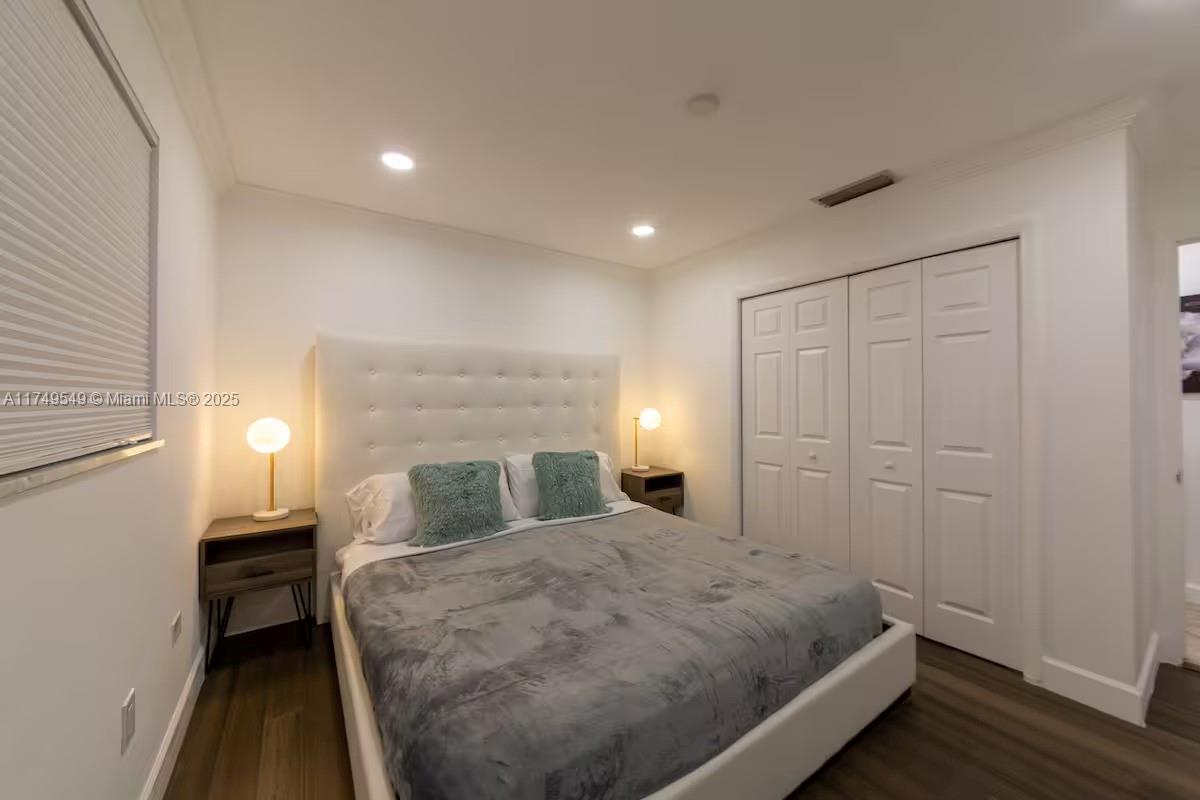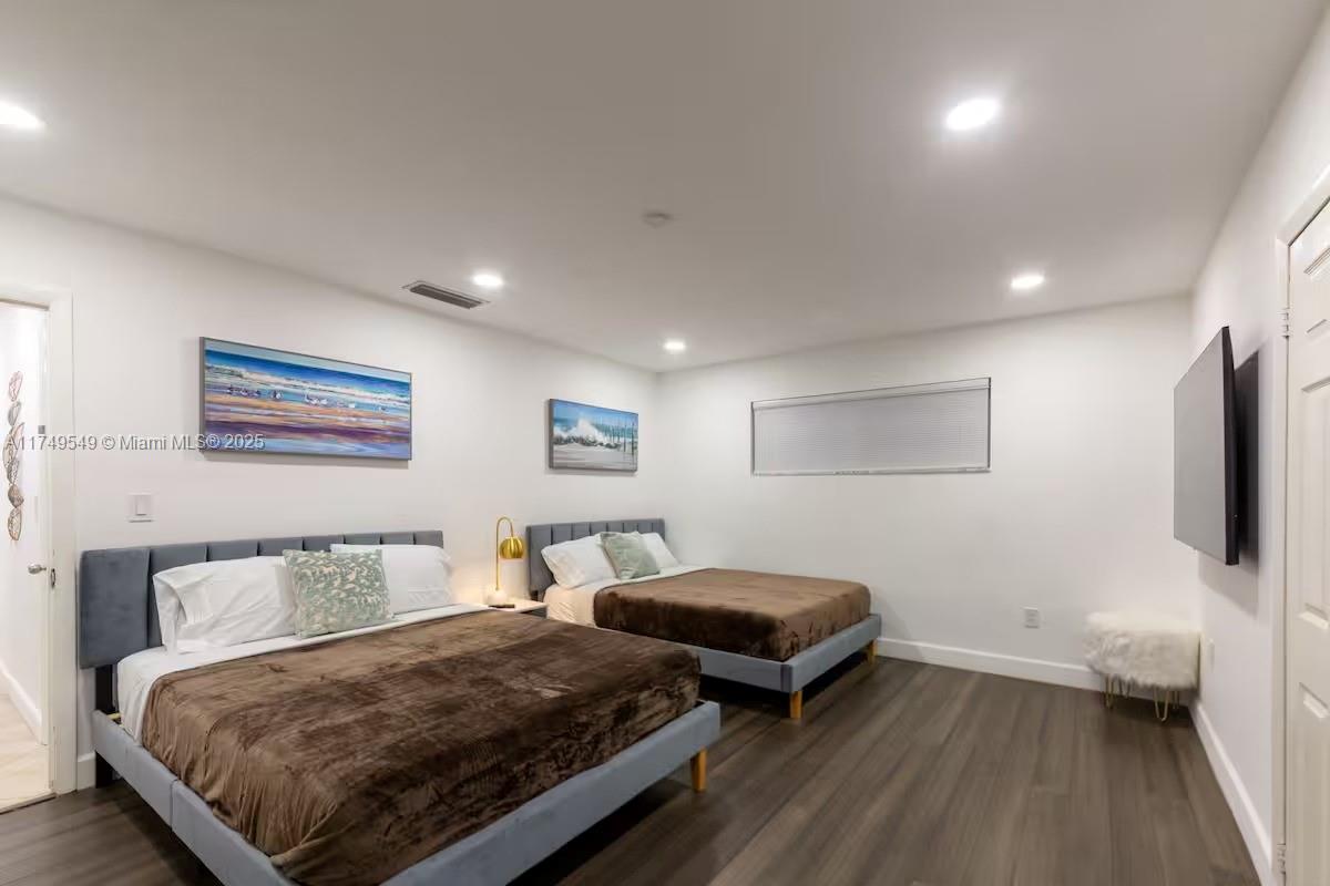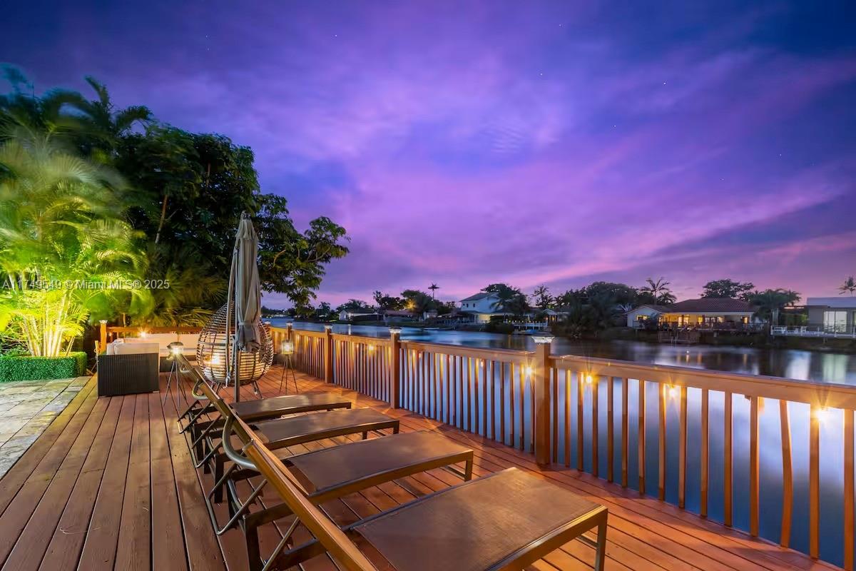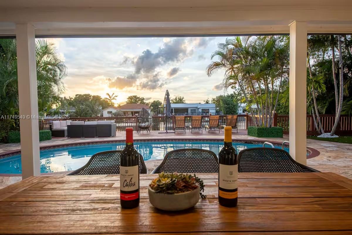 Espectacular 4 BD 3 full BA home with direct lake view from the moment you enter. Contemporary open floor plan. Wood floors in bedrooms. Living area has beautiful natural tiles thru out. Gourmet kitchen, quartz counter tops, top of the line S/S appliances, French doors, sophisticated security system & separate laundry room. Backyard has sparkling pool surrounded by wood deck & tropical landscaping overlooking lake.