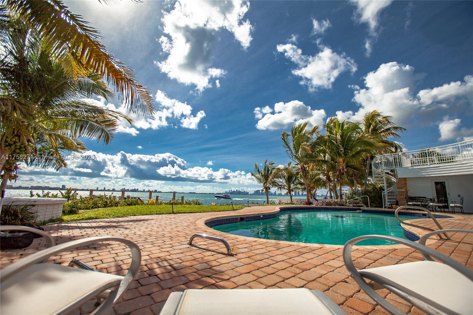RARE IN DOUBLE LOT, BOAT PARADISE, WATERFRONT HOME WITH SPECTACULAR MIAMI SKYLINE VIEWS, STUNNING VAULT WOOD BEAMED CEILING THIS 5BEDS/4 BATHS INCLUDING MAID QUARTER, HAS ALL YOUR NEEDS ; HURRICANE IMPACT WINDOWS DOORS, HEATED POOL, ALARM SYSTEM, IT'S THE PERFECT GATEWAY, A MUST SEE.